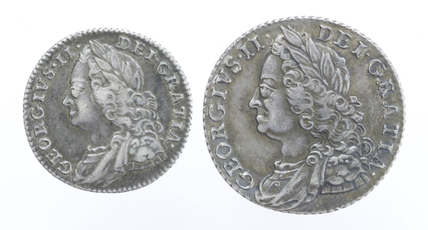 George II silver (2): Shilling 1758 toned GVF-nEF, and Sixpe...