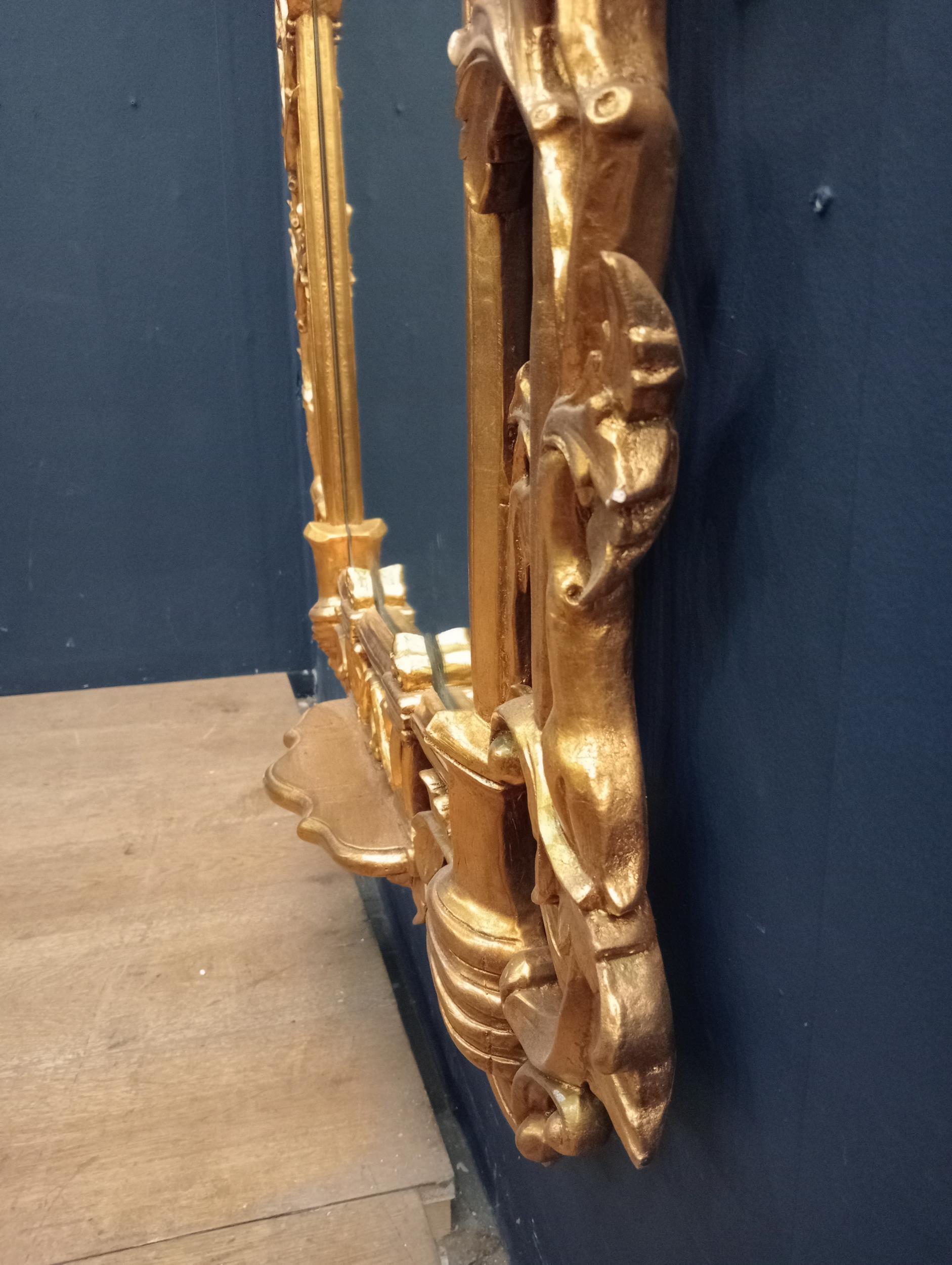 Giltwood pier mirror with shelf {H 200cm x W 95cm x D 10cm }. - NOT AVAILABLE TO VIEW IN PERSON