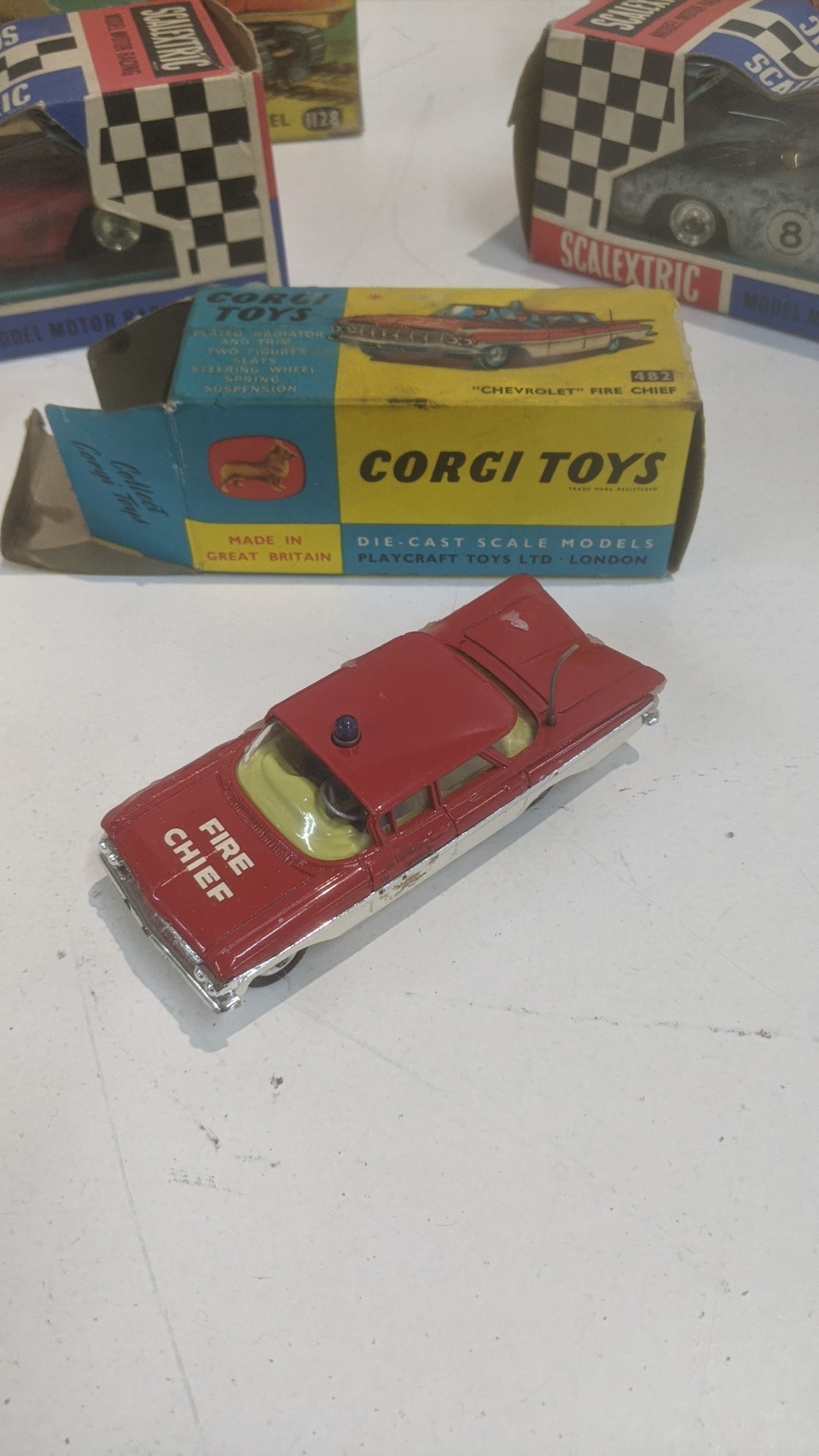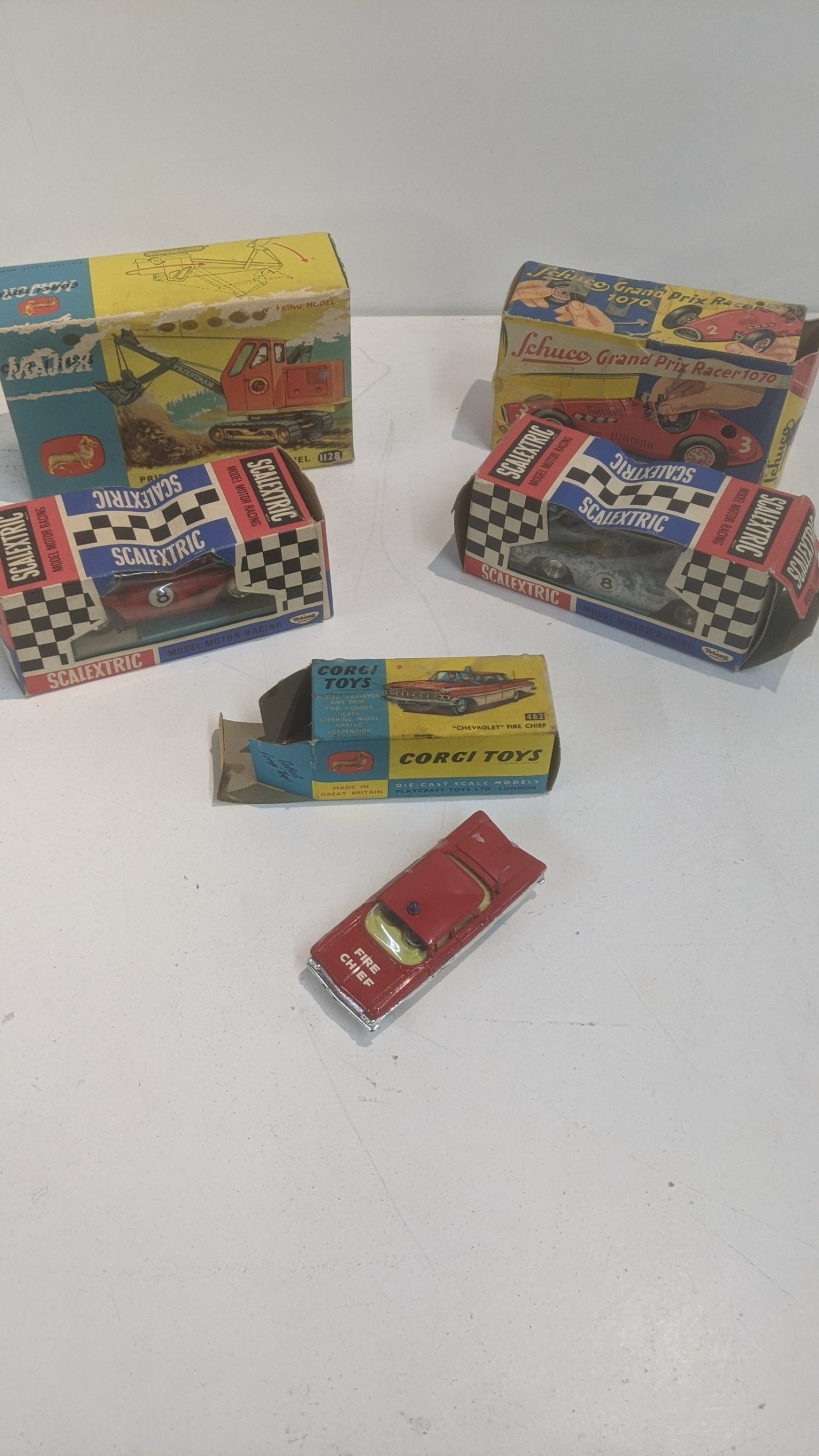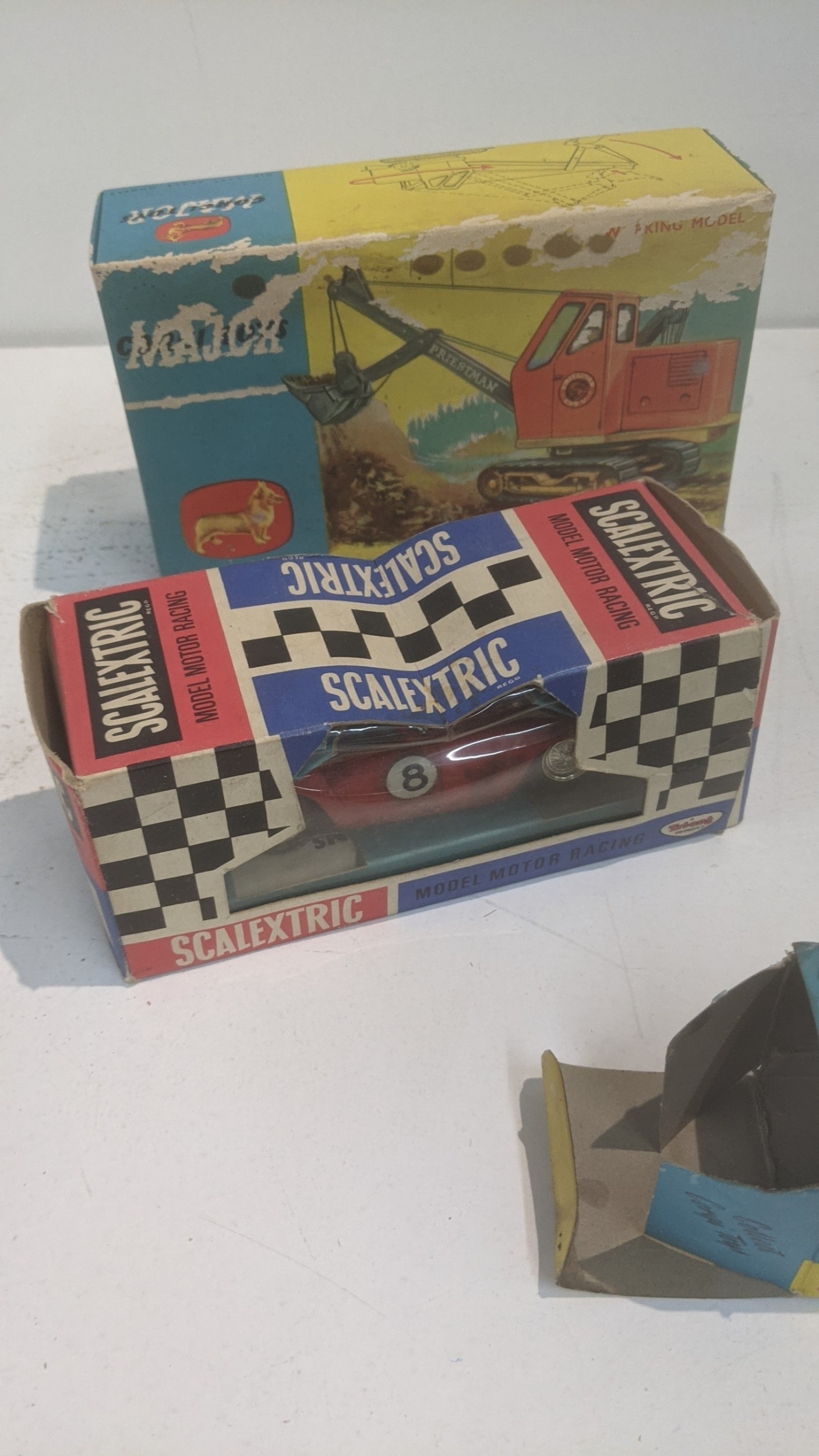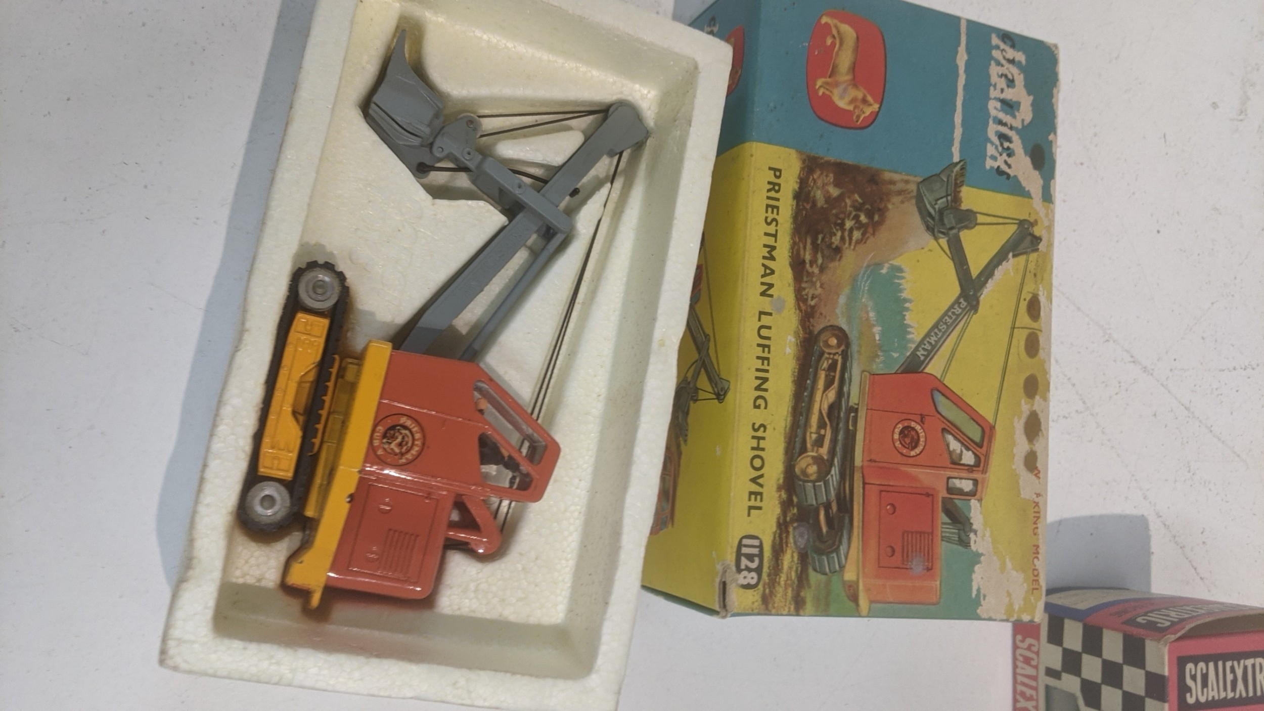 Vintage boxed toys to include a Corgi 1128 Priestman Cuffing Shovel, a Scalextric C69 Ferrari GT without lights and others Location: 8.2