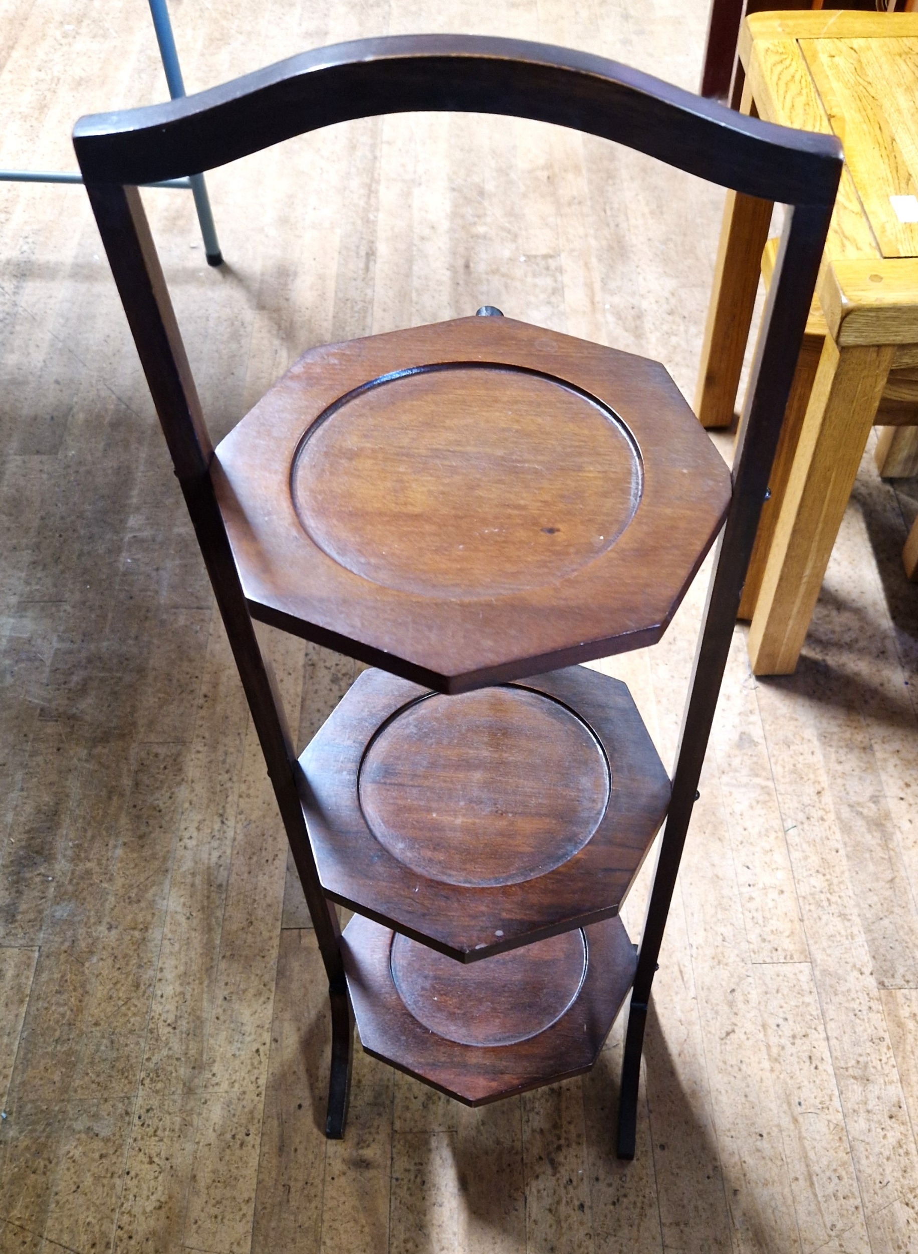 WOODEN THREE TIER FOLDABLE CAKE/SANDWICH STAND/DUMB WAITER (Please Note This Lot WILL NOT BE PACKED OR SHIPPED...COLLECT ONLY !!!!)