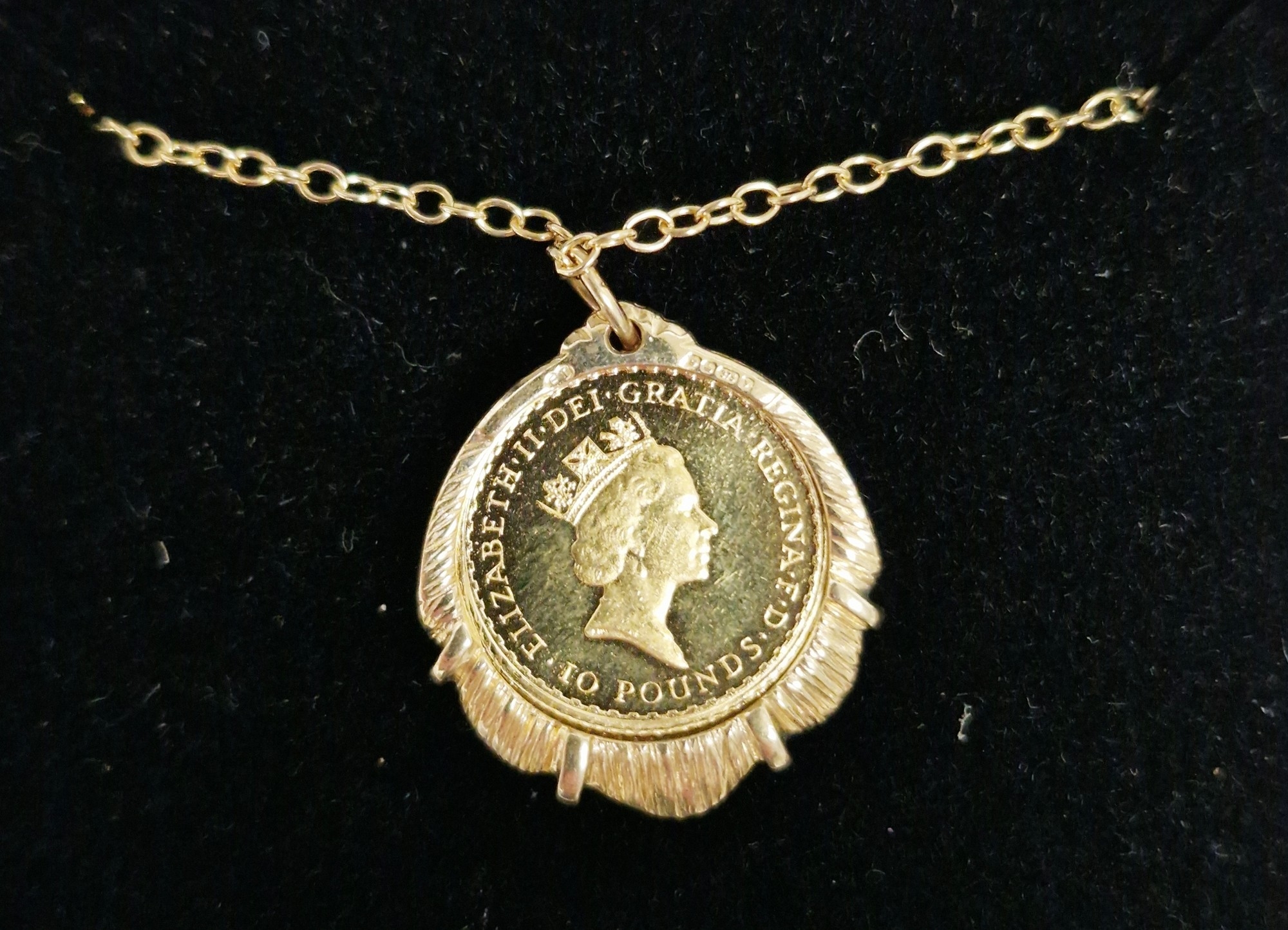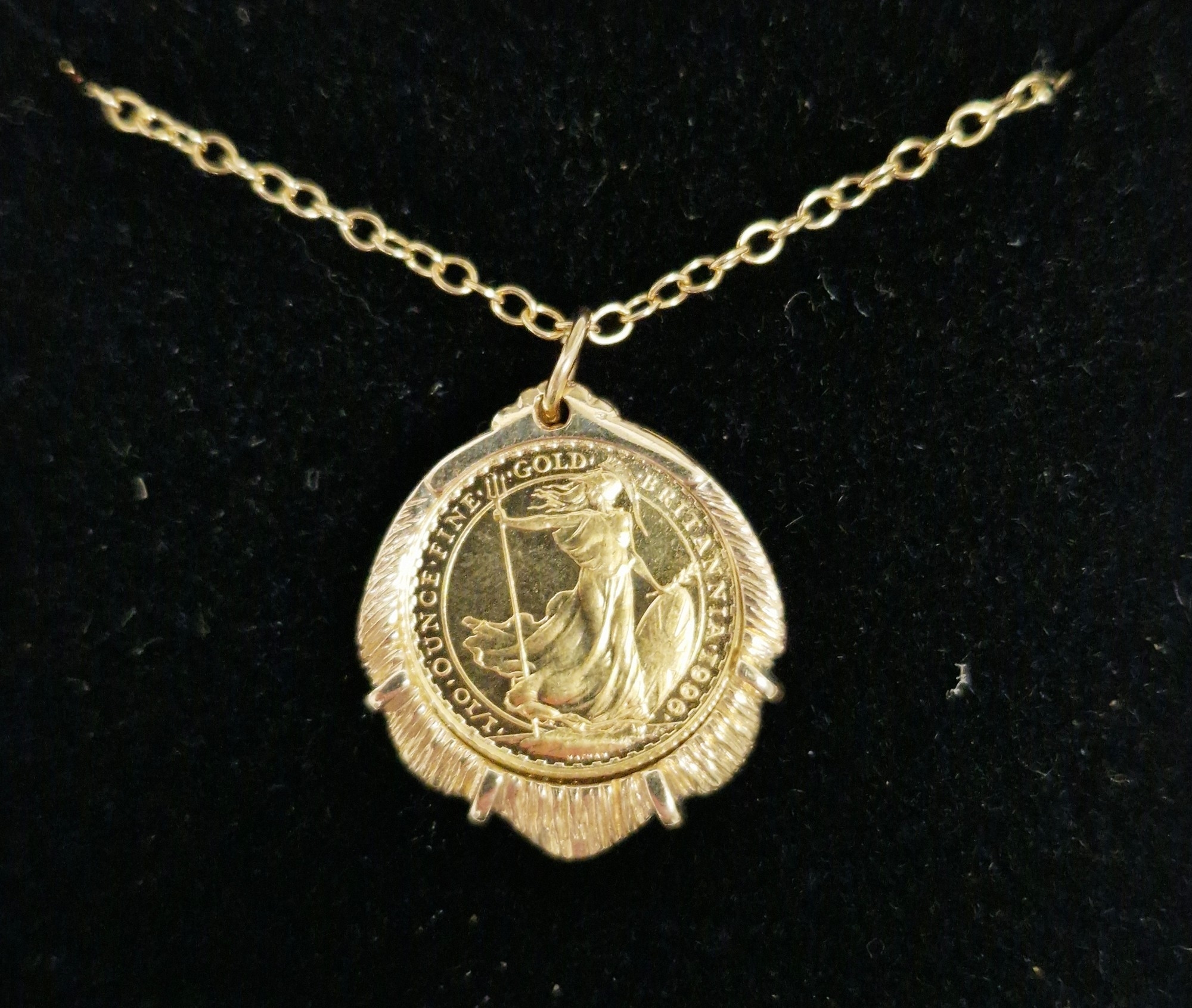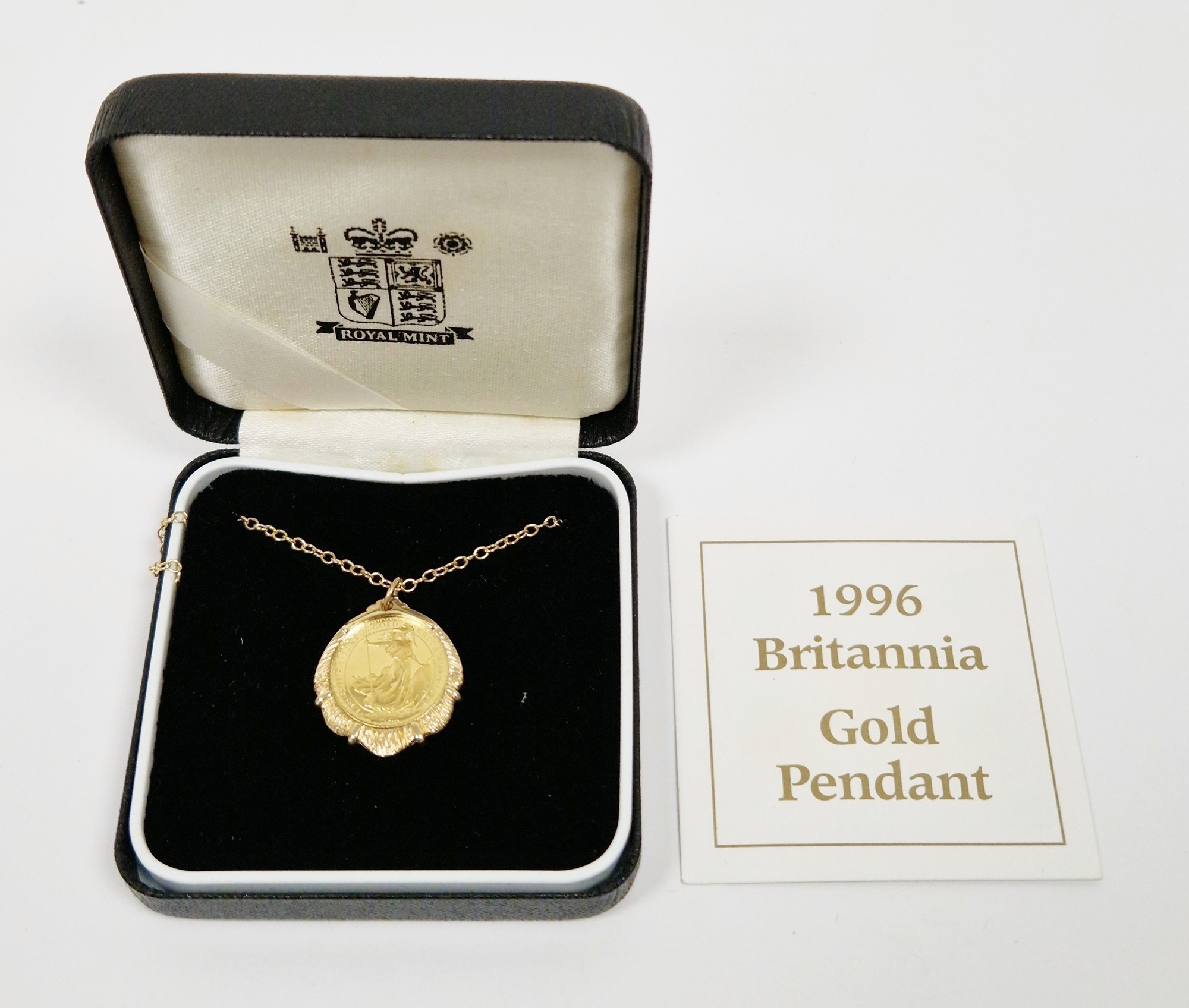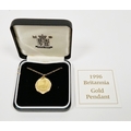 Elizabeth II 1996 Britannia £10 1/10oz gold coin, mounted in a 9ct gold pendant with 9ct gold chain, gross weight approximately 7.1g