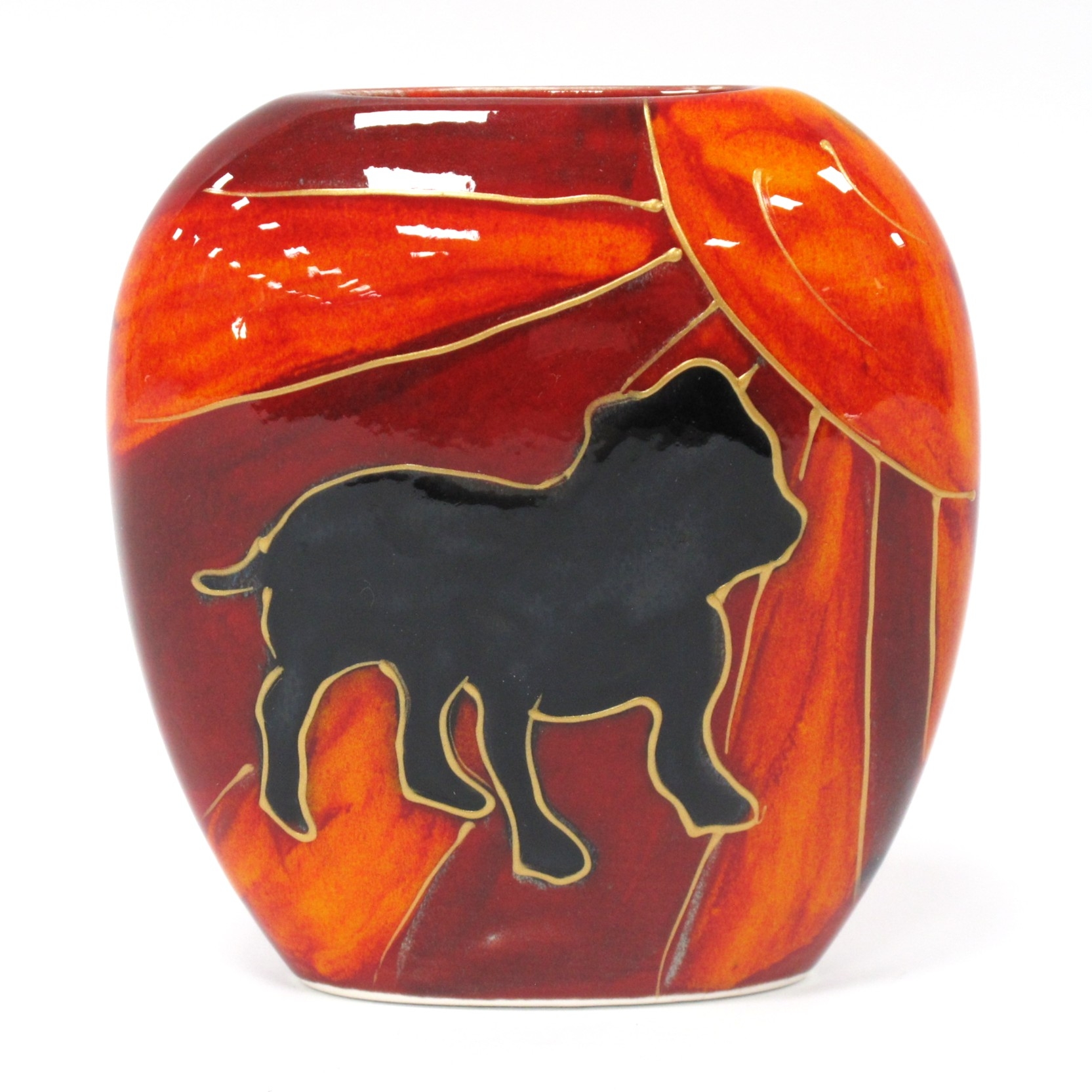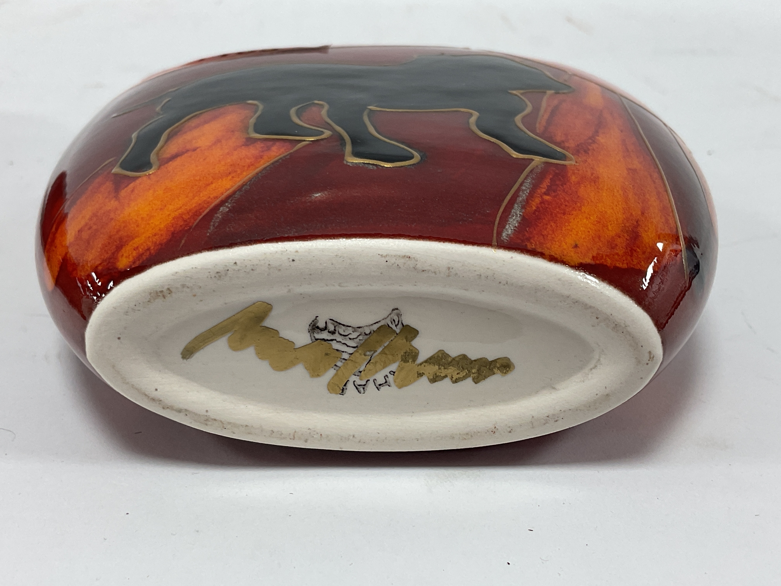 Anita Harris Deco Dog British Bull Dog Purse Vase, gold signed, 12cm high.