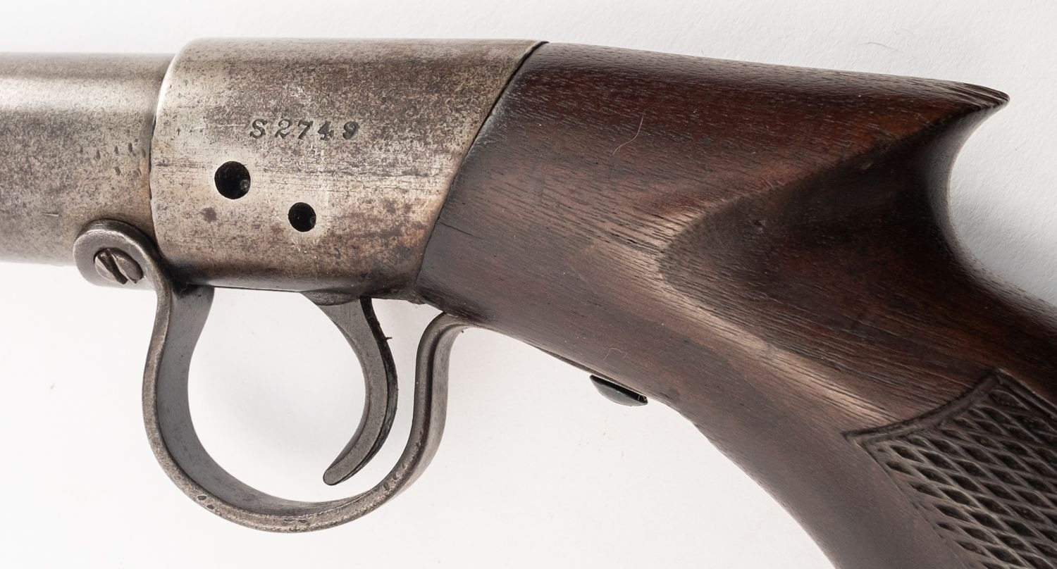 A BSA underlever air rifle. Serial number S2749, .22 calibre on a wooden stock with brass butt plate and 14'' length of pull