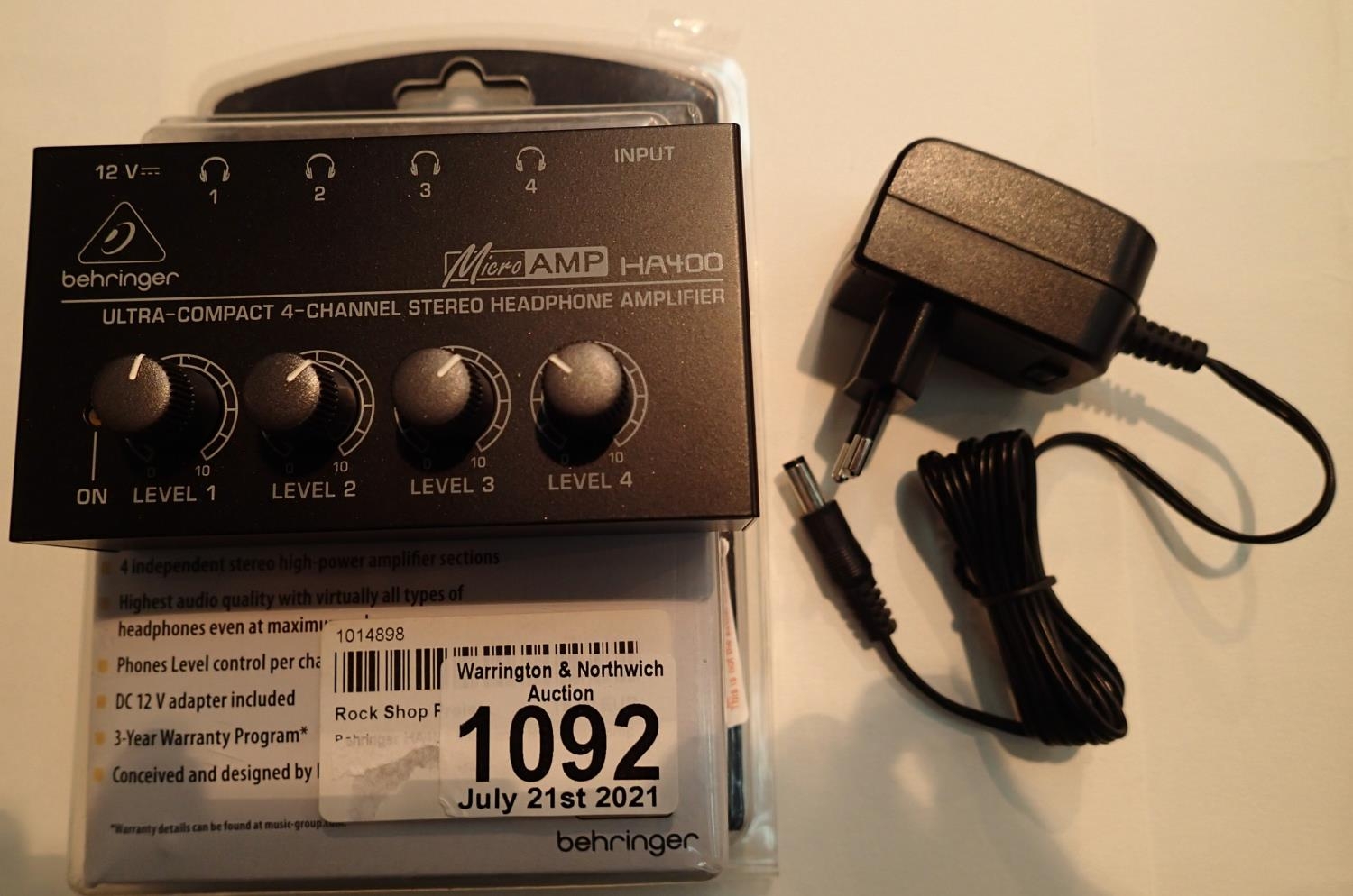 Behringer HA400 ultra compact microamp headphone amp system. P&P Group 1 (£14+VAT for the first lot and £1+VAT for subsequent lots)