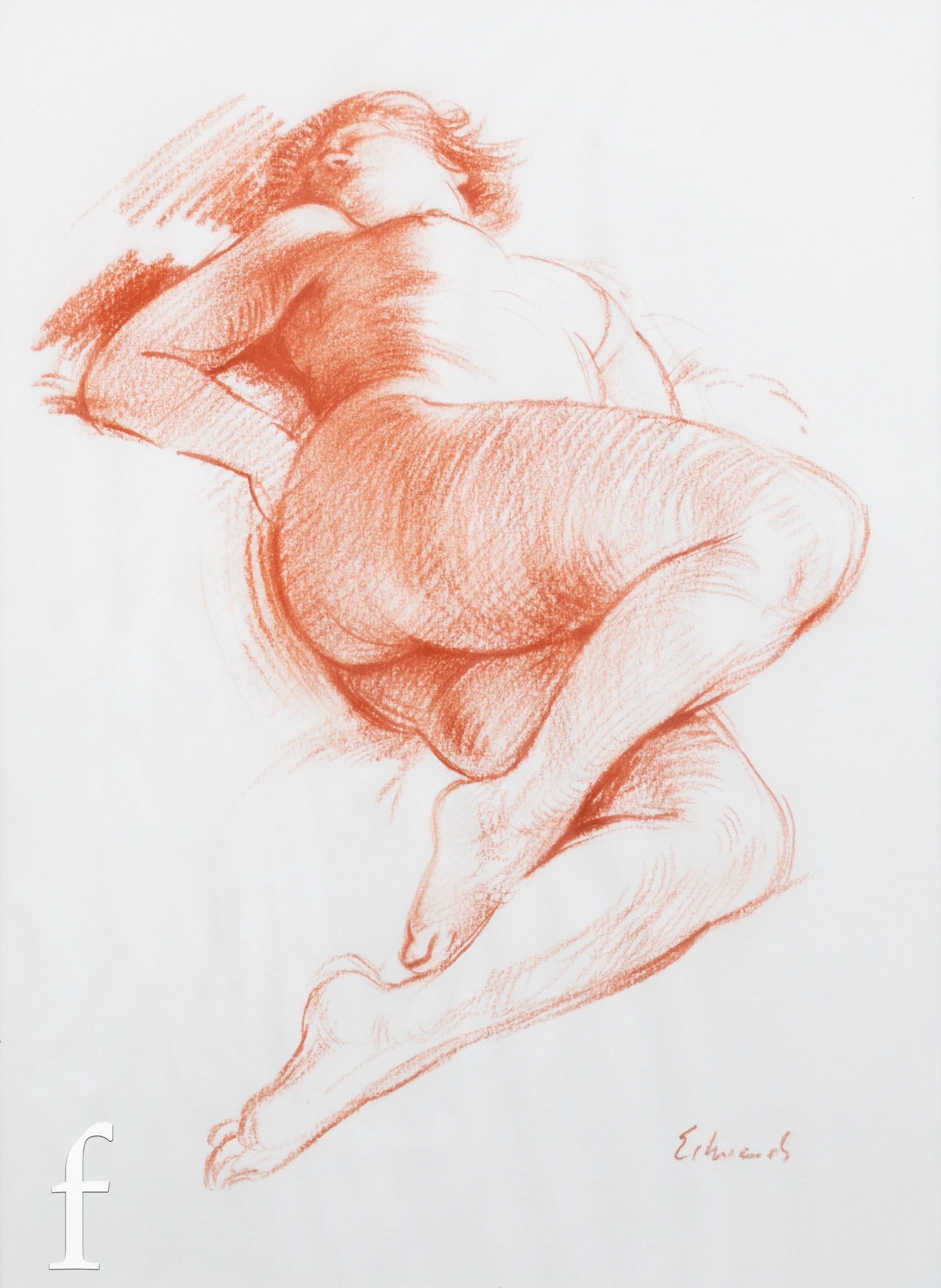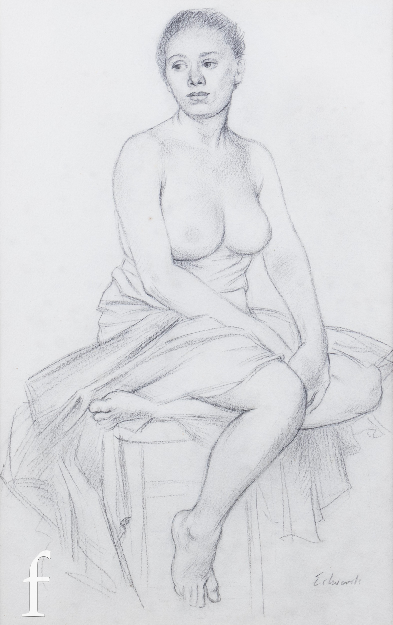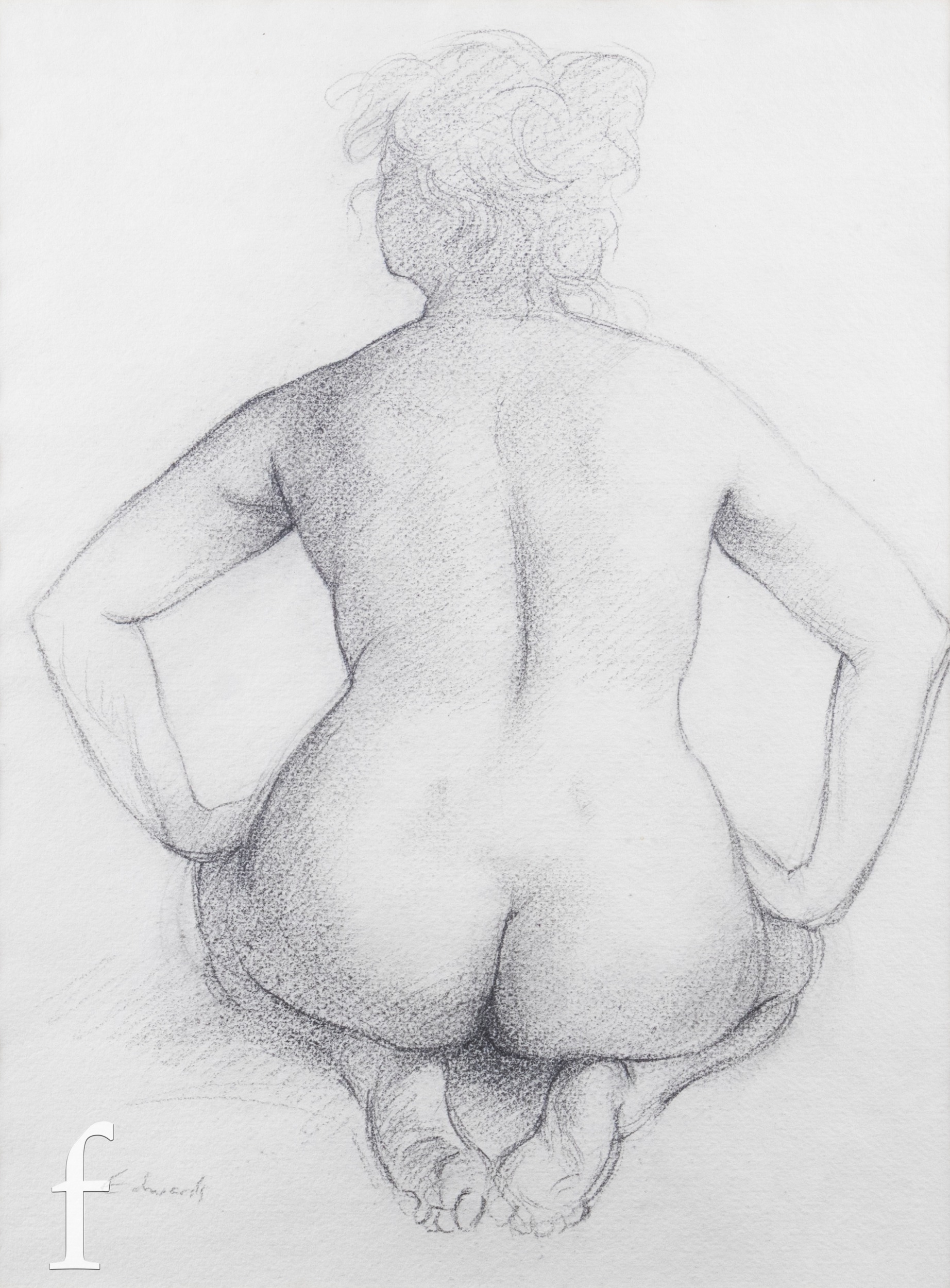 John Edwards R.A. (1940-2020) - Study of a seated female nude, pencil drawing, signed, framed, 38cm x 23cm, frame size 65cm x 50cm, also eight other studies of female nudes by the same hand. (9)