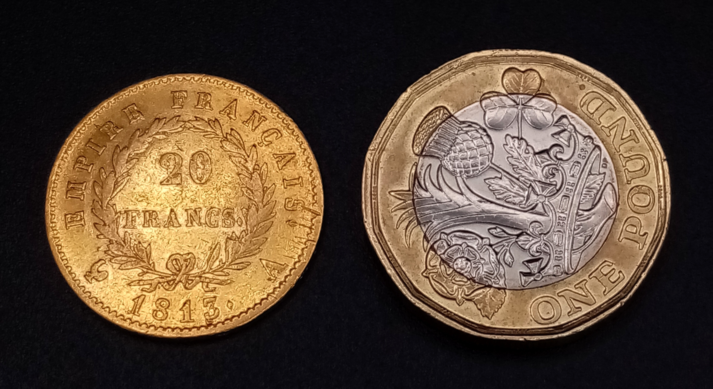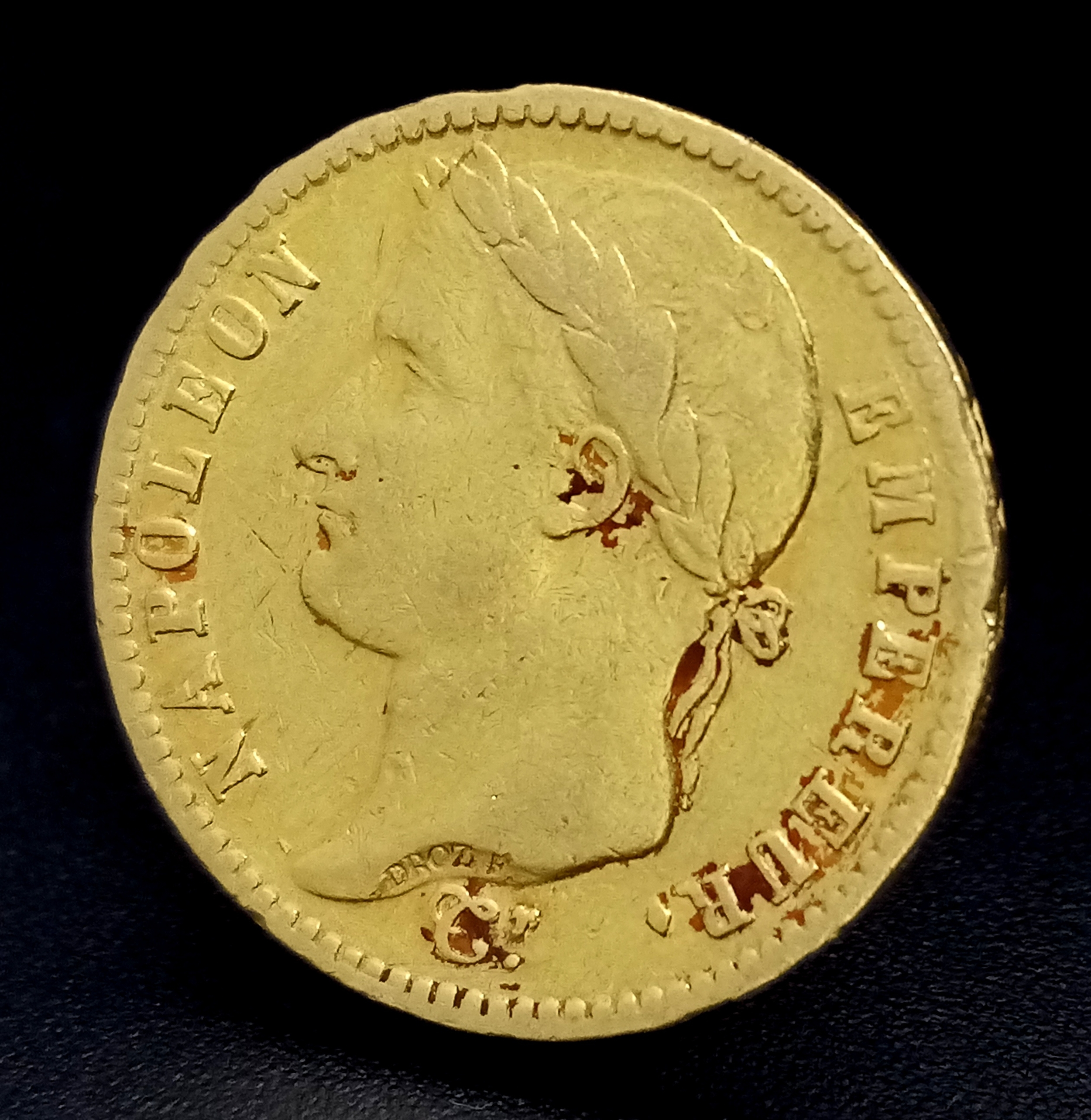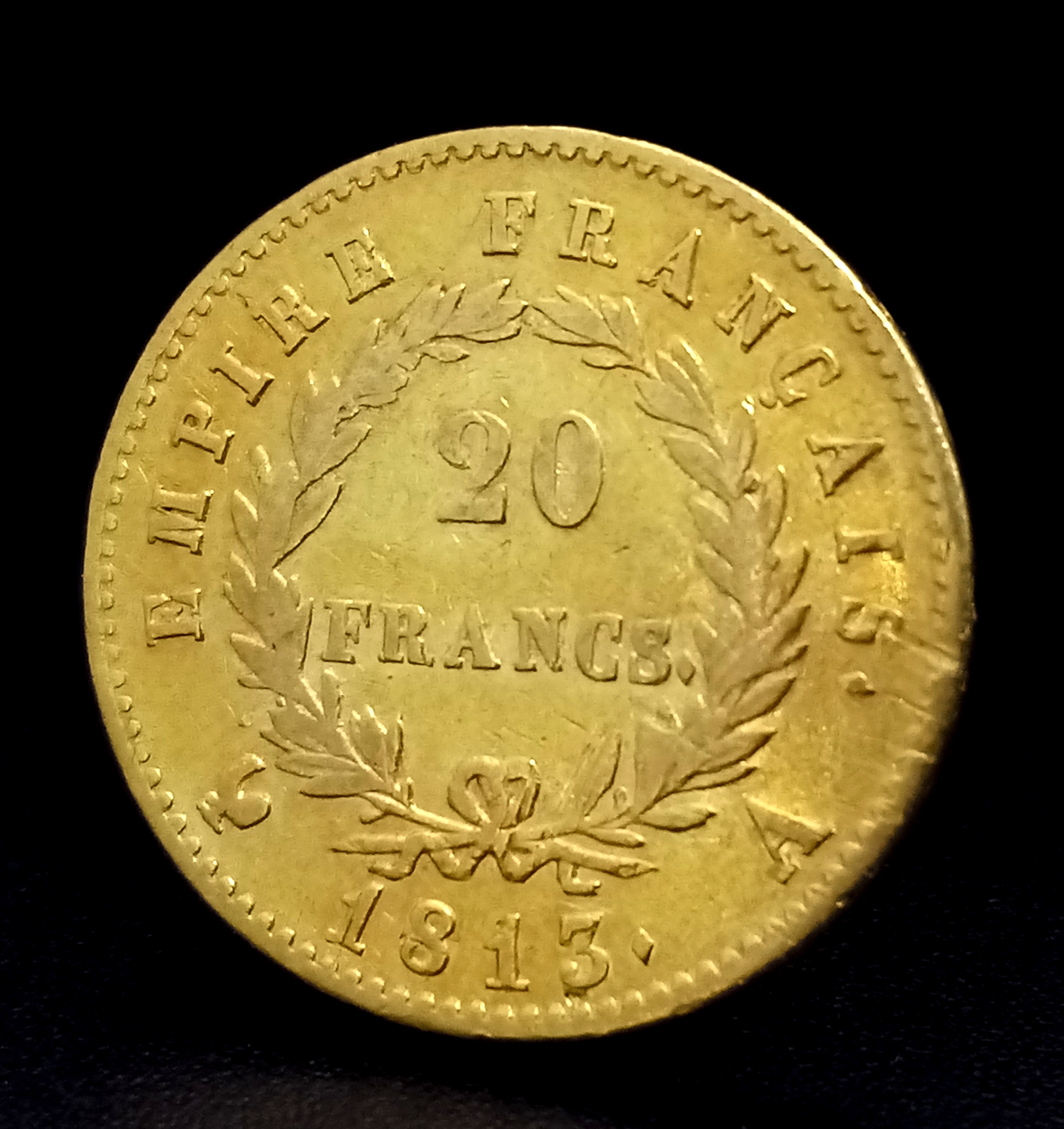 AN 1813 NAPOLEON 20 FRANC GOLD COIN. 6.4G. C2027