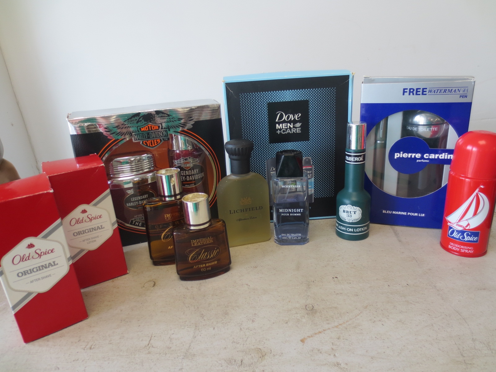 An assortment of gentleman's aftershaves etc including Old Spice, Brut 33 etc