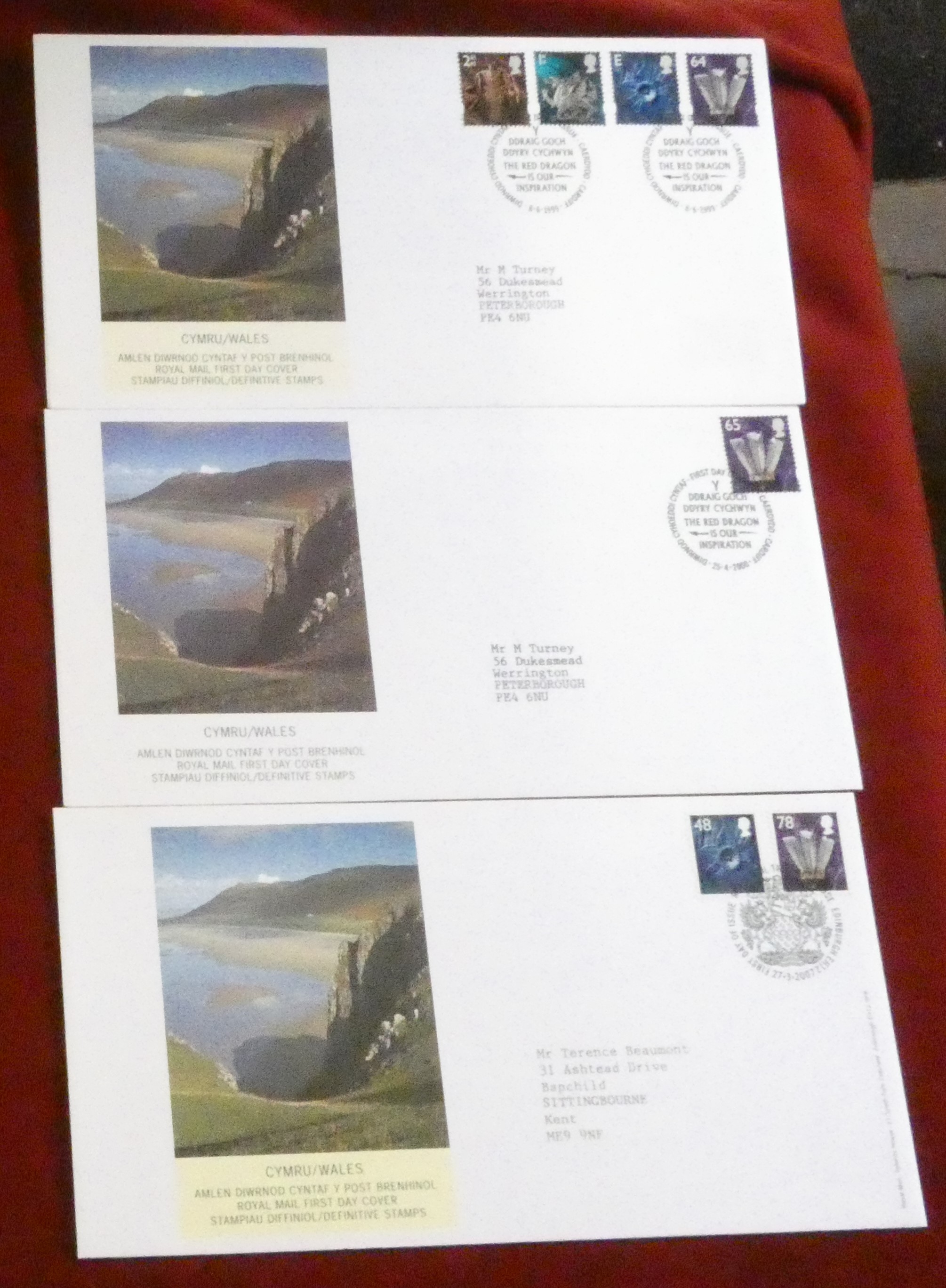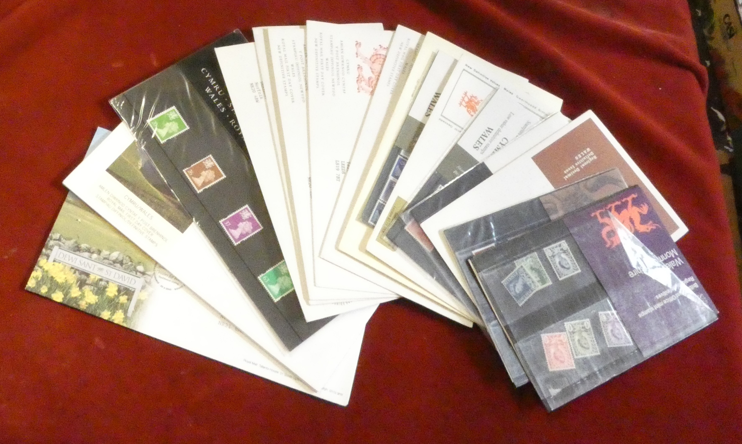 Great Britain 1970-2009 regional issues - Wales, 12 neatly addressed FDCs and five presentation packs.