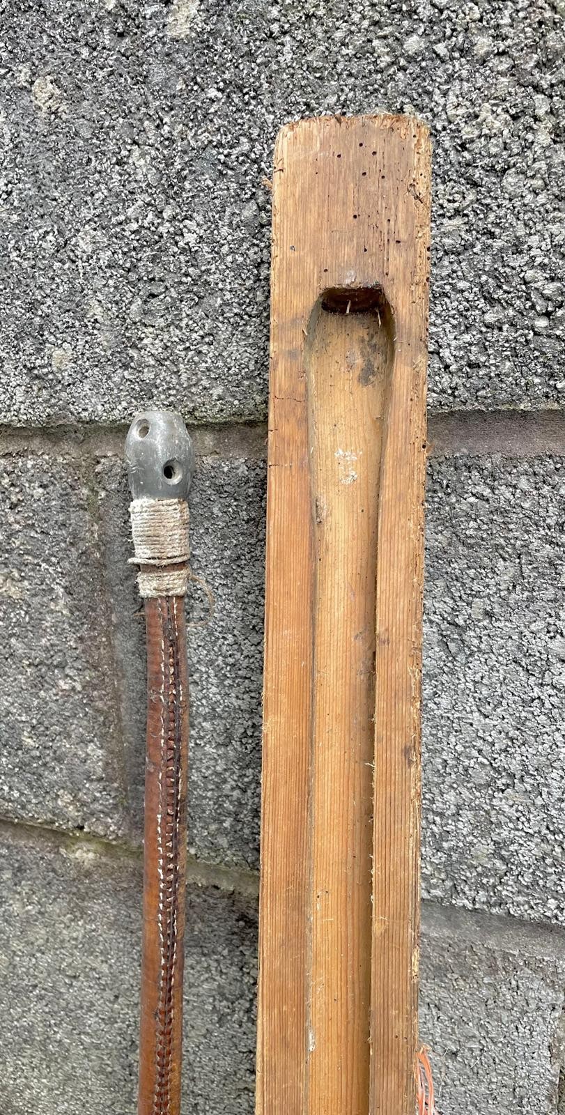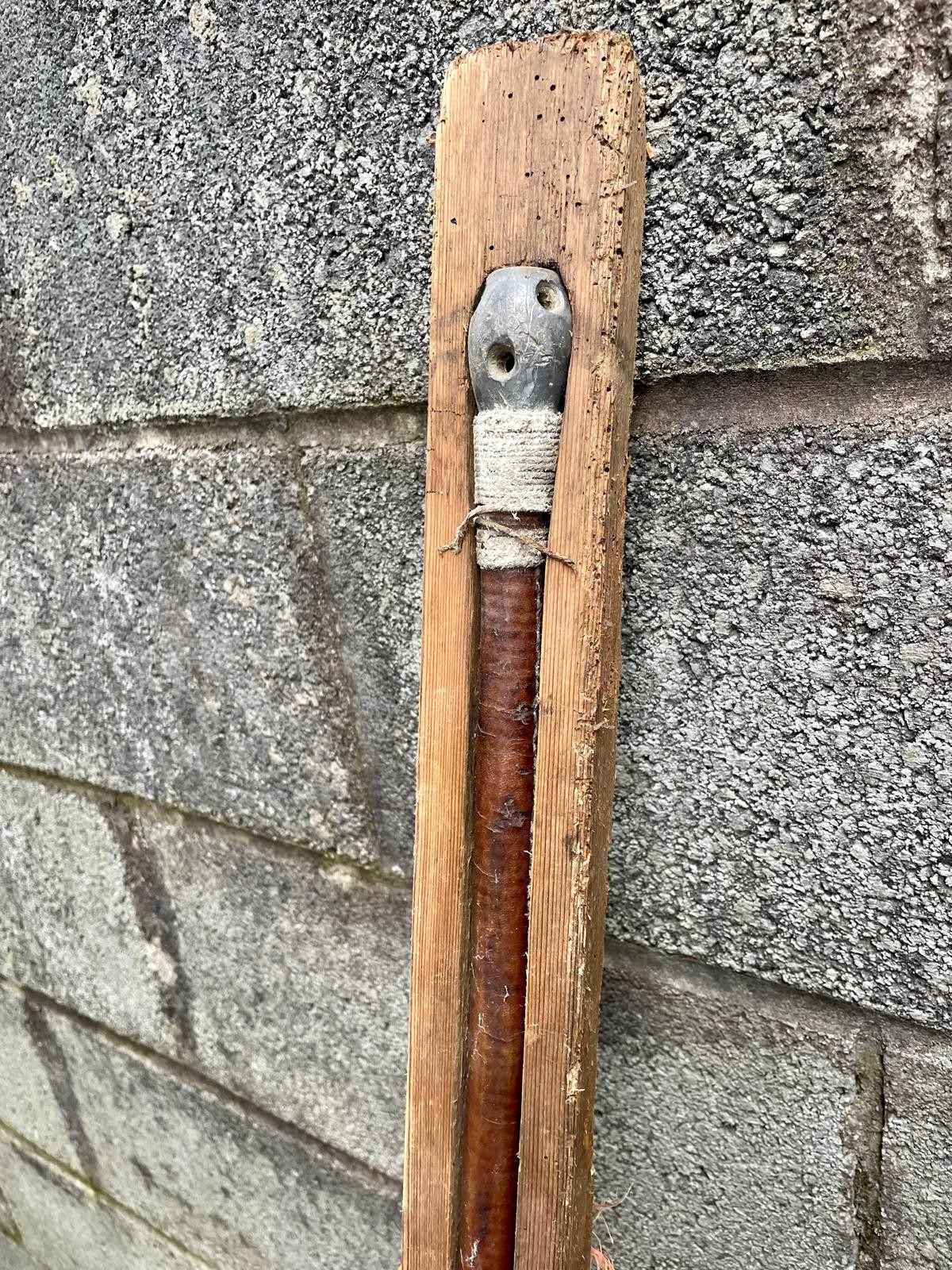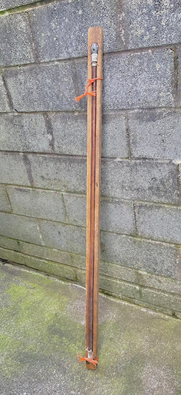 Long leather clad pole in wooden case.