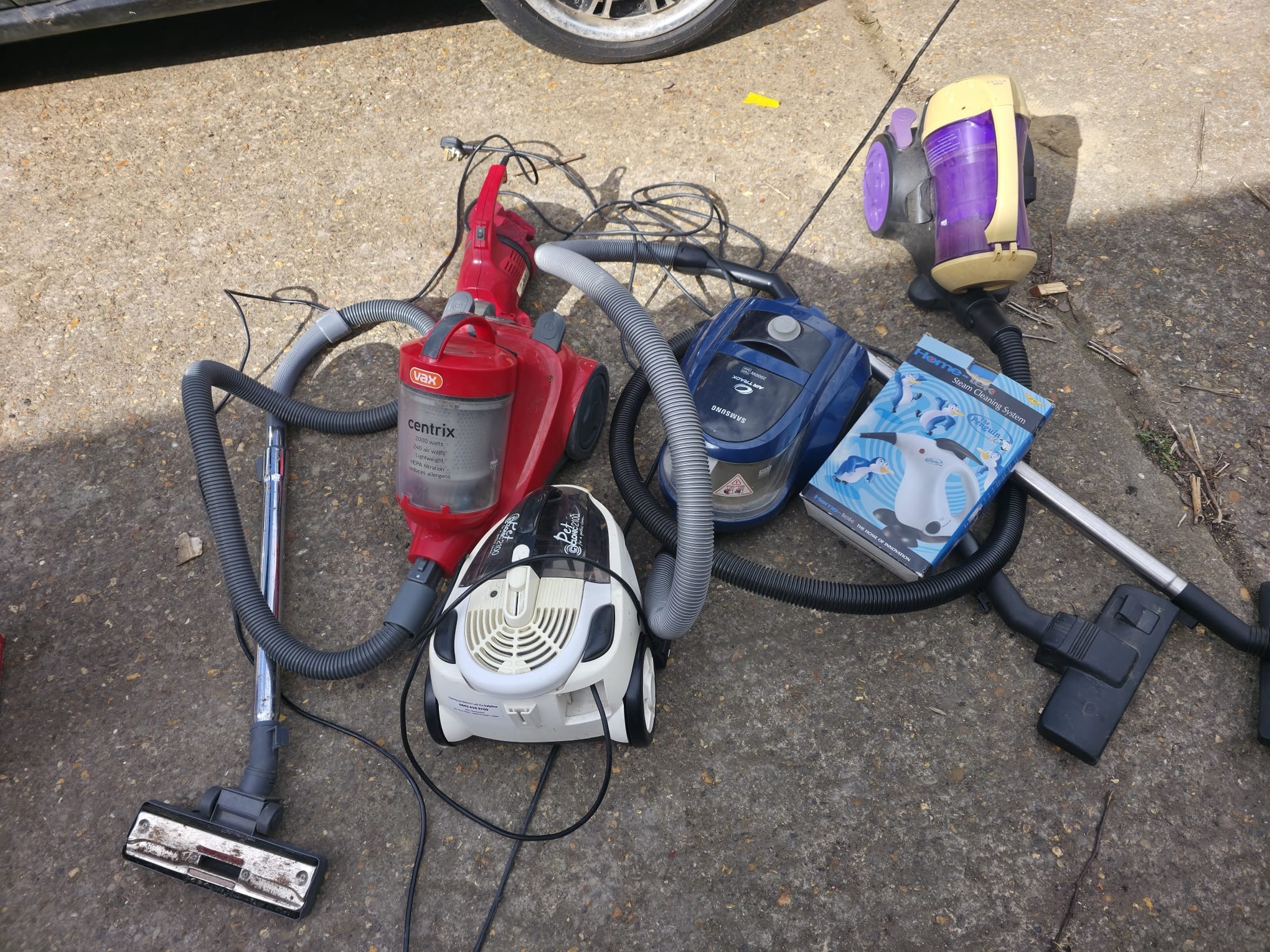 A group of vacuum cleaners including Vax, Samsung and others, together with a boxed steam cleaner. All powered on but not functionally tested. Ideal for spares, repair or resale.