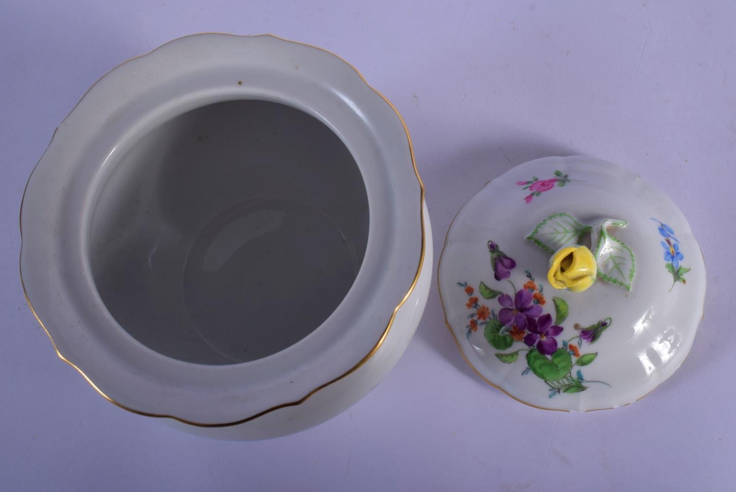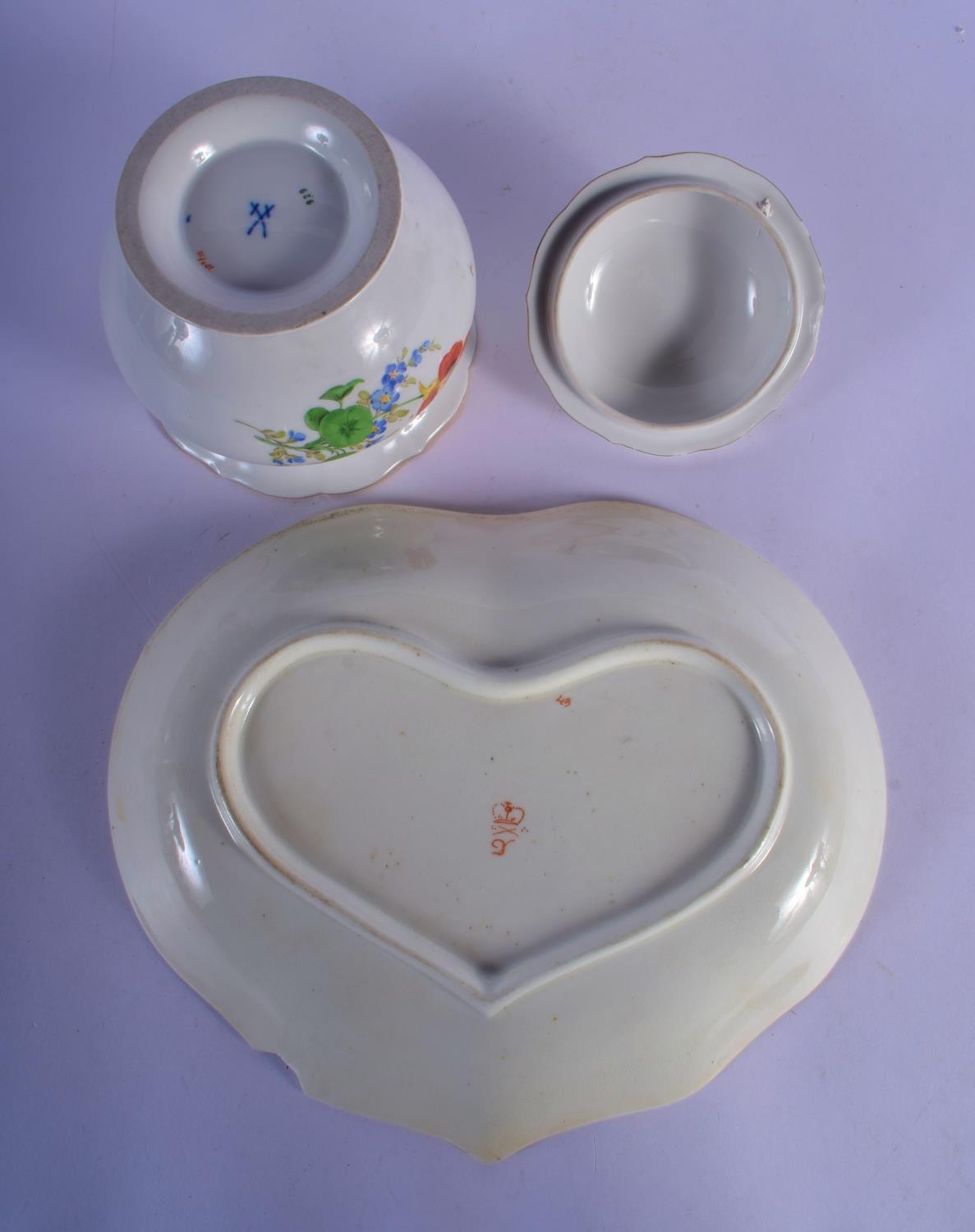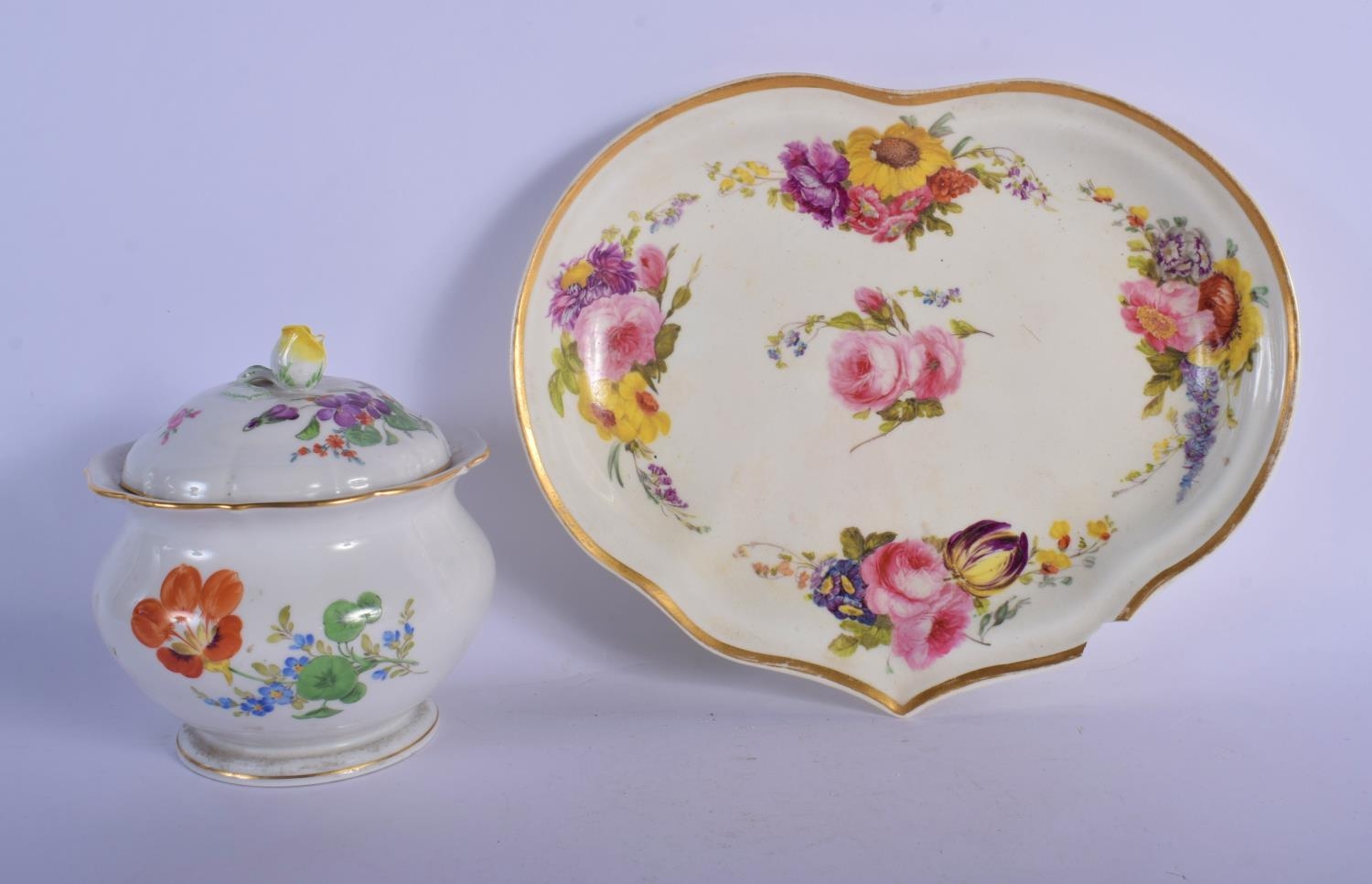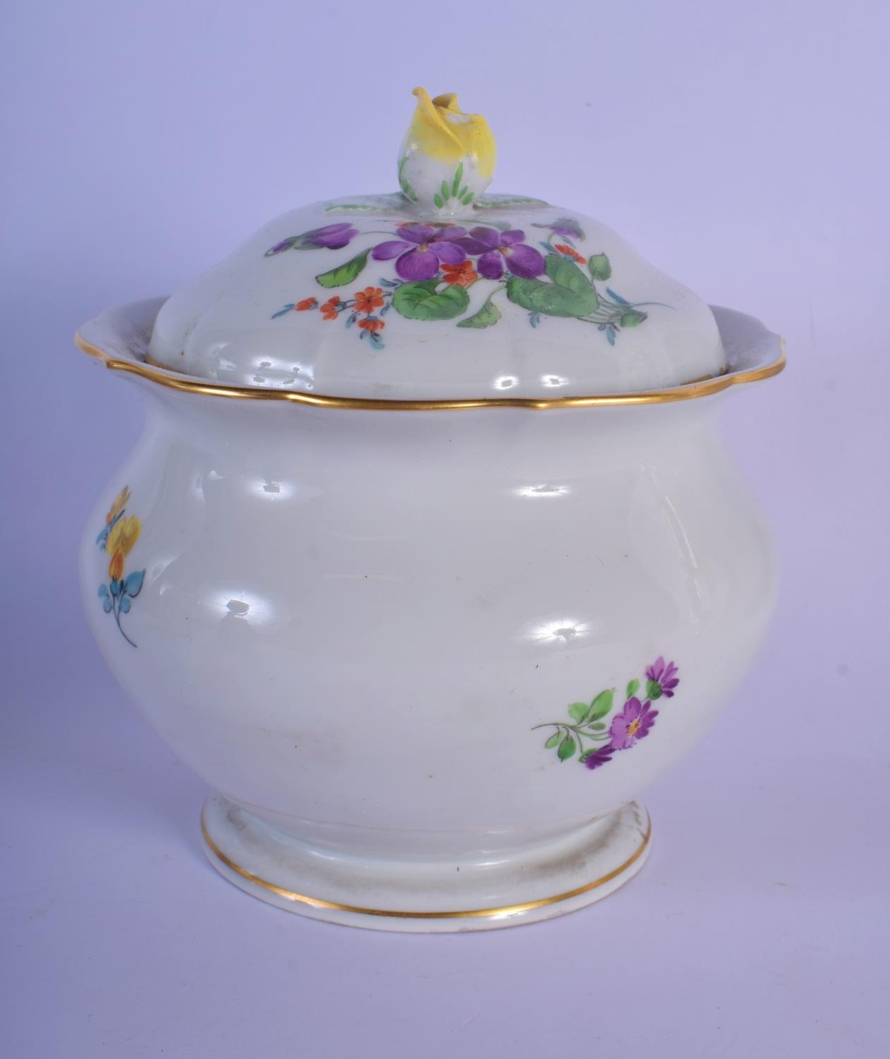 A MEISSEN PORCELAIN SUCRIER AND COVER together with a C1800 Derby dish. Largest 24 cm wide. (2)