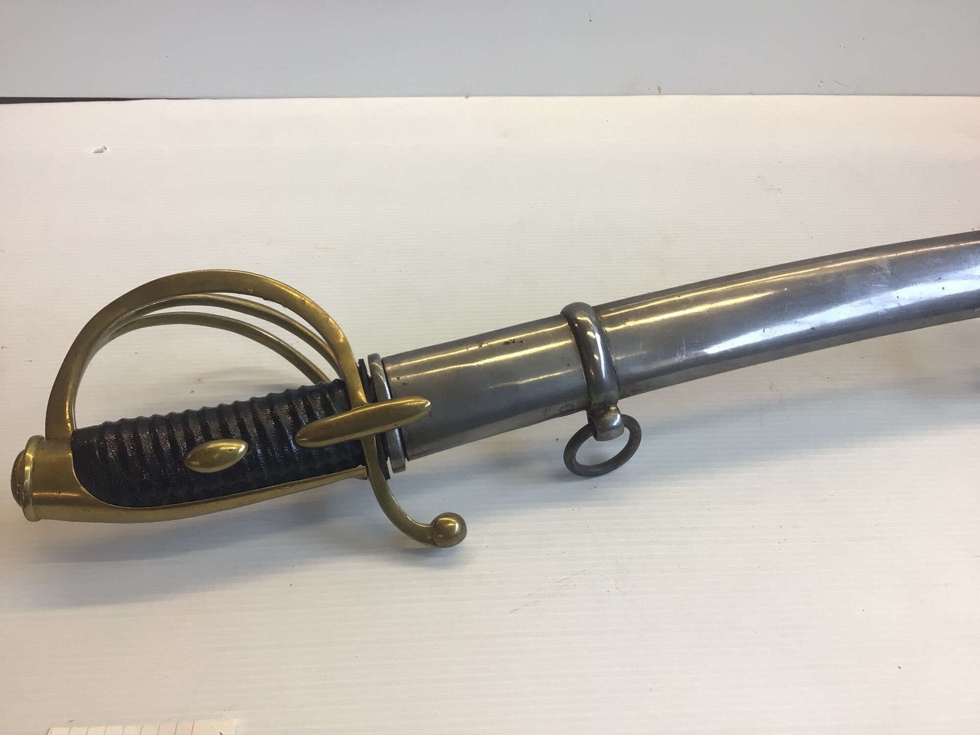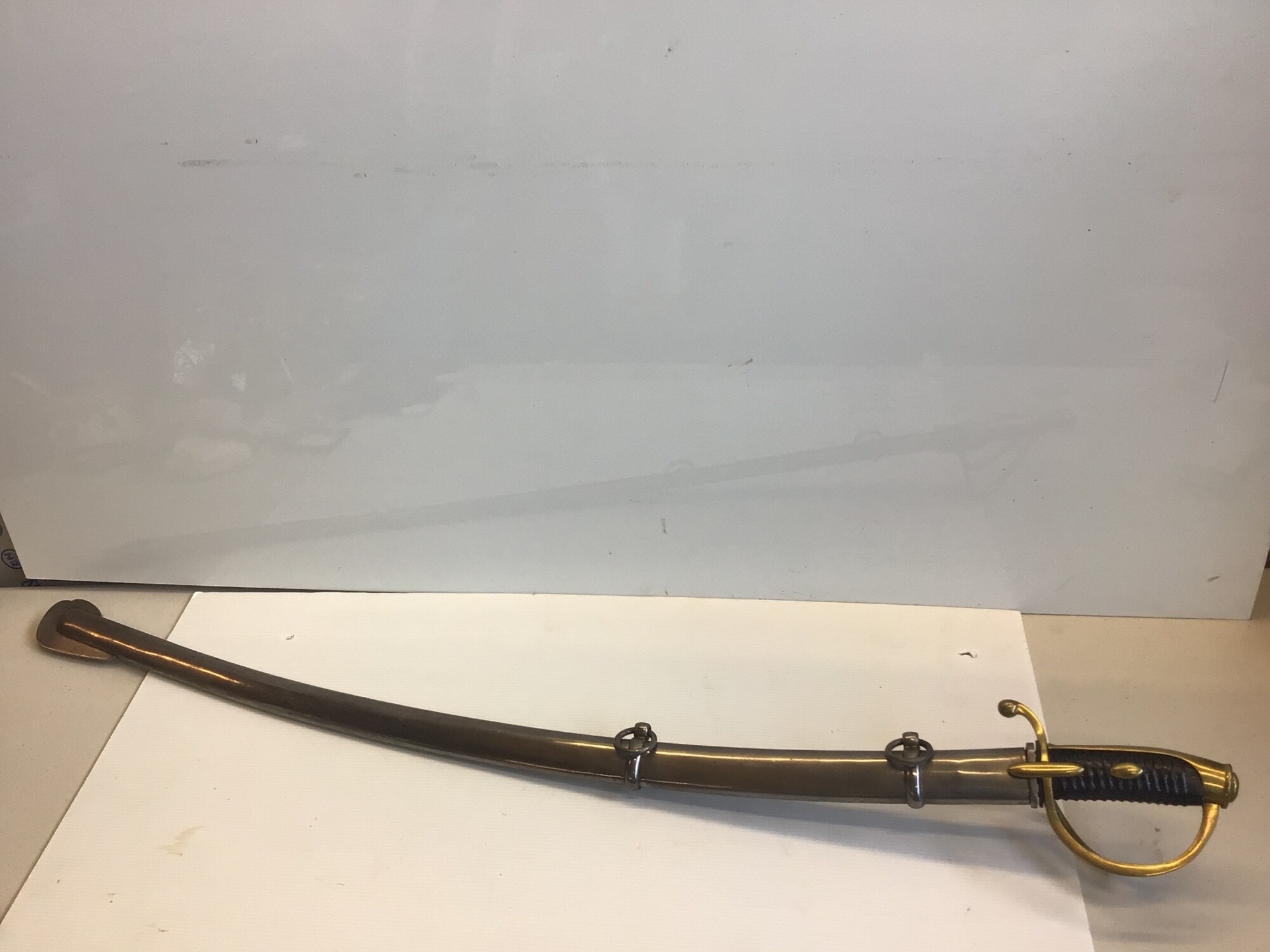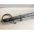 A French Empire AN IV Dragoon sword with an engraved steel blade brass guard and steel scabbed.