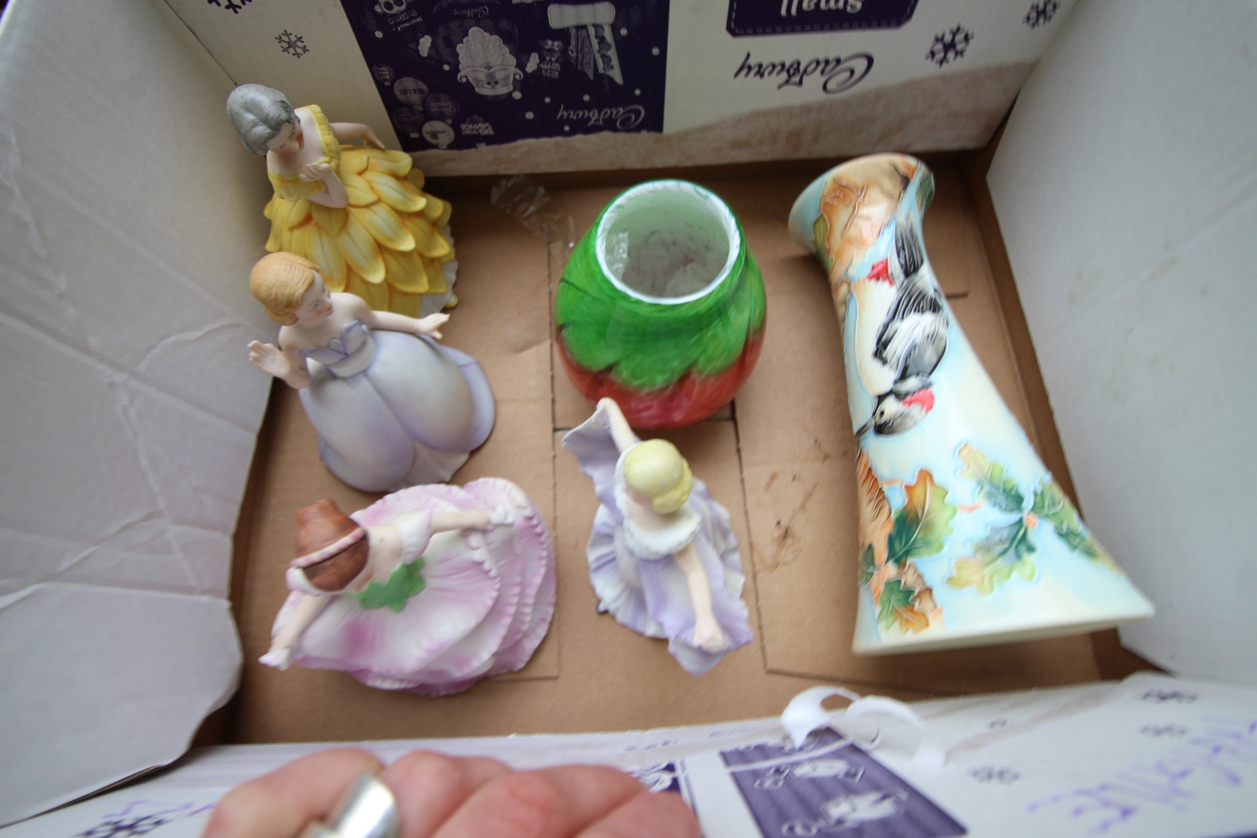 Franklin porcelain ceramic ladies, OLD TUPTON ware vase and decorative glass bud vase