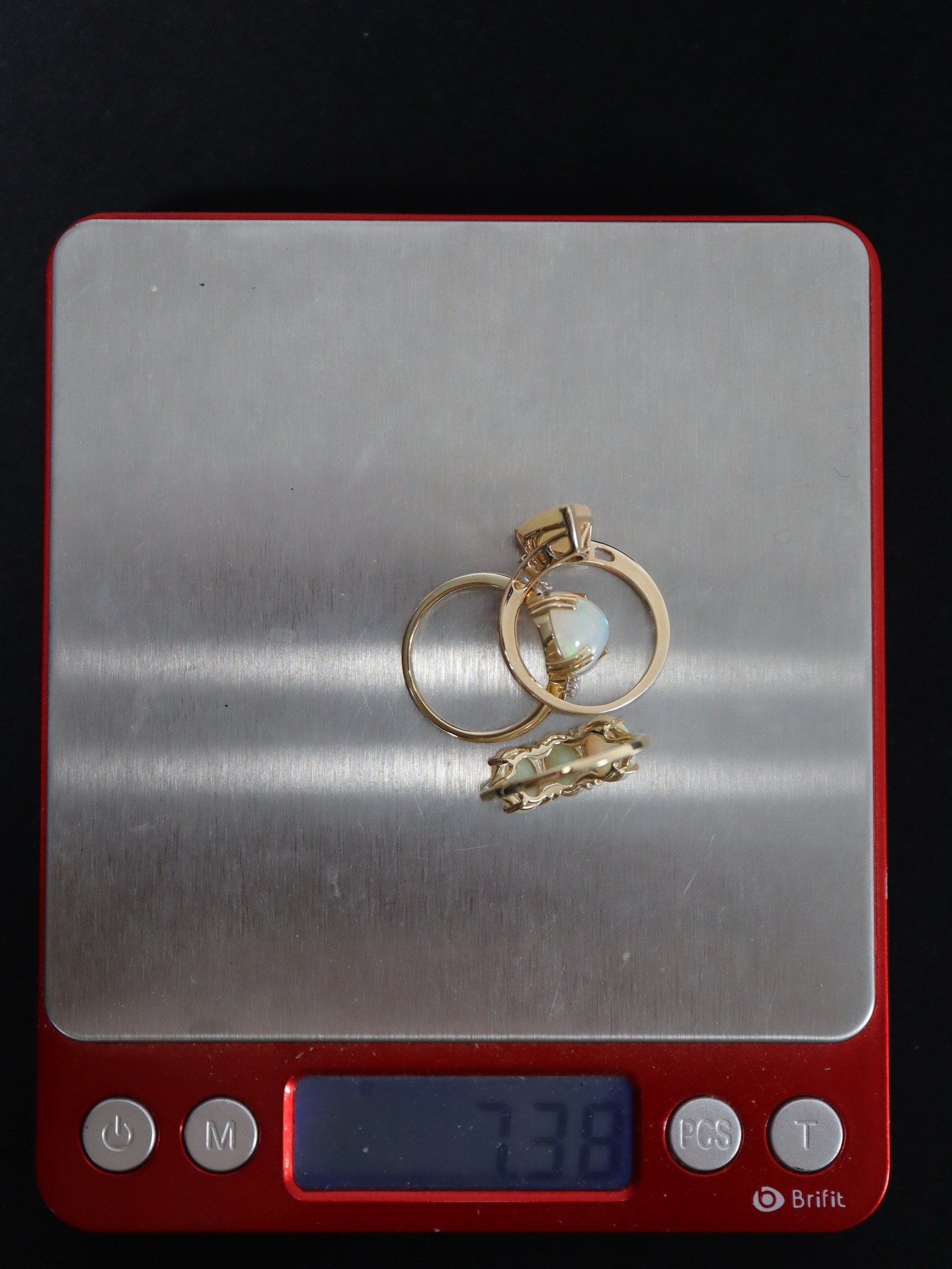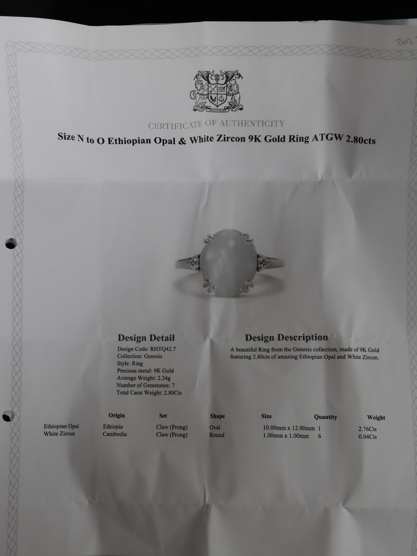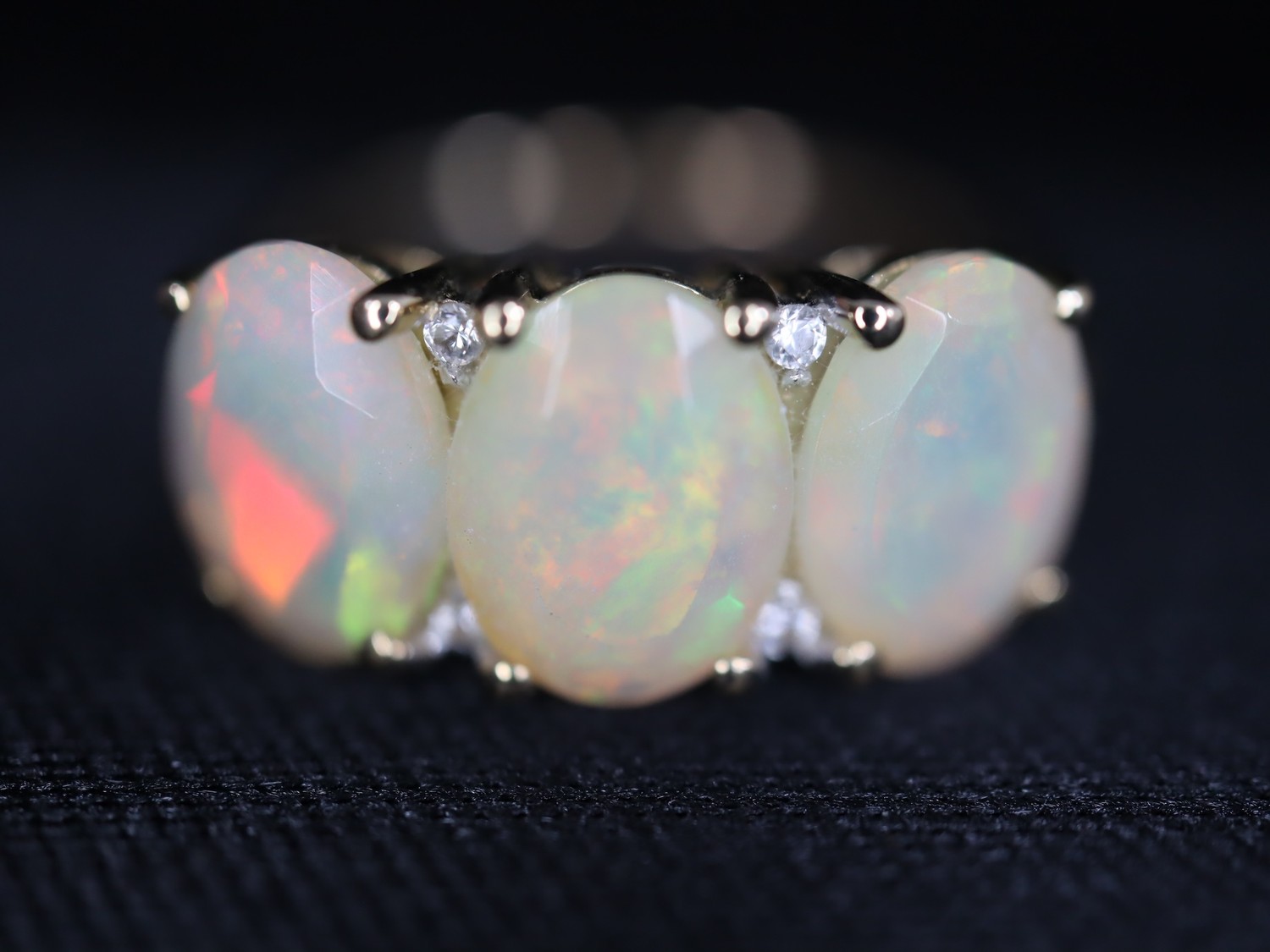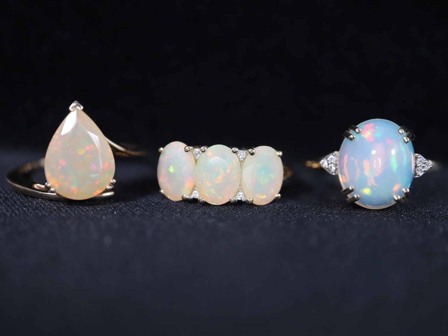 Ethiopian Opal & White Zircon 9K Gold Ring Atgw 2.09cts, Ethiopian Opal & White Zircon 9K Gold Ring Atgw 2.80cts, 1.77ct Ethiopian Opal 9K Gold Ring Size N to O -7.3g
