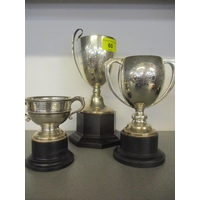 Two silver twin handled trophy cups, 248g, on standsLocation: 6:1
