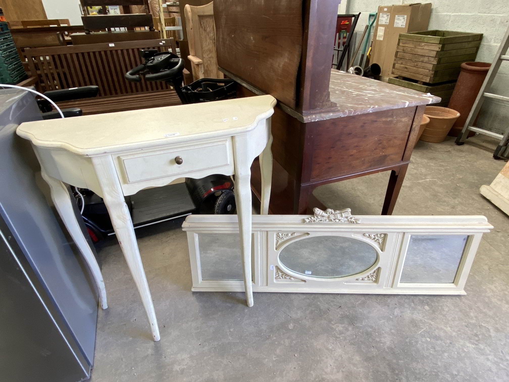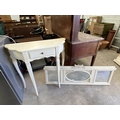 Cream single drawer console table 80H 80W 30D and a cream wall mirror 40H 117W