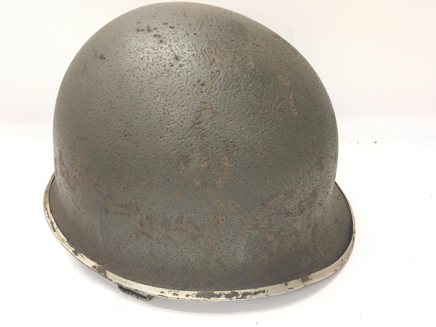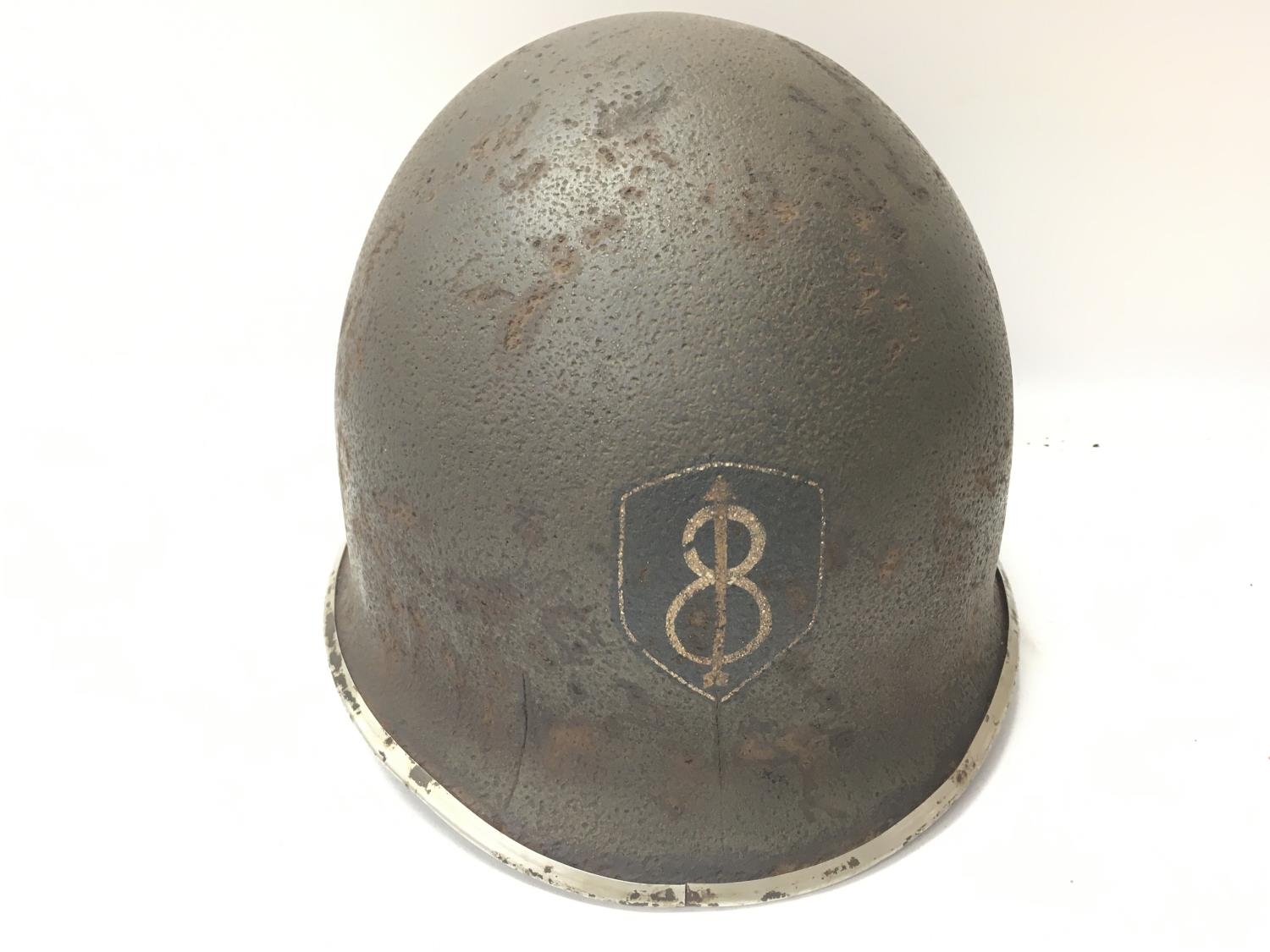WW2 US 8th Infantry Division Swivel Bale M1 Helmet with Westinghouse liner.