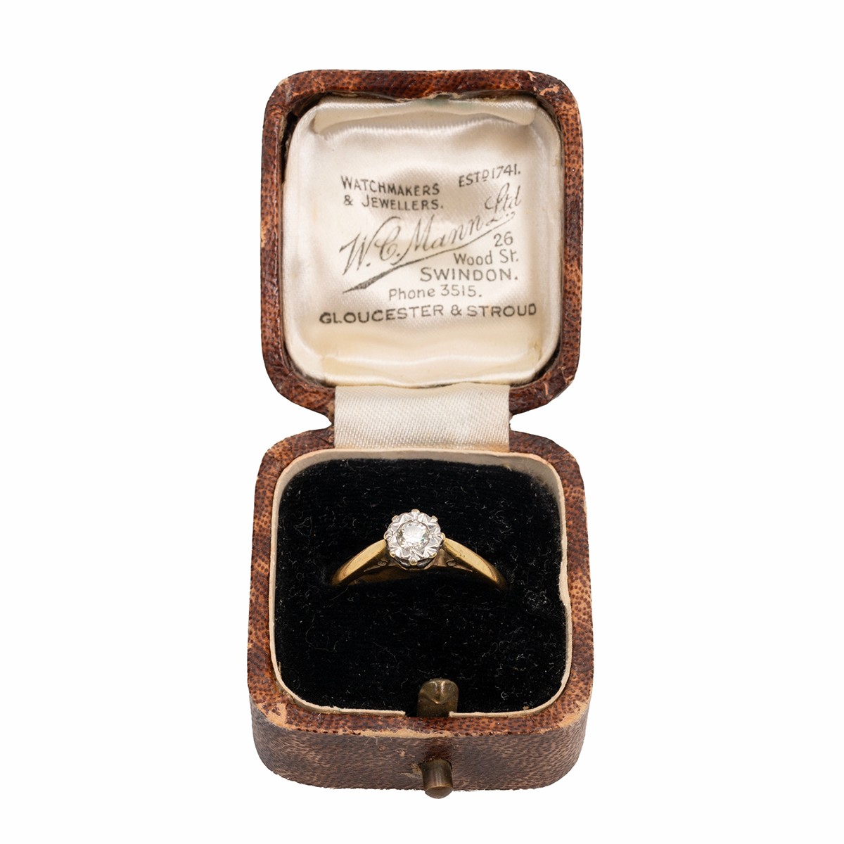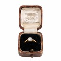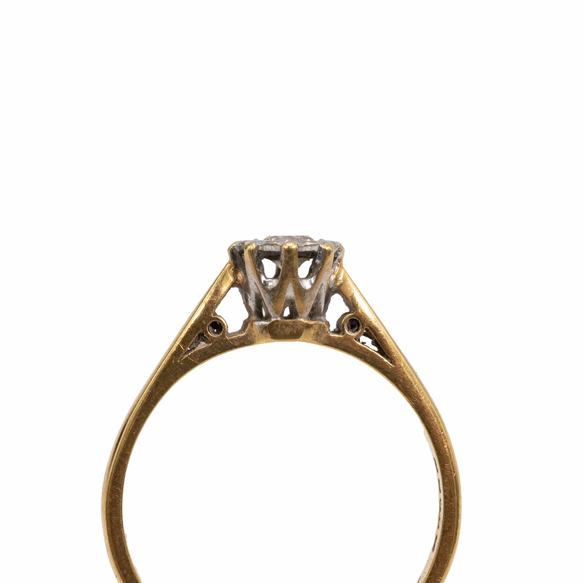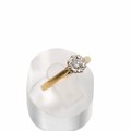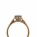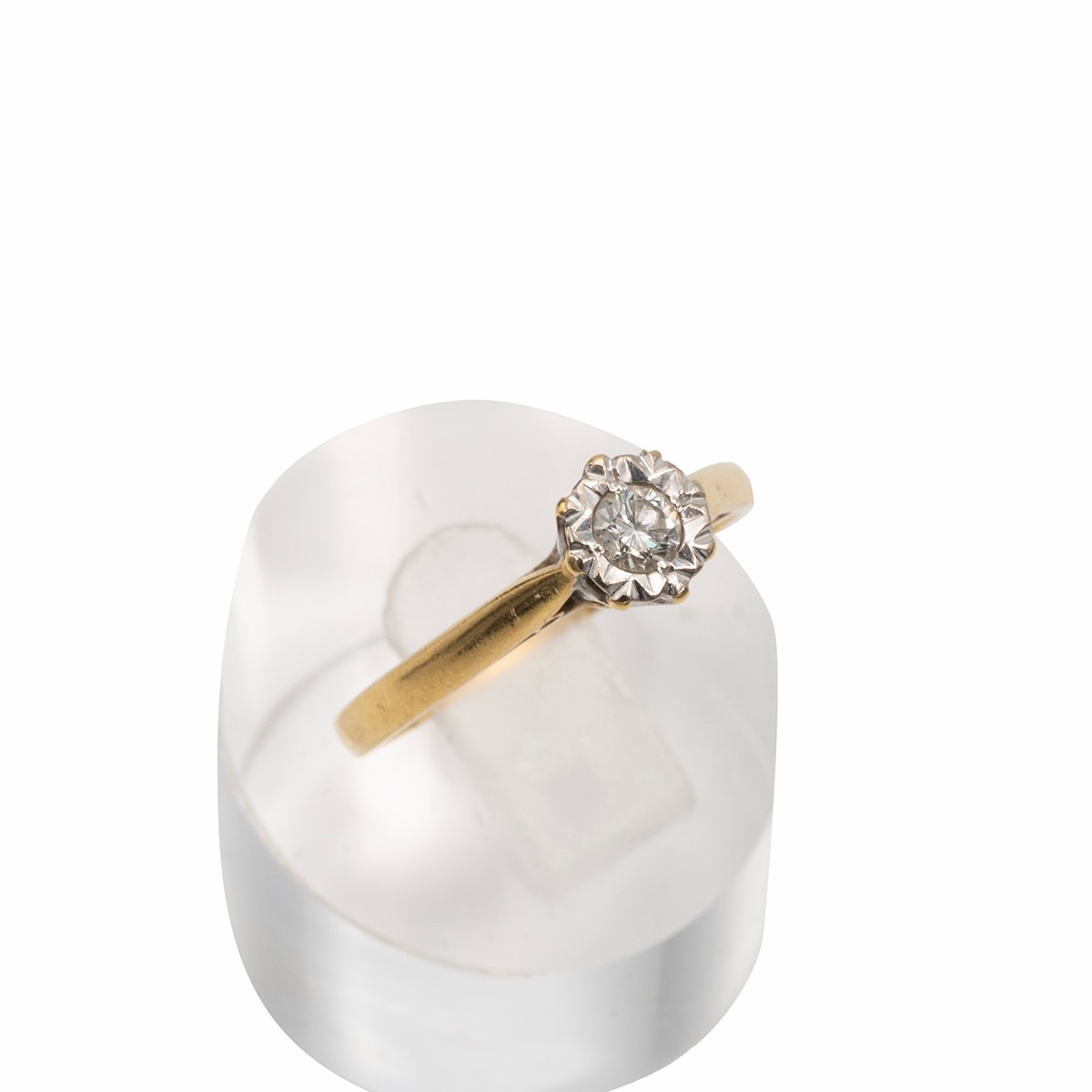 18ct gold solitaire diamond ring, in a flower-shaped setting, the diamond measuring approximately 1.10 carats, with a raised setting size O, weight 2.9 grams.