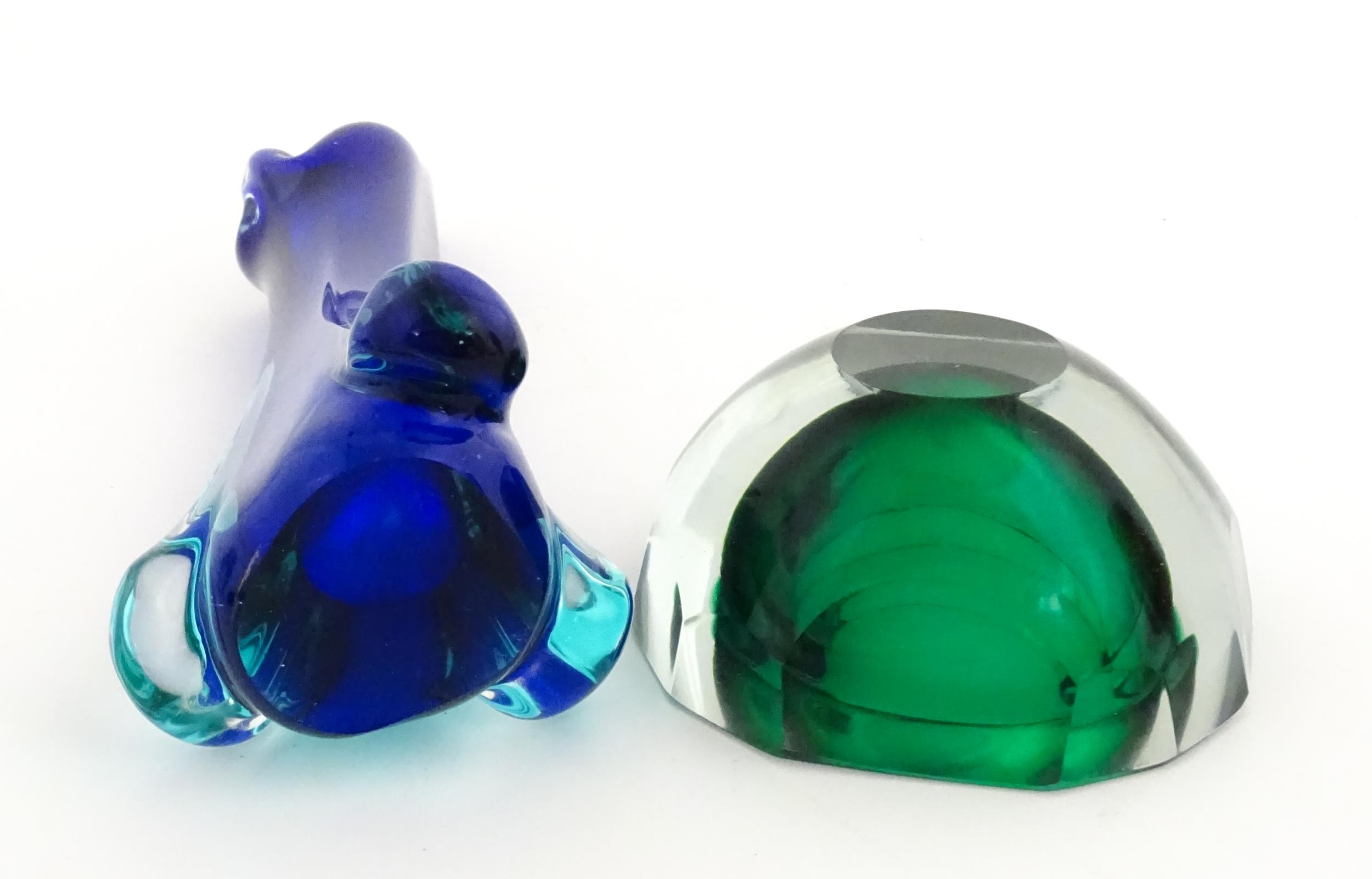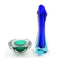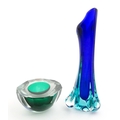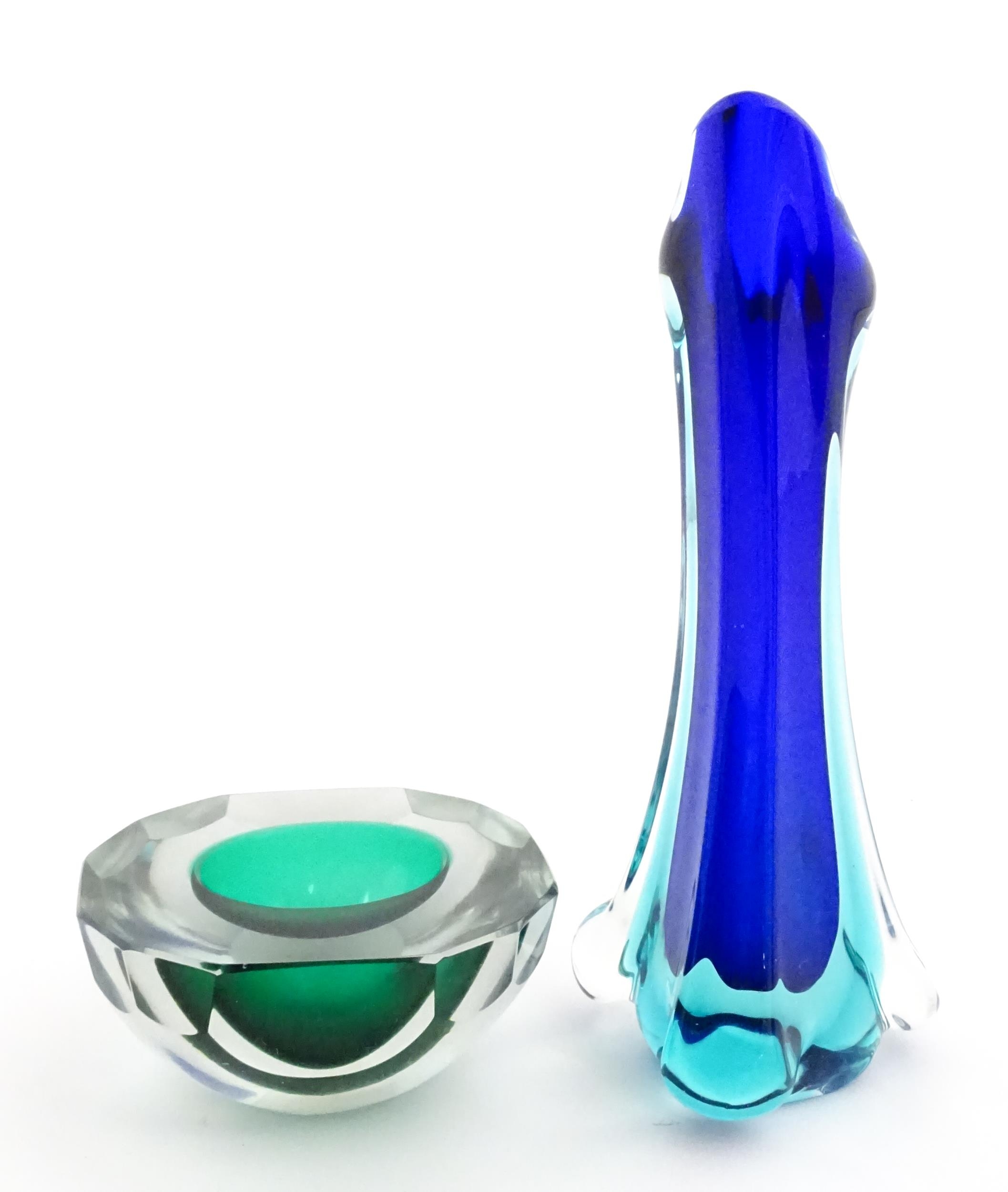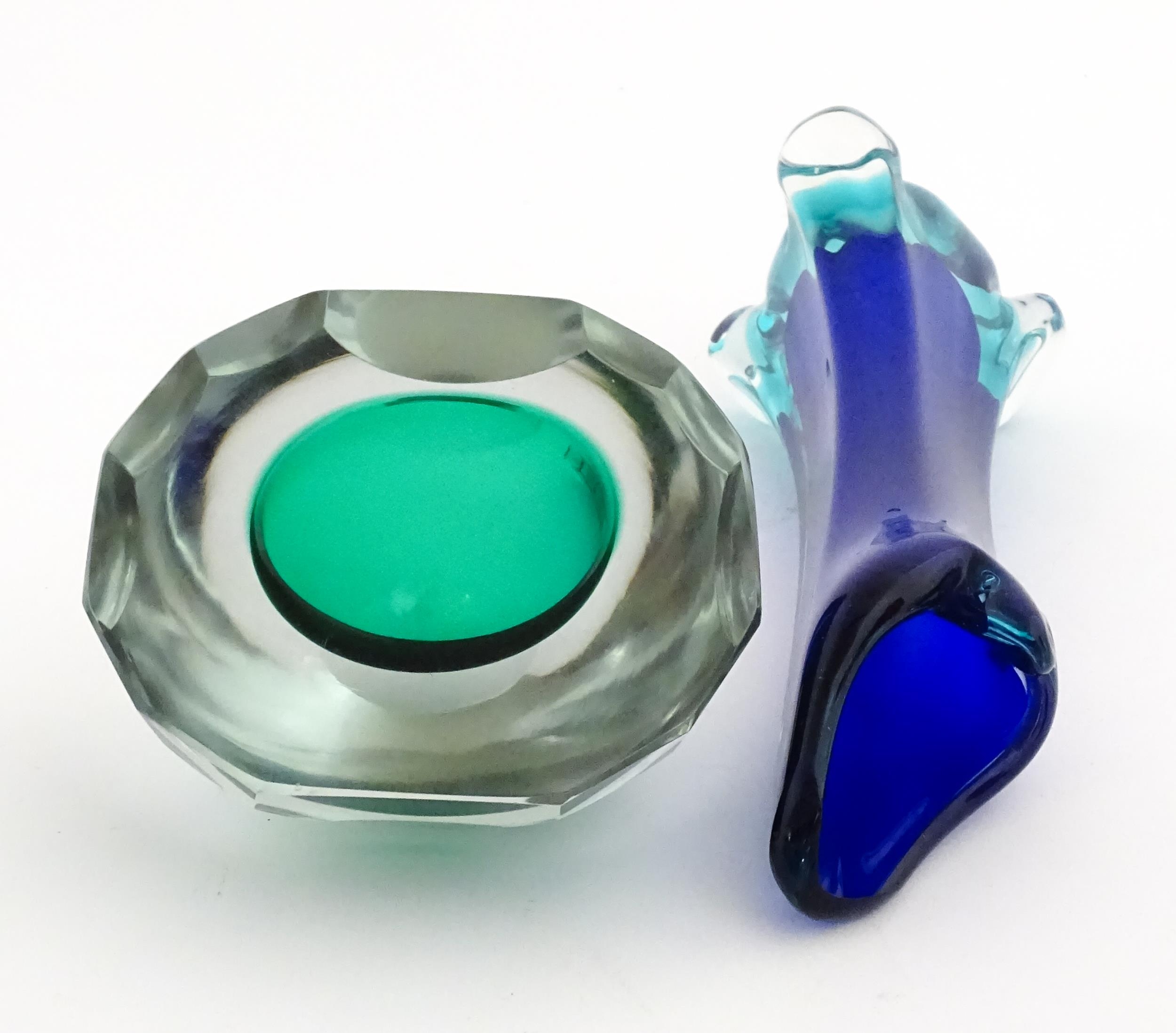 A Murano sommerso glass ash tray of green and clear glass, together with a Murano glass vase. The vase approx 10 3/4" high