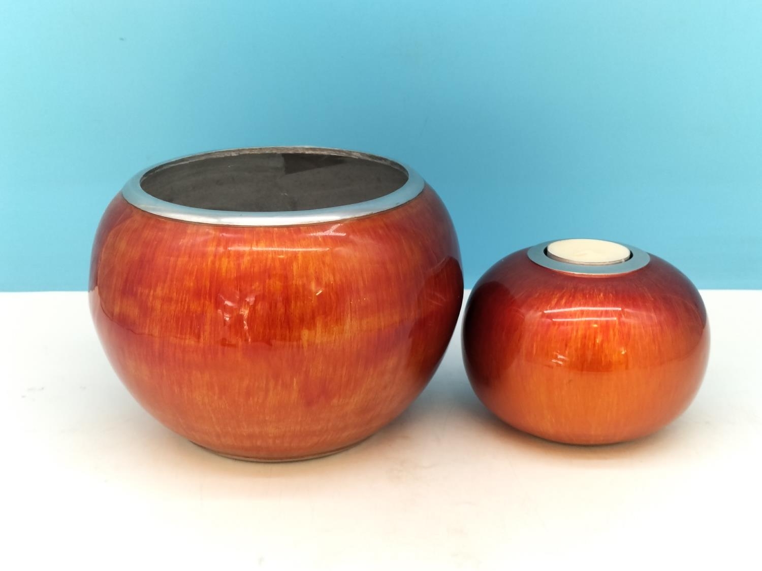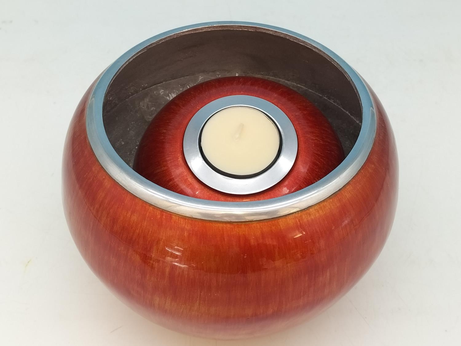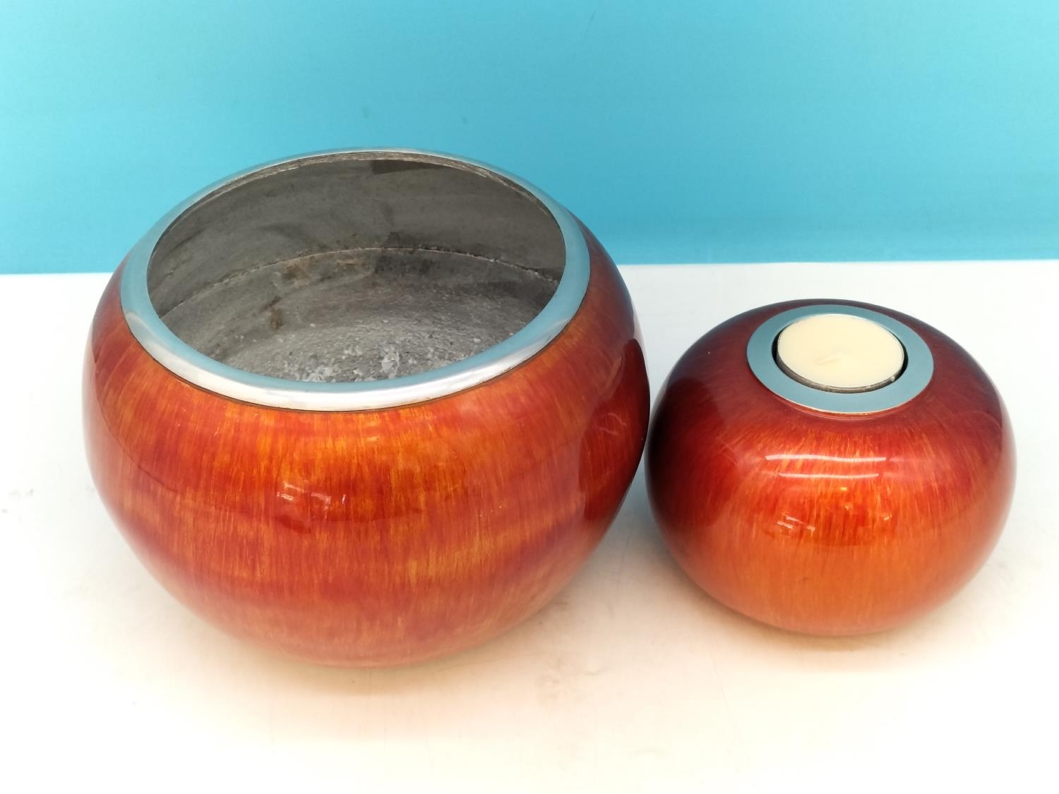 Vibrant Enamelled Metal Bowl plus Matching Tealight Holder. Bowl 13cm High, 18cm Diameter.