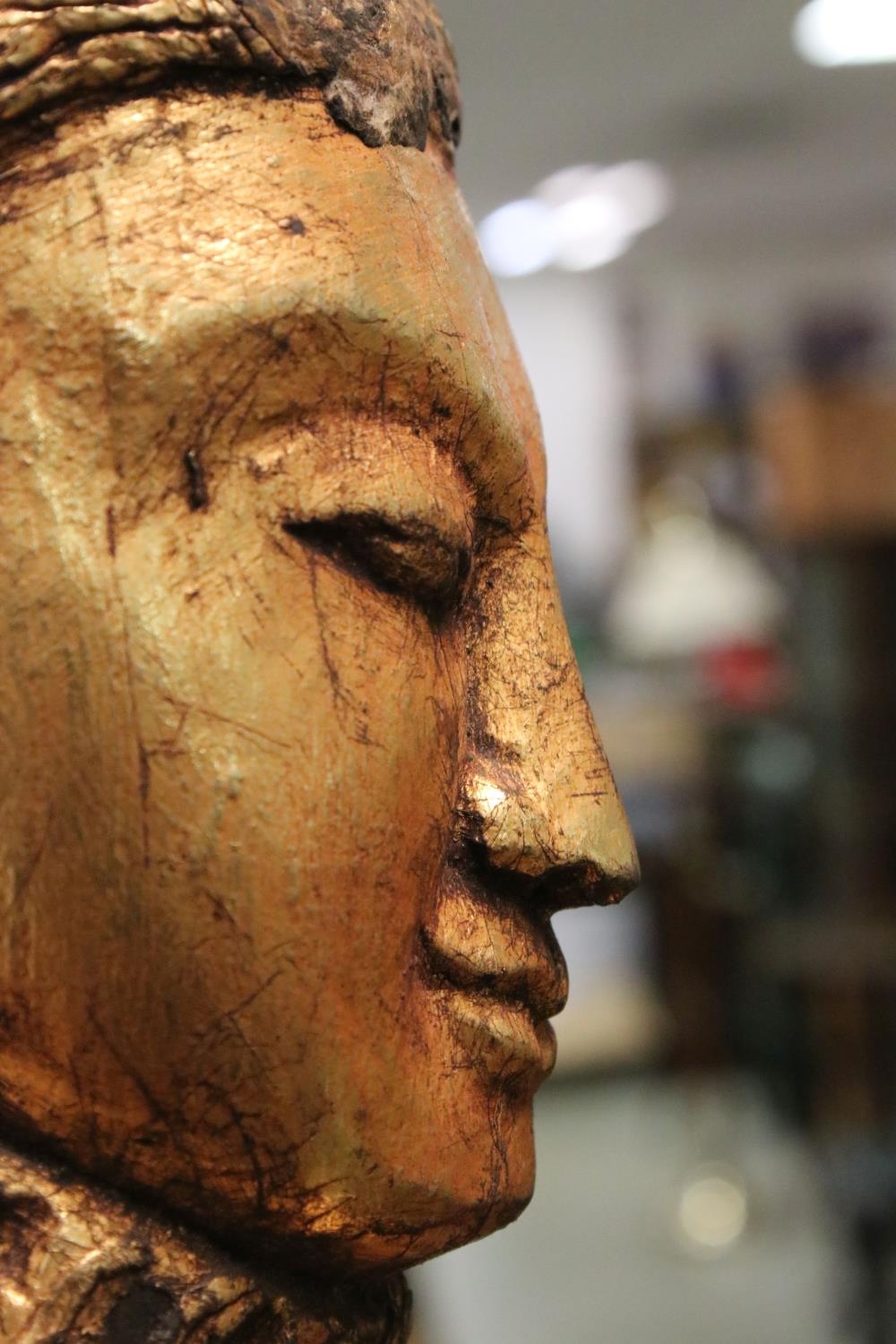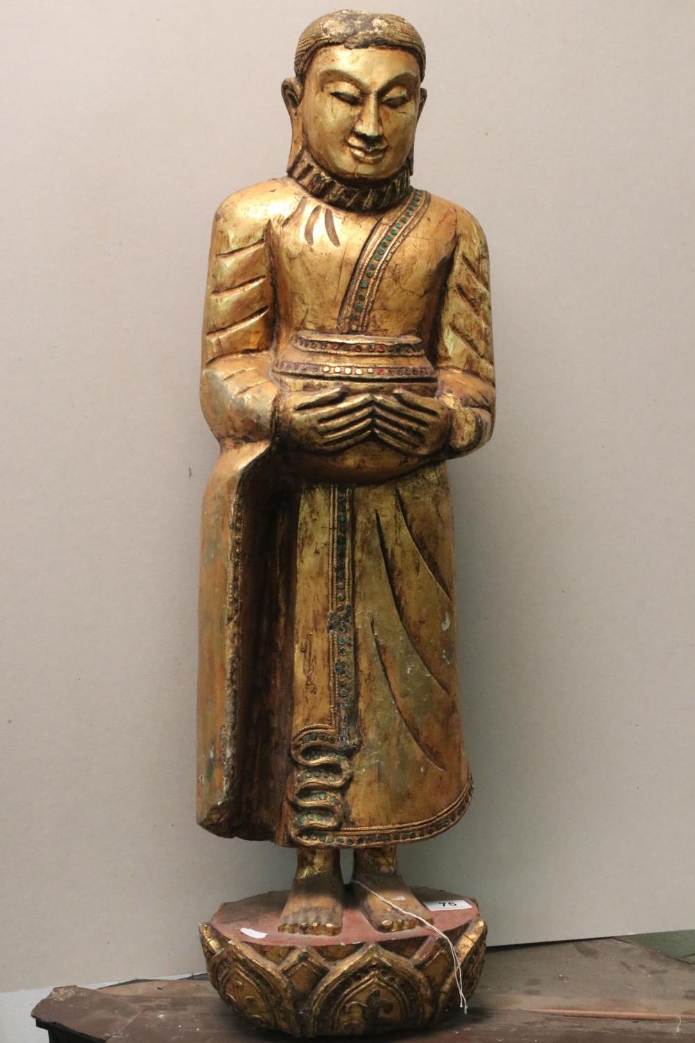 Large South East Asian Gilt Wooden Carved Buddha / Deity, 85cms high