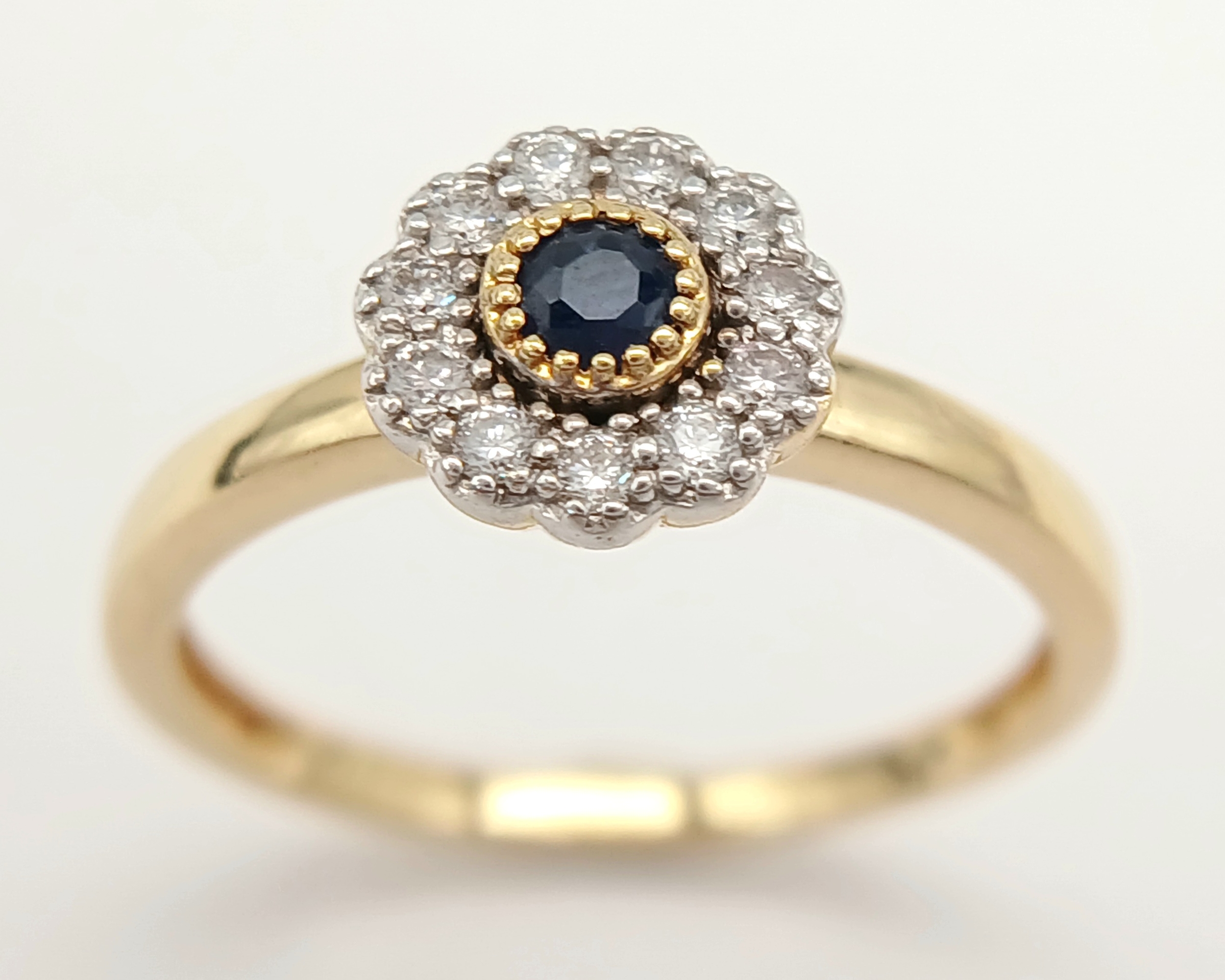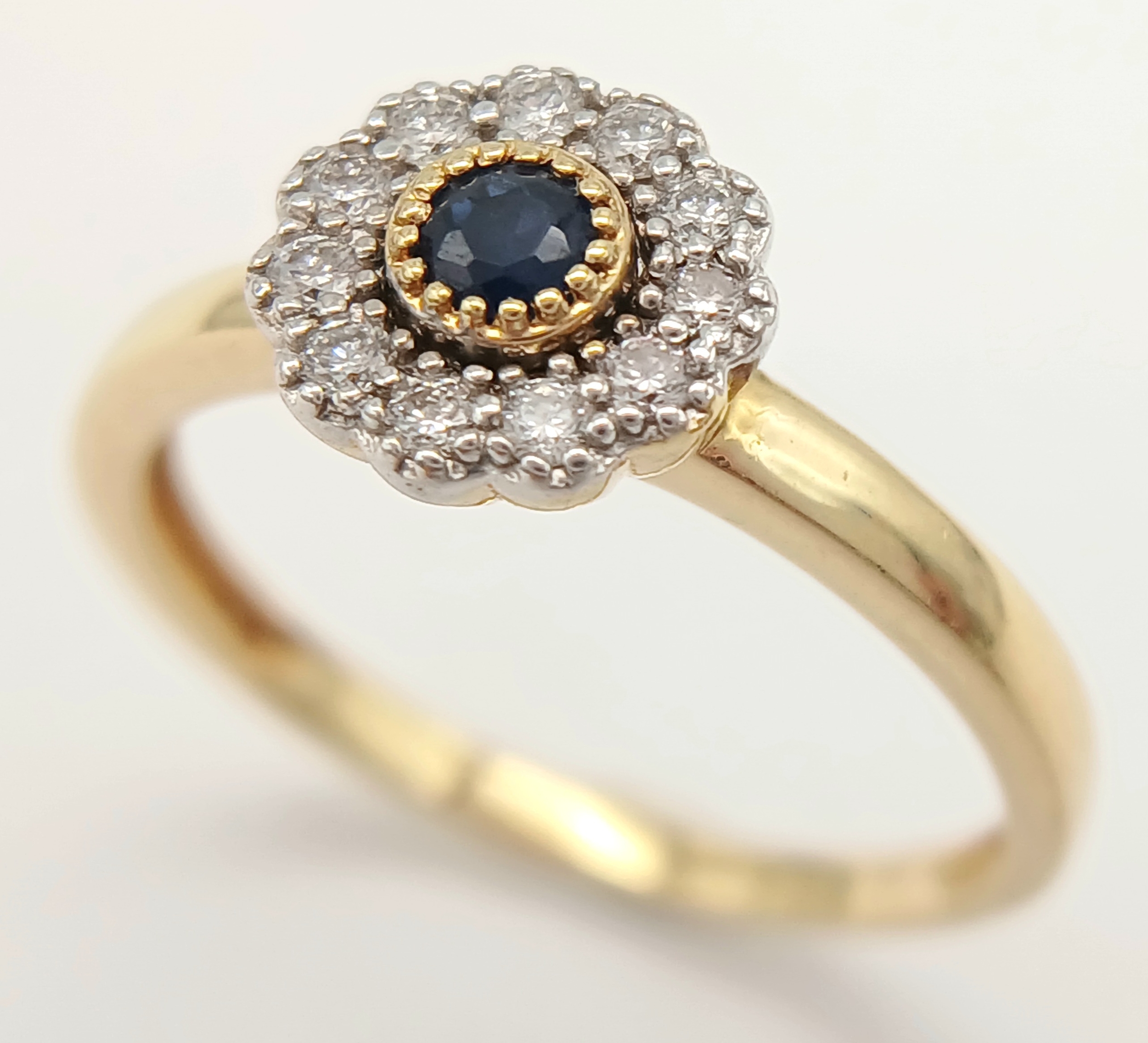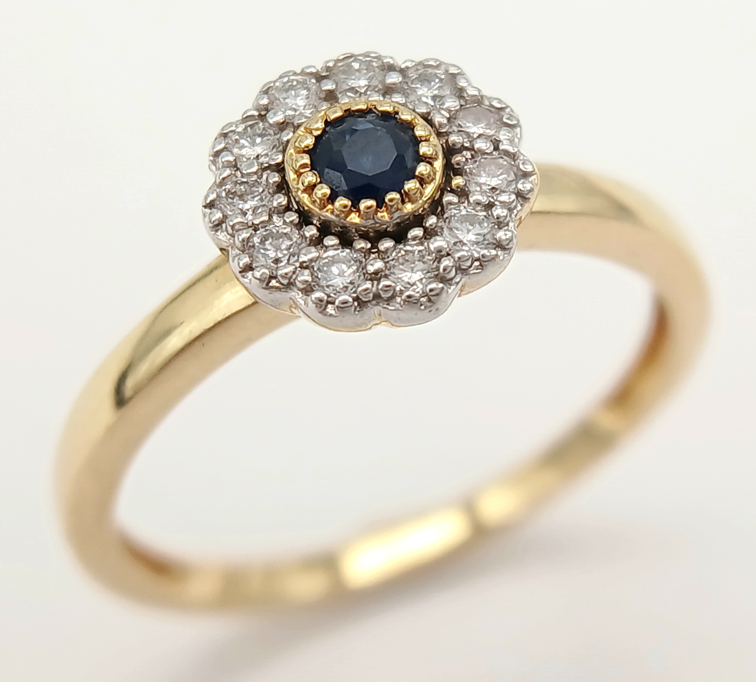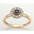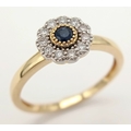 AN 18K YELLOW GOLD DIAMOND & SAPPHIRE CLUSTER RING 2.5G TOTAL WEIGHT, SIZE N. REF: A/S 1210 - 1