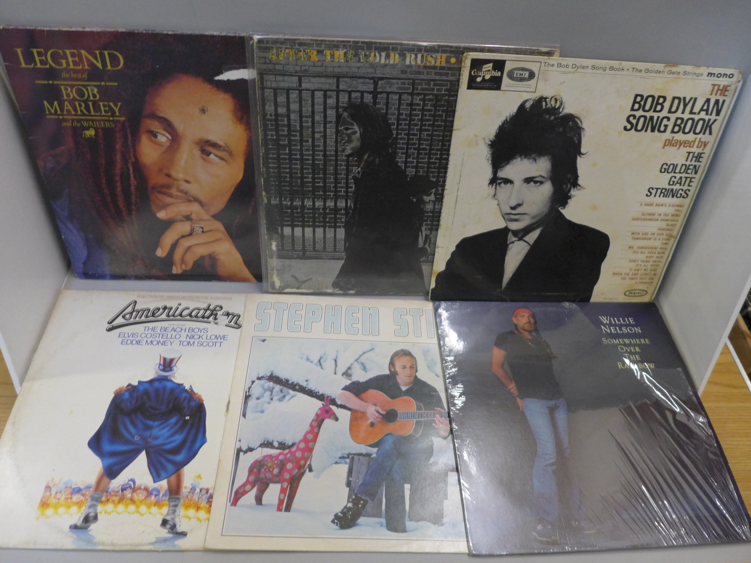 18 LPs including rock, blues, reggae, Neil Young, Stephen Stills, Donovan, Lighthouse, Joe Cocker, Bob Marley, etc.