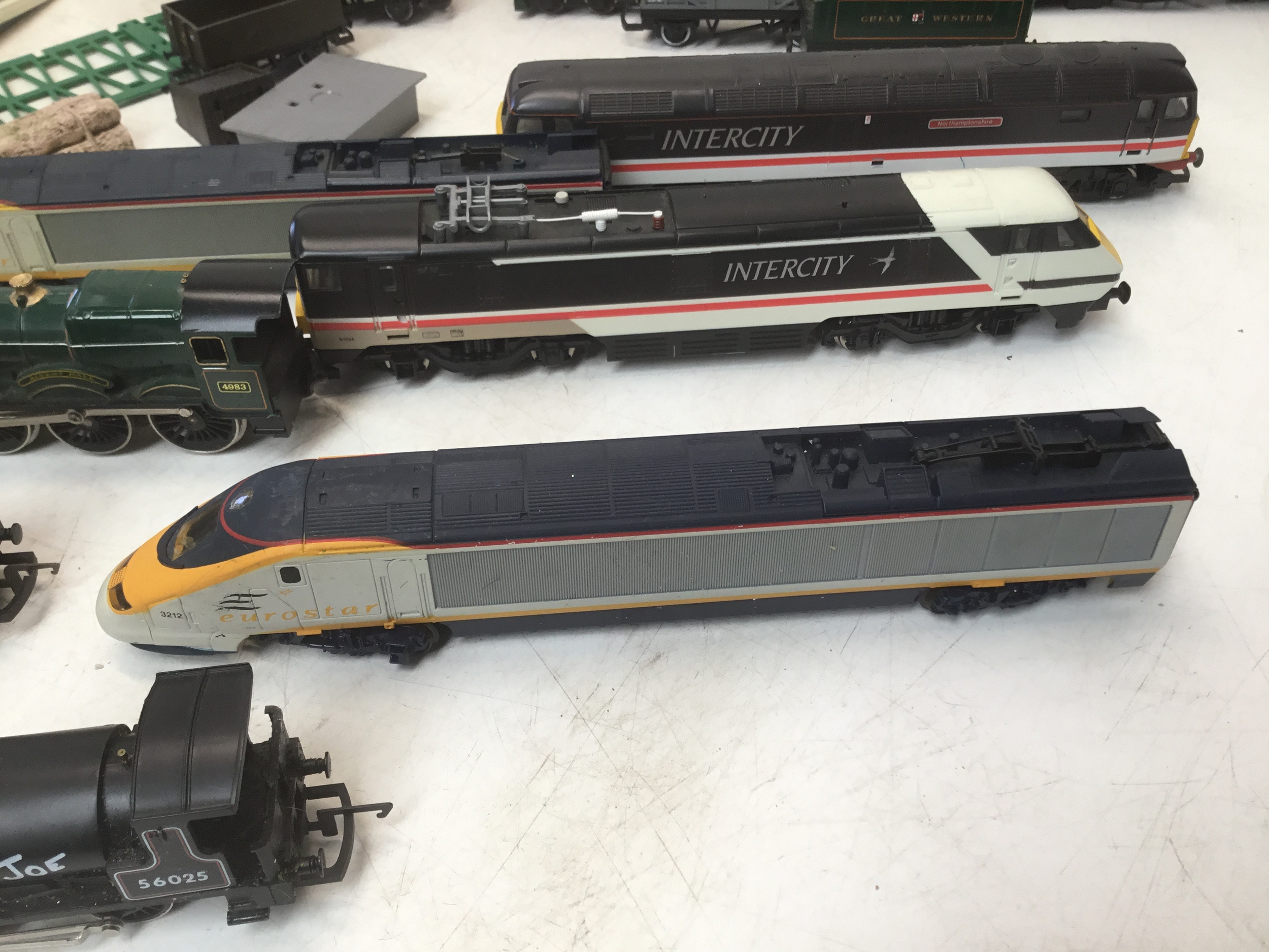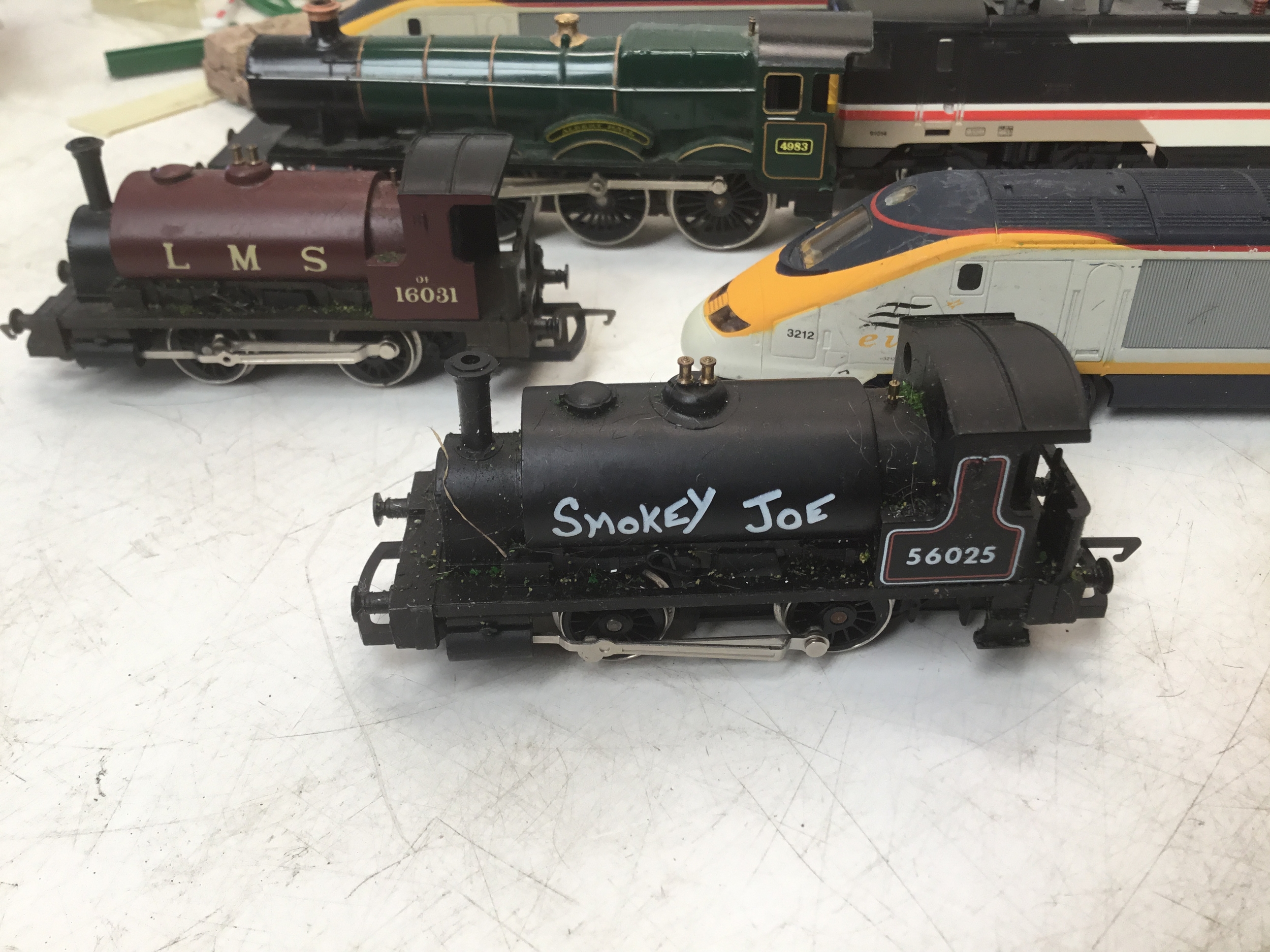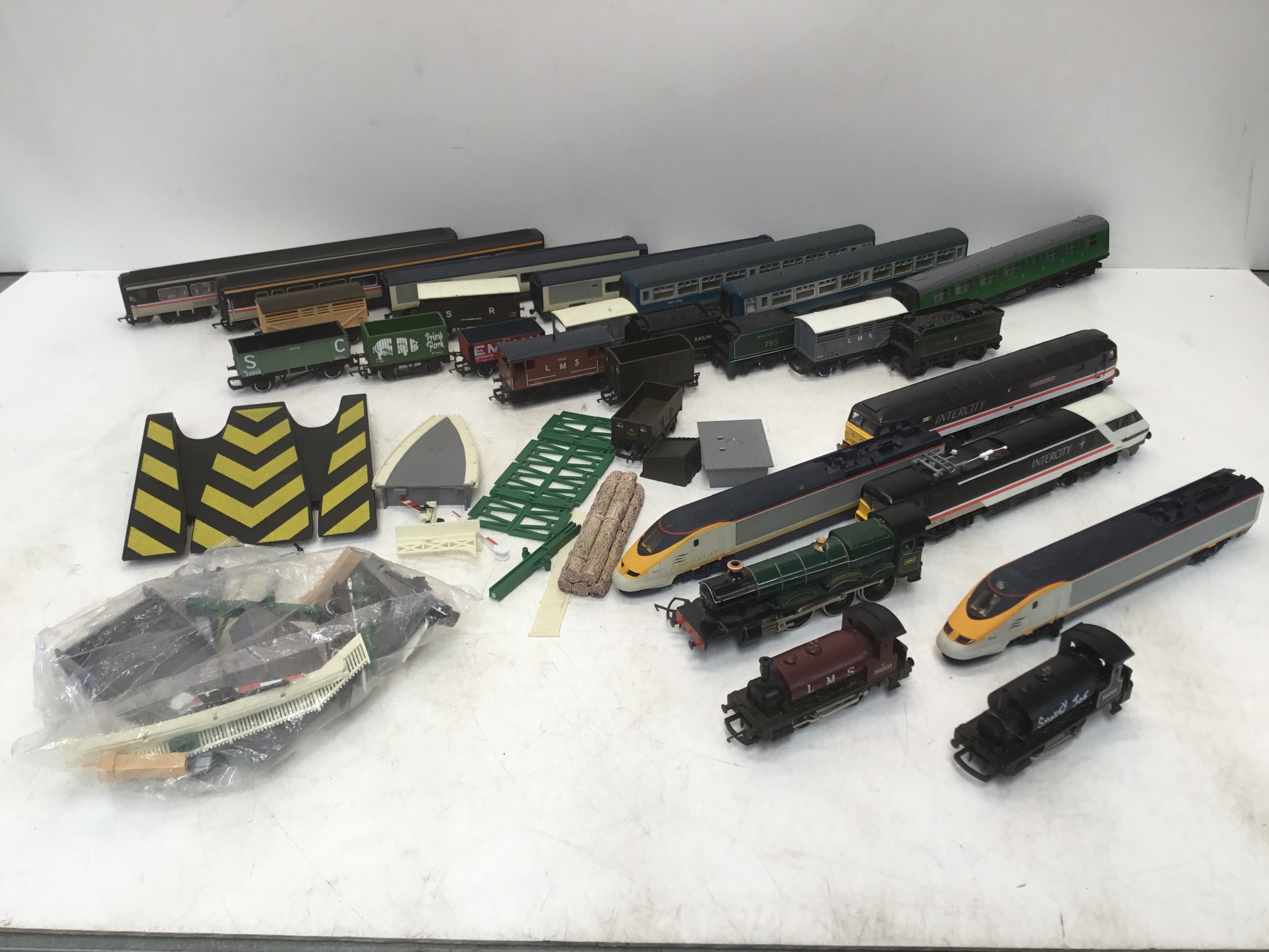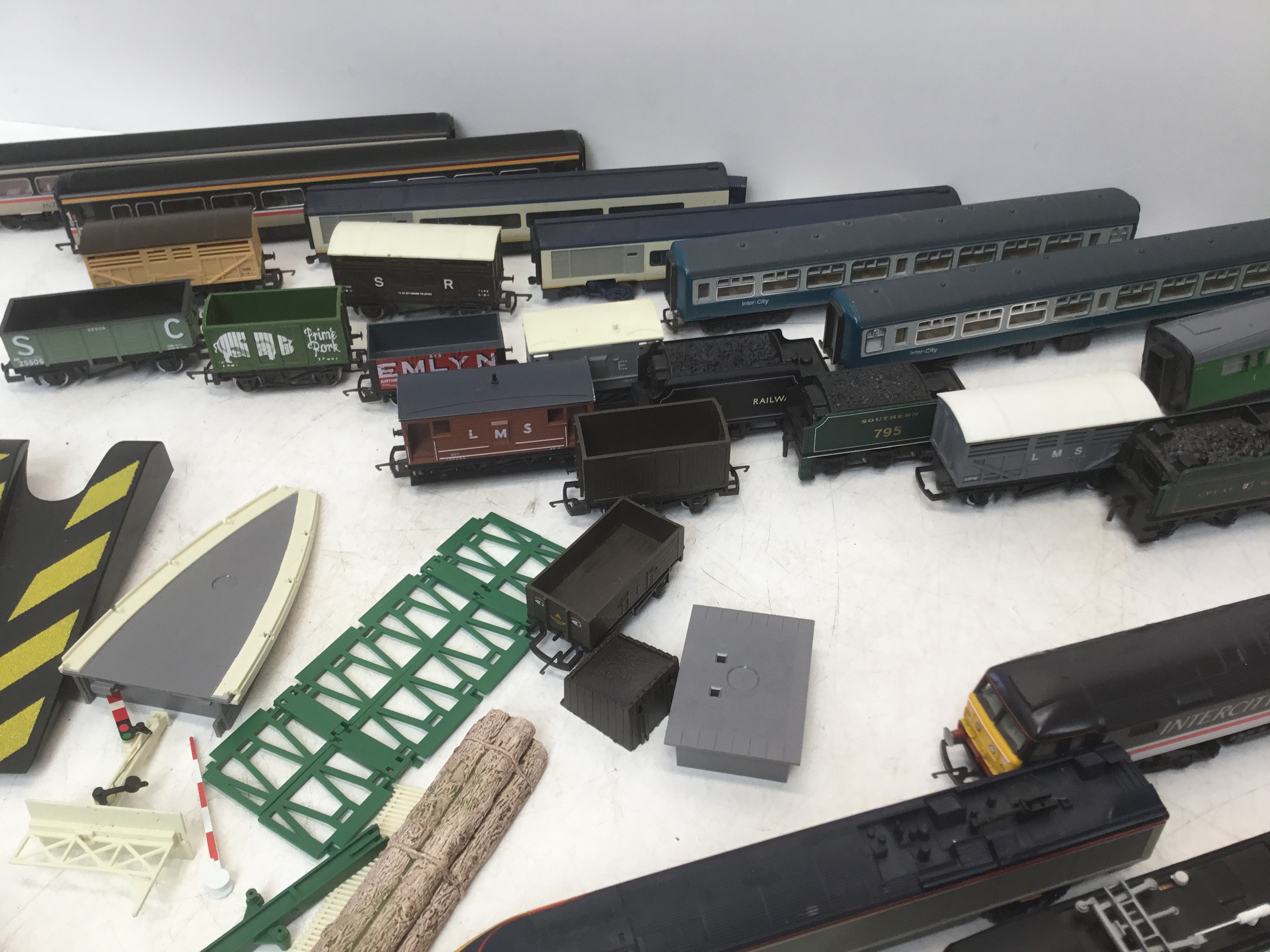 A selection of Hornby train carriages and engines