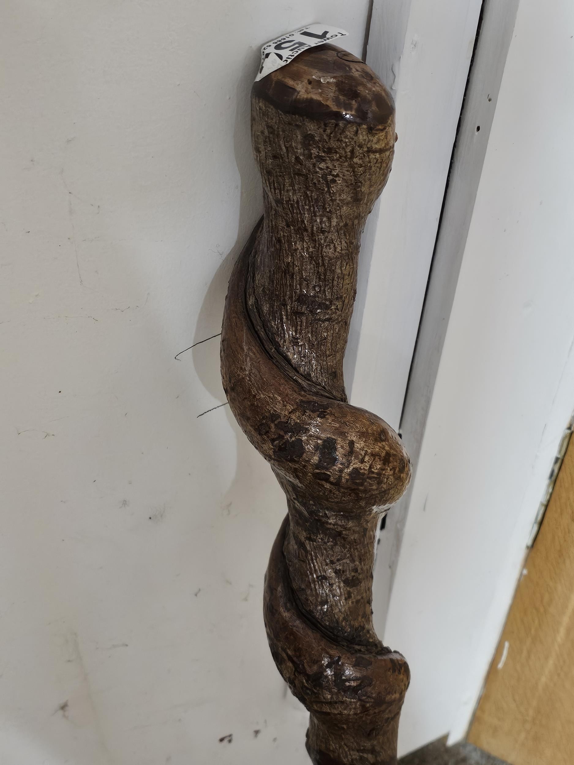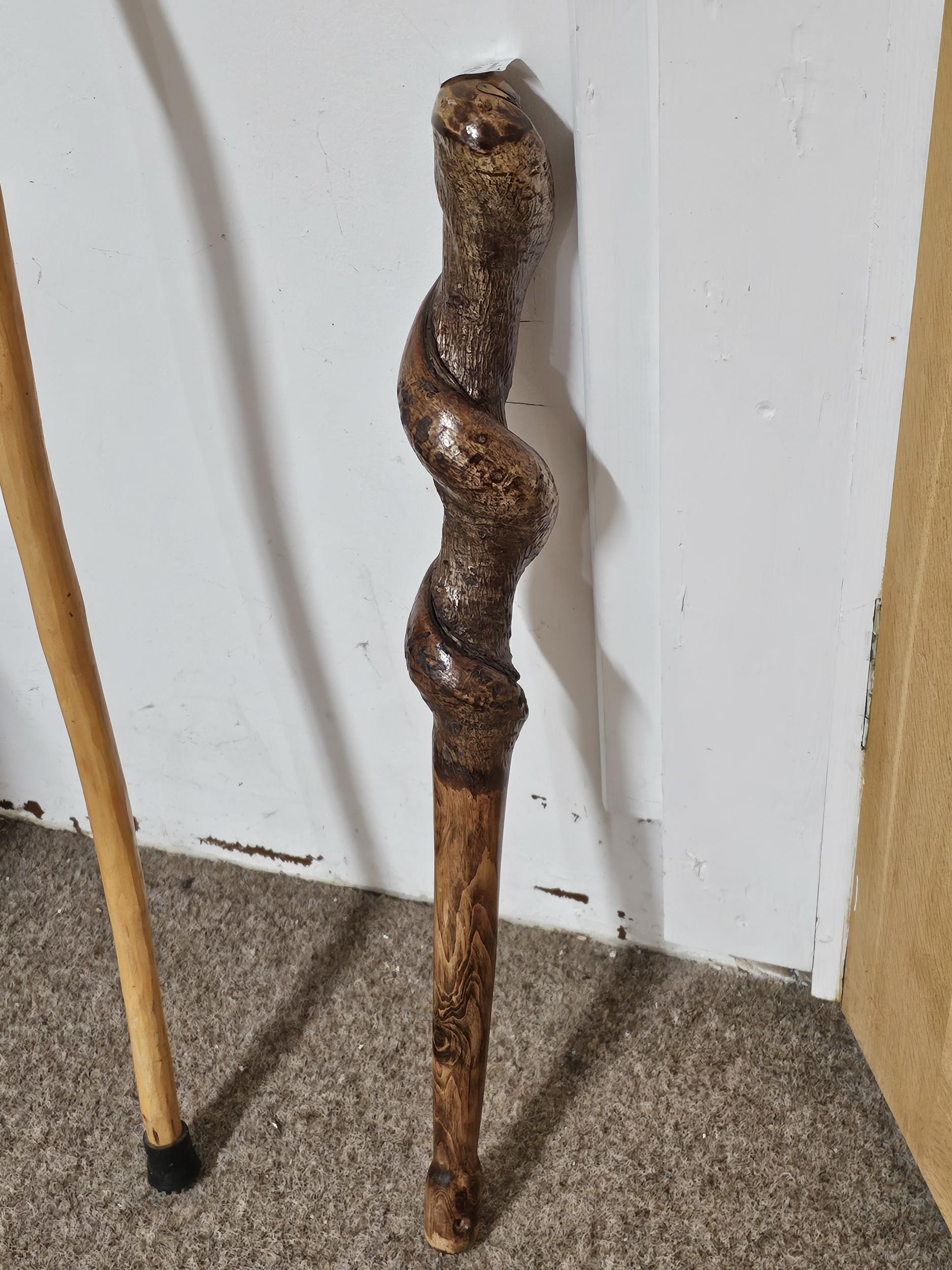 A good quality 2ft long twisted willow cudgel, a heavy stick used for self defence or as a club, the stick is well carved and heavily polished, also comes with a good quality hand made walking stick, the stick has a length of 128cm