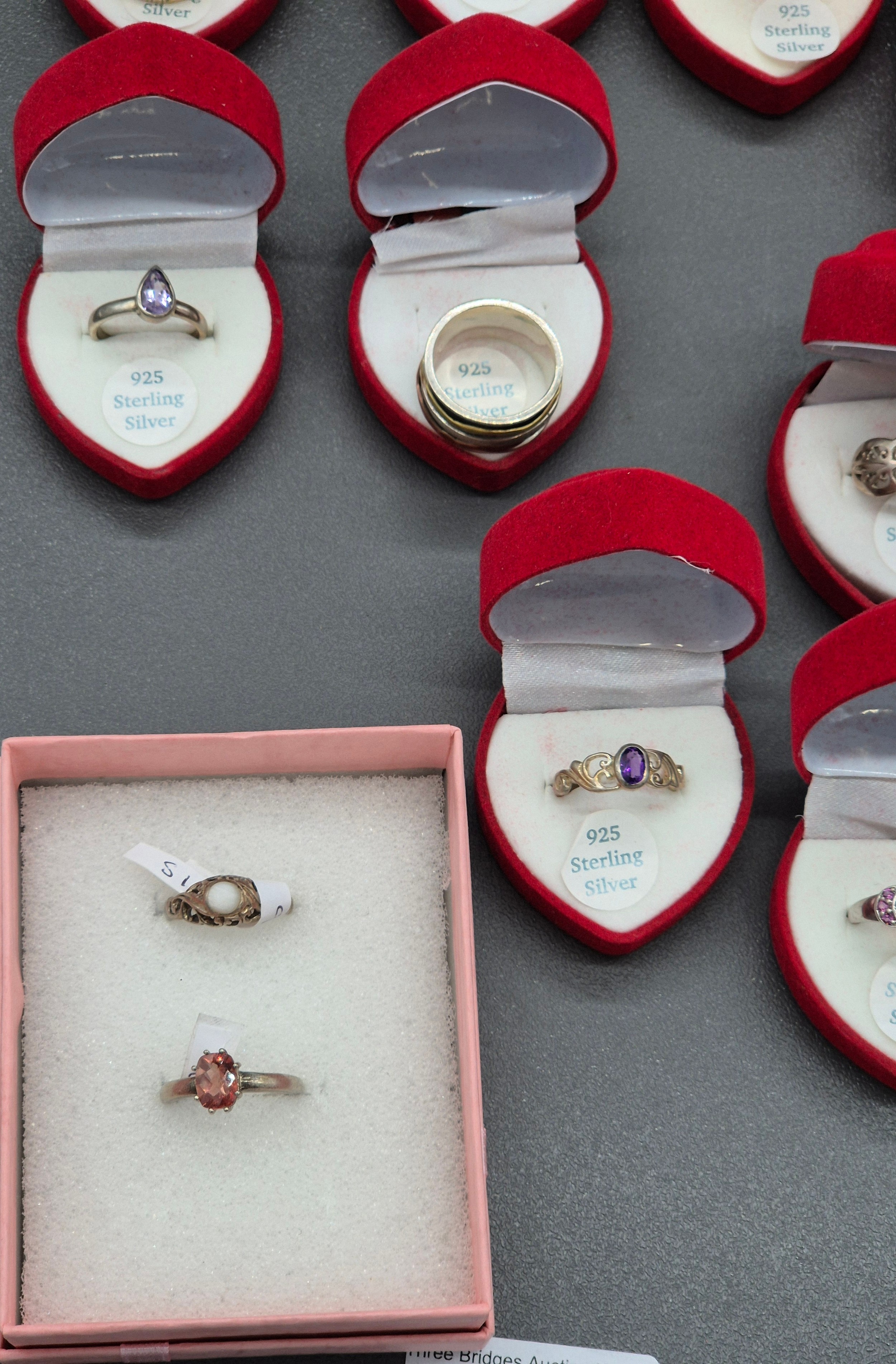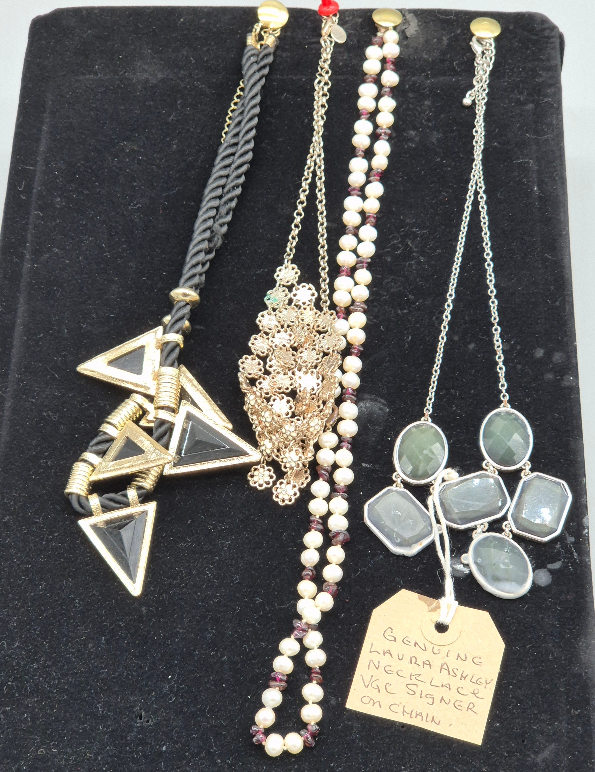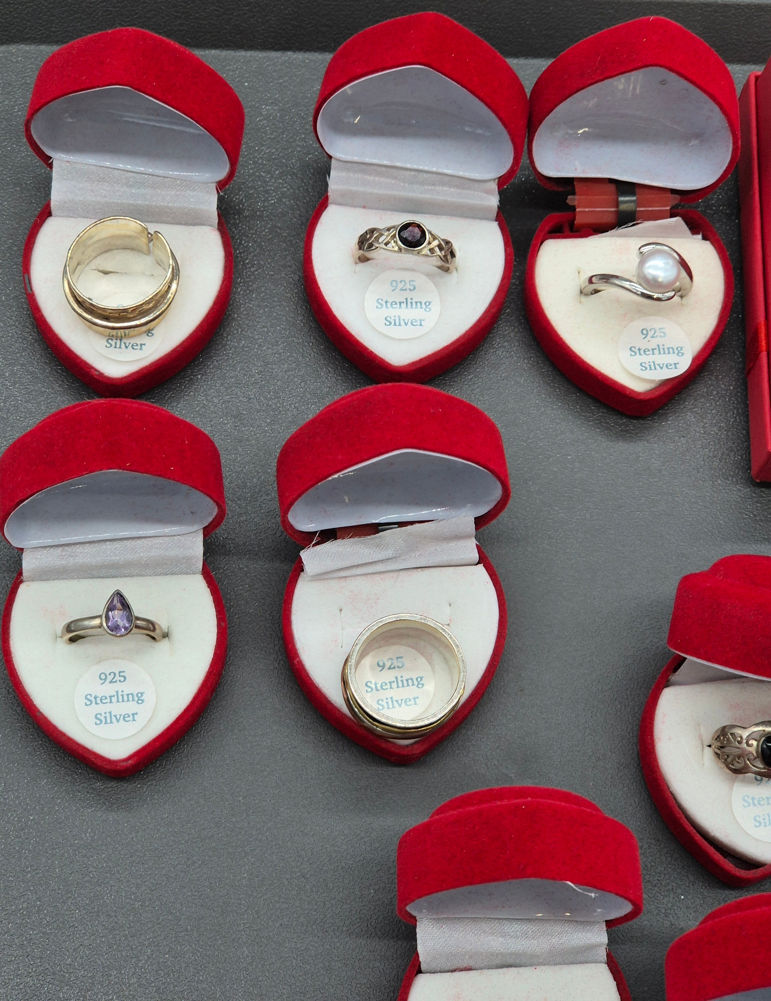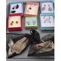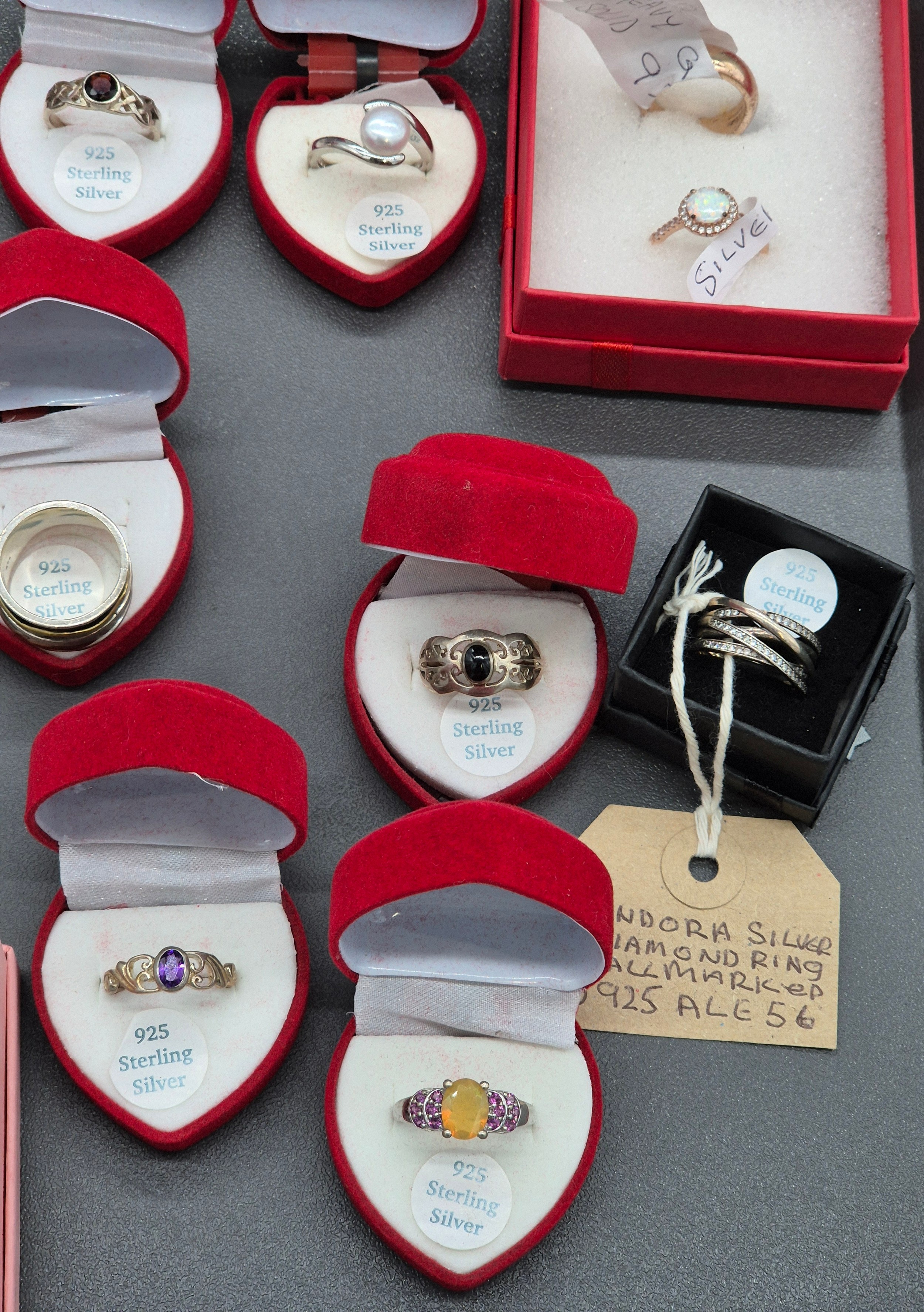 A Collection of silver and costume jewellery; Tray of silver rings, costume necklaces and earrings.