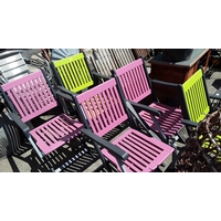 A wooden outdoor bench with an electric water feature.