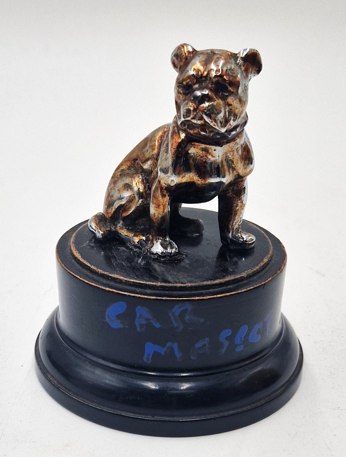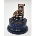 MODEL OF A STAFFORDSHIRE BULL TERRIER DOG MOUNTED ON A BLACK PLINTH