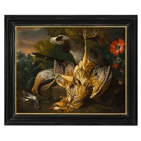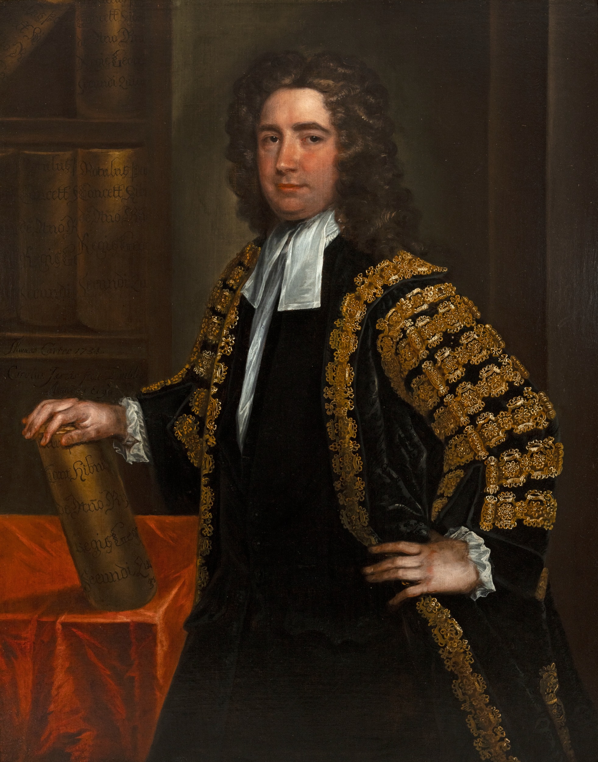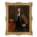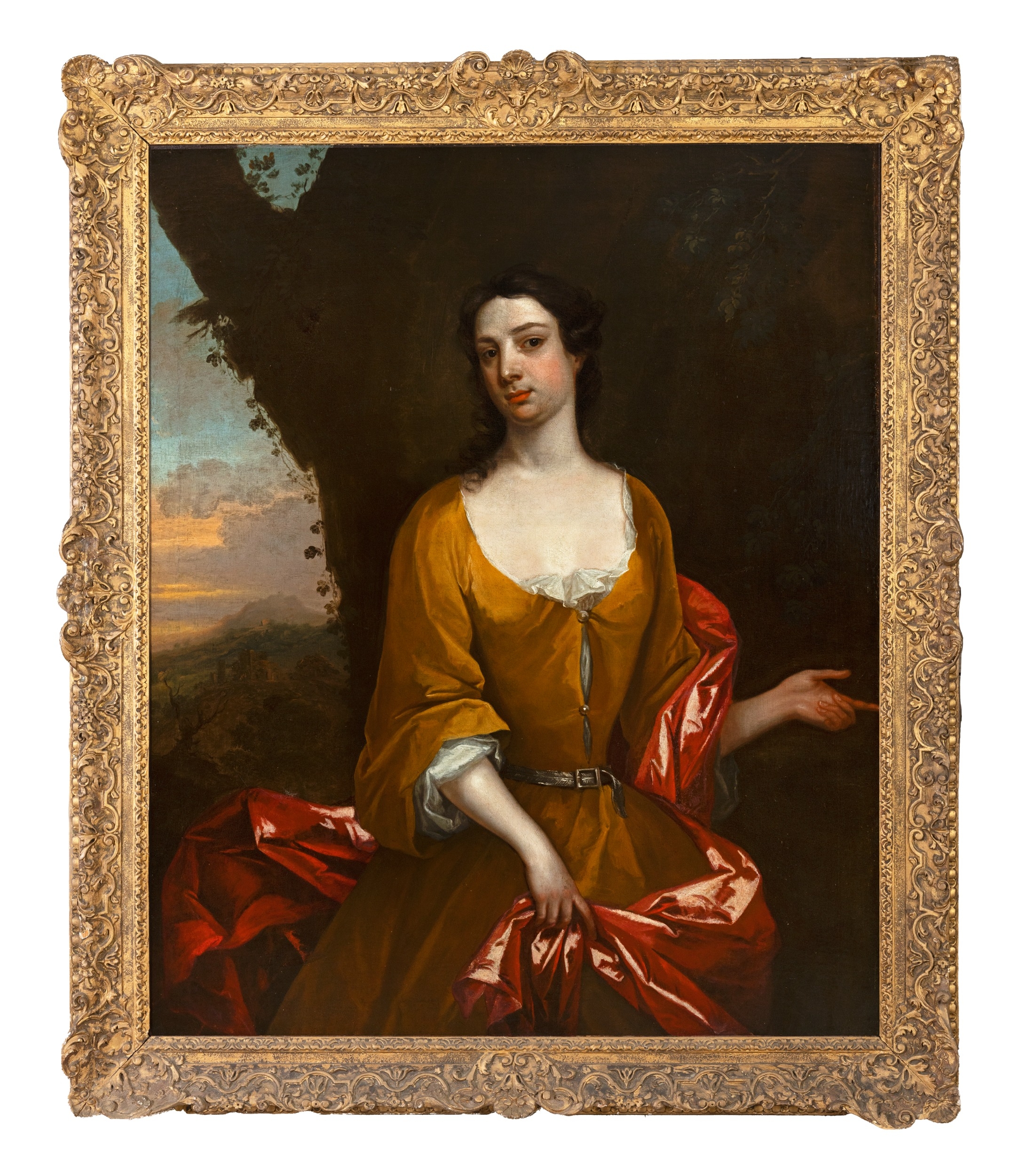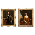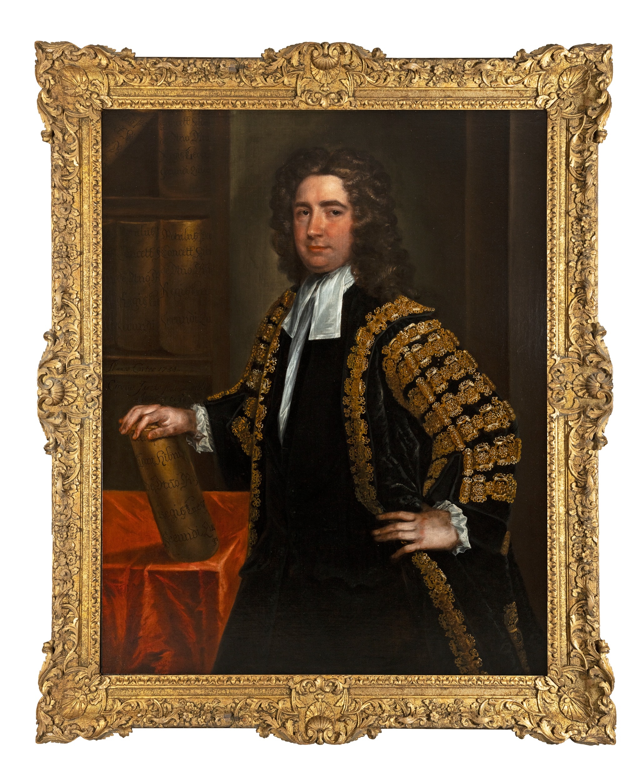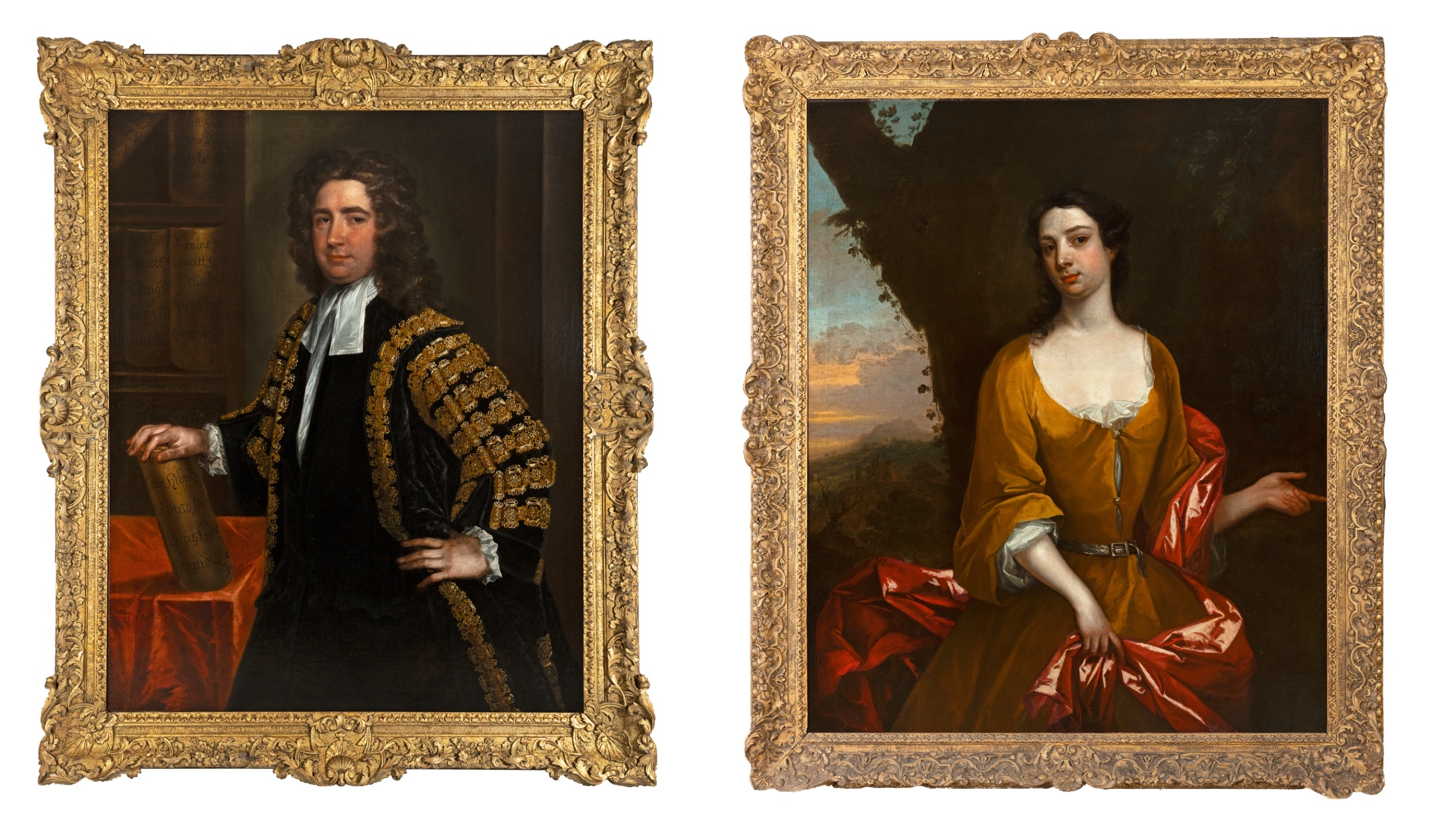 CHARLES JERVAS (C. 1675-1739) Portrait of Thomas Carter (c. 1682-1763) and his wife Mary, née Claxton Oil on canvas, The portrait of Thomas is signed, dated, 1734, and inscribed ‘Dublin’ and ‘amicitiae ergo’ (‘for friendship’s sake’) and with extensive further inscriptions. Mary is housed in a frame made in about 1800 by Kearney’s, ‘Looking Glass Warehouse’, 49 Henry Street, Dublin, see label. Provenance: By direct descent within the family of the sitters Thomas Carter (the sitter) to his son; Henry Boyle Carter (b. c. 1722) at Castlemartin, County Kildare (High Sheriff of County Kildare in 1763) who married Susanna Shaen, to his son; Thomas Carter b. 1753 at Castlemartin, County Kildare, to his son; William Henry Carter (1783-1859), to his son; Thomas Shaen Carter (1813-1875) at Watlington Park, Oxfordshire; By descent within the Carter family to Duncan Maclachlan Carter-Campbell, 8th of Possil (b. 1911) to his daughter Mary Elizabeth Carter-Campbell (b. 1953) Exhibited (Thomas): The International Exhibition of Arts and Manufactures, Exhibition Palace, Dublin, 1865, lent by Thomas Shaen Carter (1813-1875) bears exhibition label; National Portrait Exhibition, London, 1867, lent by Thomas Shaen Carter (1813-1875) (no. 409), bears exhibition label Literature, Walter Strickland, A Dictionary of Irish Artists, 2 vols (Dublin and London, 1913) vol.1 p. 548; Peter Aronsson, Dictionary of Irish Biography, www.dib.ie, accessed 20 August 2024; Peter Aronsson, Oxford, Dictionary of National Biography, www.oxforddnb.com, accessed 20 August 2024 Melanie Hayes, The Best Address in Town, Henrietta Street, Dublin and its First Residents (Dublin, 2020) p. 50 and for 9 Henrietta Street pp. 50-59 Engraved, The portrait of Thomas was engraved in mezzotint by John Brooks (fl. 1730-1756). This print was reissued by Jefferys and Herbert (Strickland, Dictionary, Vol. 1, 110). Never previously offered on the open market, having been in the family of the sitters for a decade shy of three centuries, from 1734 until 2024, these portraits, by Charles Jervas, are iconic works of Georgian Ireland. Thomas Carter, was one of the most influential figures of eighteenth-century Dublin, a Member of Parliament, Master of the Rolls and architectural patron on a lavish scale. His wife, Mary, née Claxton, was the first cousin of Edward Lovett Pearce (1699-1733), the great architect of Dublin’s Parliament House and Bellamont Forest, County Cavan. The townhouse that Pearce designed for the couple, 9 Henrietta Street, has been described as ‘perhaps the most palatial residence’ on the famous street, itself ‘the best address’ in Dublin, with one of the most impressive stair halls in the city. ‘For more than three decades. This ambitious man held court there, establishing a prime position among parliamentary power brokers, social strategists and arbiters of taste’ (Melanie Hayes, The Best Address in Town, Henrietta Street, Dublin and its First Residents, 2020). Offaly-born, Charles Jervas meanwhile was the Principal Painter to the Monarch, a friend of Pope and Swift, and although London-based he painted this portrait in Dublin in 1734 as he proudly inscribes on the canvas next to his signature. Carter was born in Robertstown, County Meath, in the pivotal year 1690 and his life proceeded in parallel with the consolidation of the Williamite settlement of Ireland in all its complexity. His father, also Thomas, had performed ‘distinguished service’ for King William at the Boyne but the younger Thomas would adopt a stance as a Protestant patriot in the Dublin parliament which often set him in opposition to the Dublin Castle administration. Carter pursued an enormously successful and lucrative career at the Irish bar, before purchasing, for £11,000, the position of Master of the Rolls. In 1719 Carter married Mary Claxton, a daughter and heiress of Thomas Claxton and Lucy Pearce, making Mary, shown here, the first cousin of Edward Lovett Pearce. The year of his marriage Carter was elected for Trim, as a member of the parliament then sitting in Chichester House, Pearce’s great building on College Green would not be started for another decade. He later represented Hillsborough, County Down, between 1728-61. Other positions which Carter filled included Ranger of the Curragh, Governor of the Royal Hospital and Ranger of Dublin Castle while he was a leading figure in the passing of one of the early road acts. By 1745 Carter was characterised by Lord Chesterfield, the viceroy, as ‘the leading person in the [Irish] Parliament’ while the Earl of Shelburne described him as ‘a man of a very original character, whose uncommon sagacity and shrewdness as well as depth of understanding, would have distinguished and advanced him in any country’. Not everyone agreed and, it must be said that principled idealism was not an obvious path to success in the murky politics of mid-century Ireland. Carter was described by Horace Walpole as ‘an able and intriguing man’ with a ‘slender reputation for integrity’. (Walpole was also distinctly antipathetic towards Jervas who had been so much patronised by his father, the Prime Minister, Robert Walpole). More recently Melanie Hayes notes that Carter was ‘known for his tricky personality and propensity for making enemies’. Carter did however stand up for the rights of the Dublin parliament against Westminster when, in 1753, he ‘opposed the claim of the crown to dispose of unappropriated revenue in the Irish exchequer and engineered the defeat of this money bill’ (Oxford, DNB). For this he fell from royal favour and was dismissed from his position as Master of the Rolls in 1754. He was, however, compensated with the office of Principal Secretary of State, and Keeper of the Privy Seal, which brought an additional salary of £1,200 per annum. If Carter was too shrewd an operator to be excluded from power completely, he was ‘regarded by Dublin Castle as on