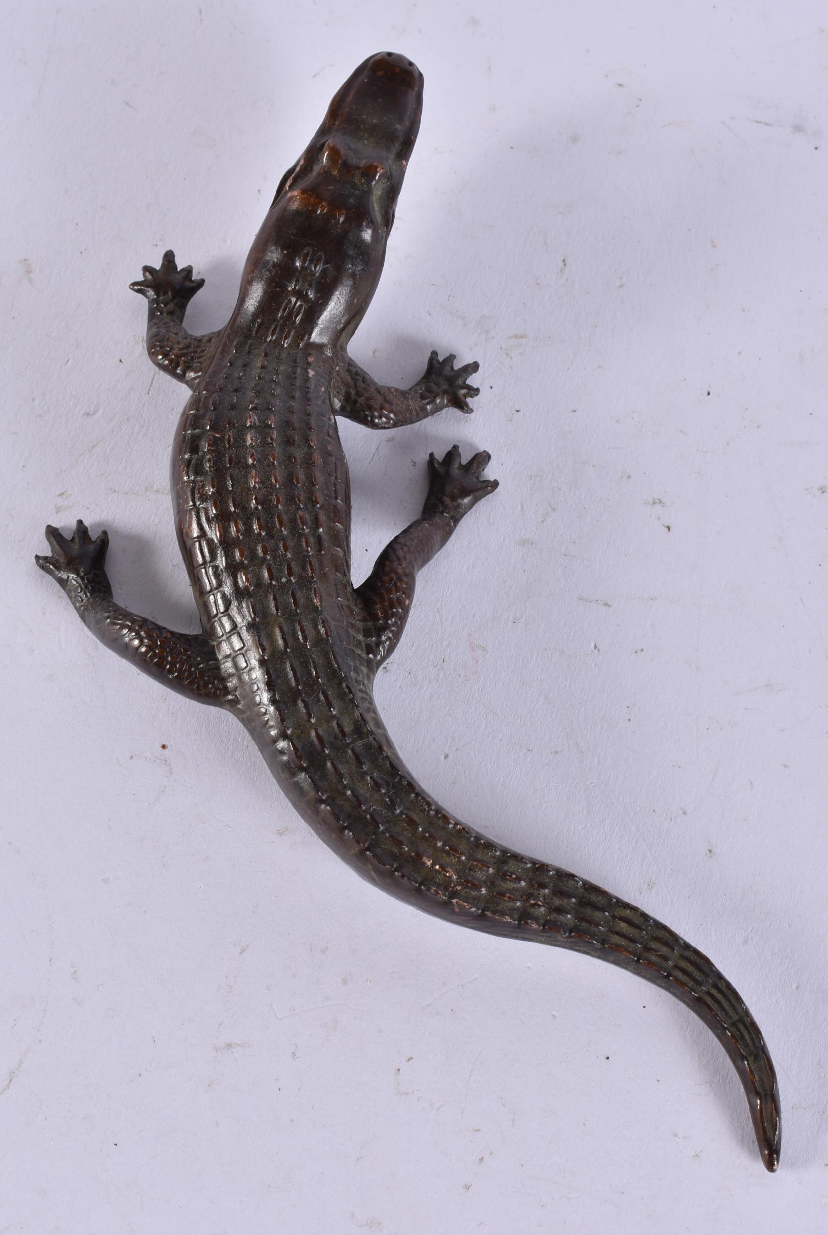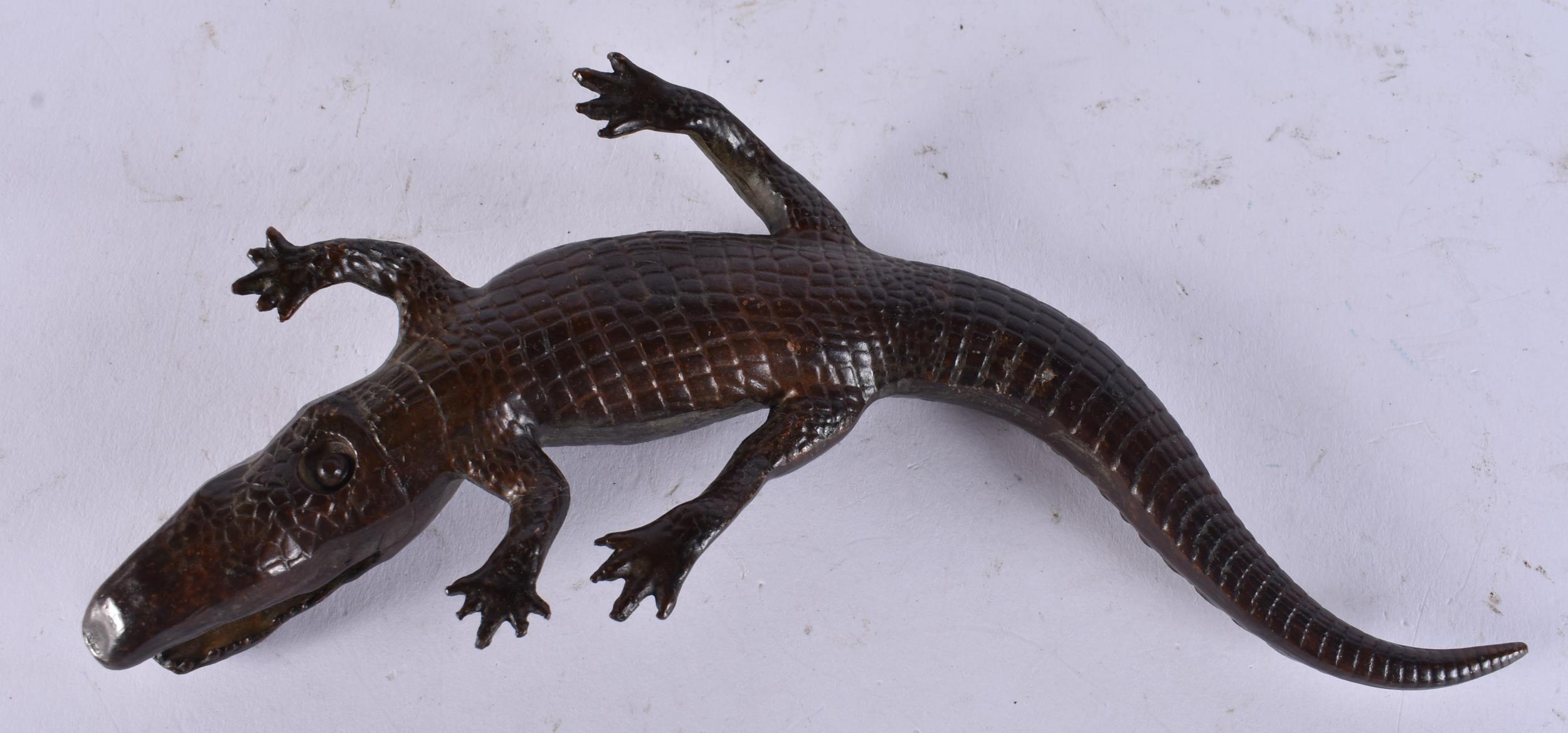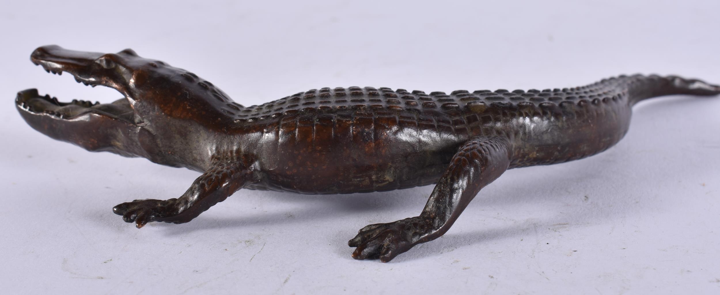 A JAPANESE BRONZE CROCODILE. 374 grams. 18 cm long.