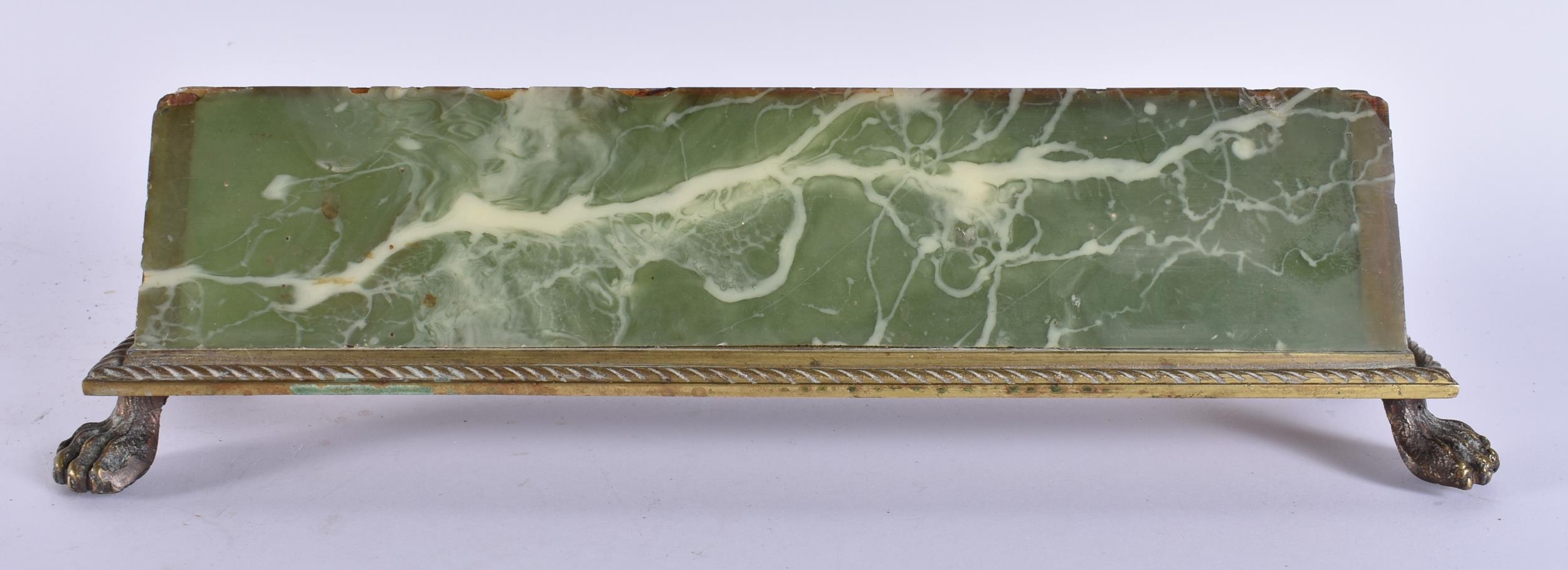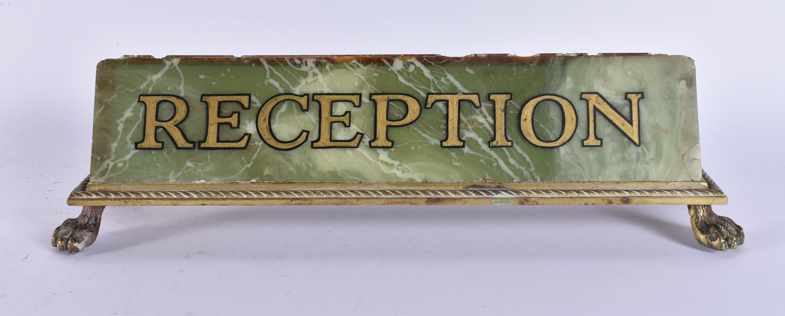 A CHARMING ART DECO ONYX AND BRONZE GILDED RECEPTION SIGN. 30 cm wide.