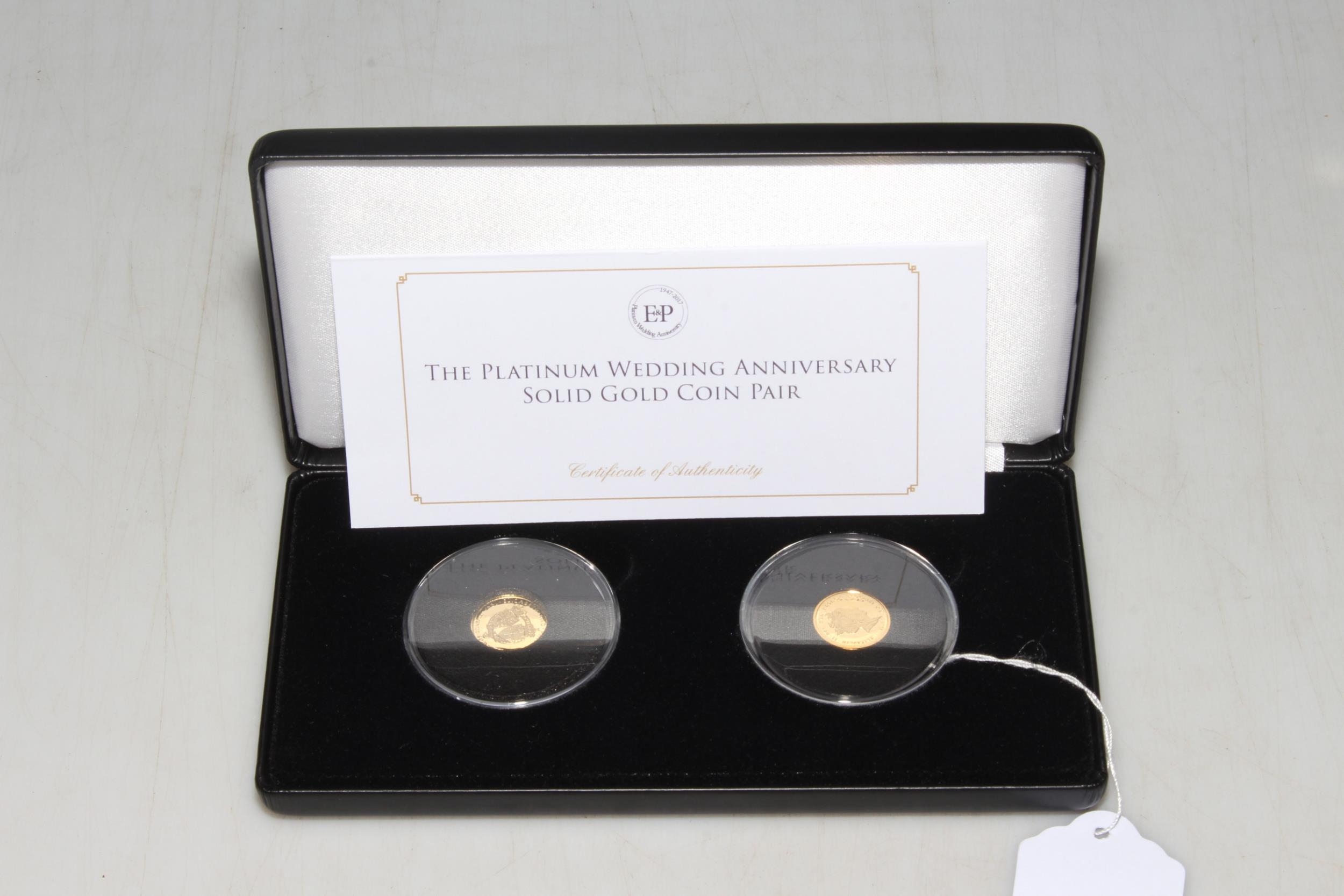 The Platinum Wedding Anniversary Solid Gold Coin Pair by Jubilee Mint. In box with COA.
