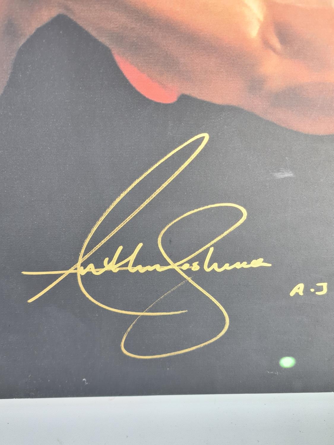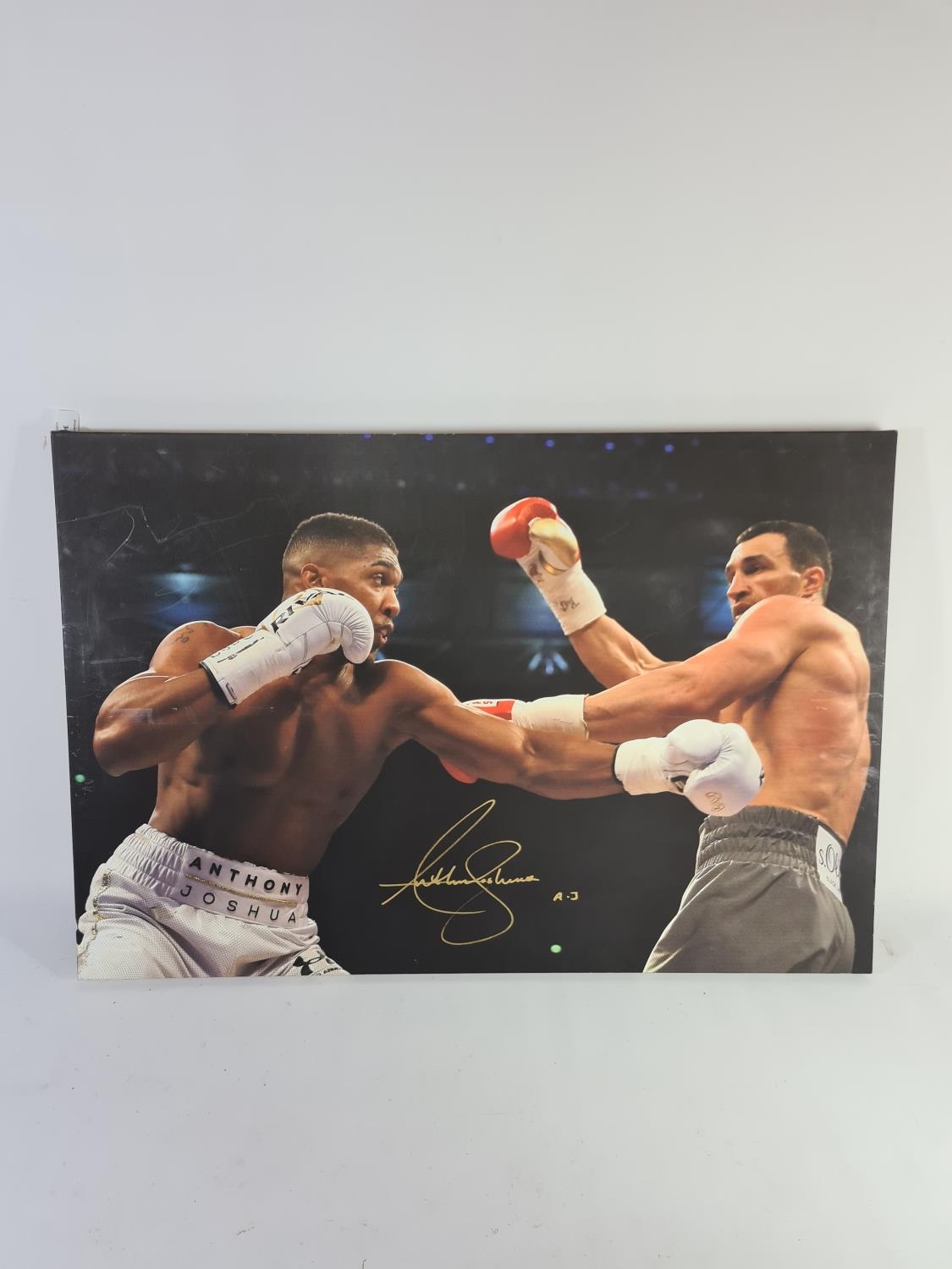 A signed Anthony Joshua vs Wladimir Klitschko print on canvas - approx. 77cm x 52cm