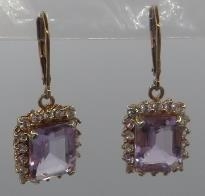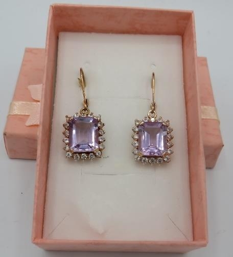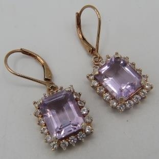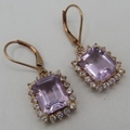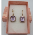 A pair of octagon cut pink amethyst earrings, lever back, portrait setting, approx 15mm x 12mm, rose gold/925, boxed.