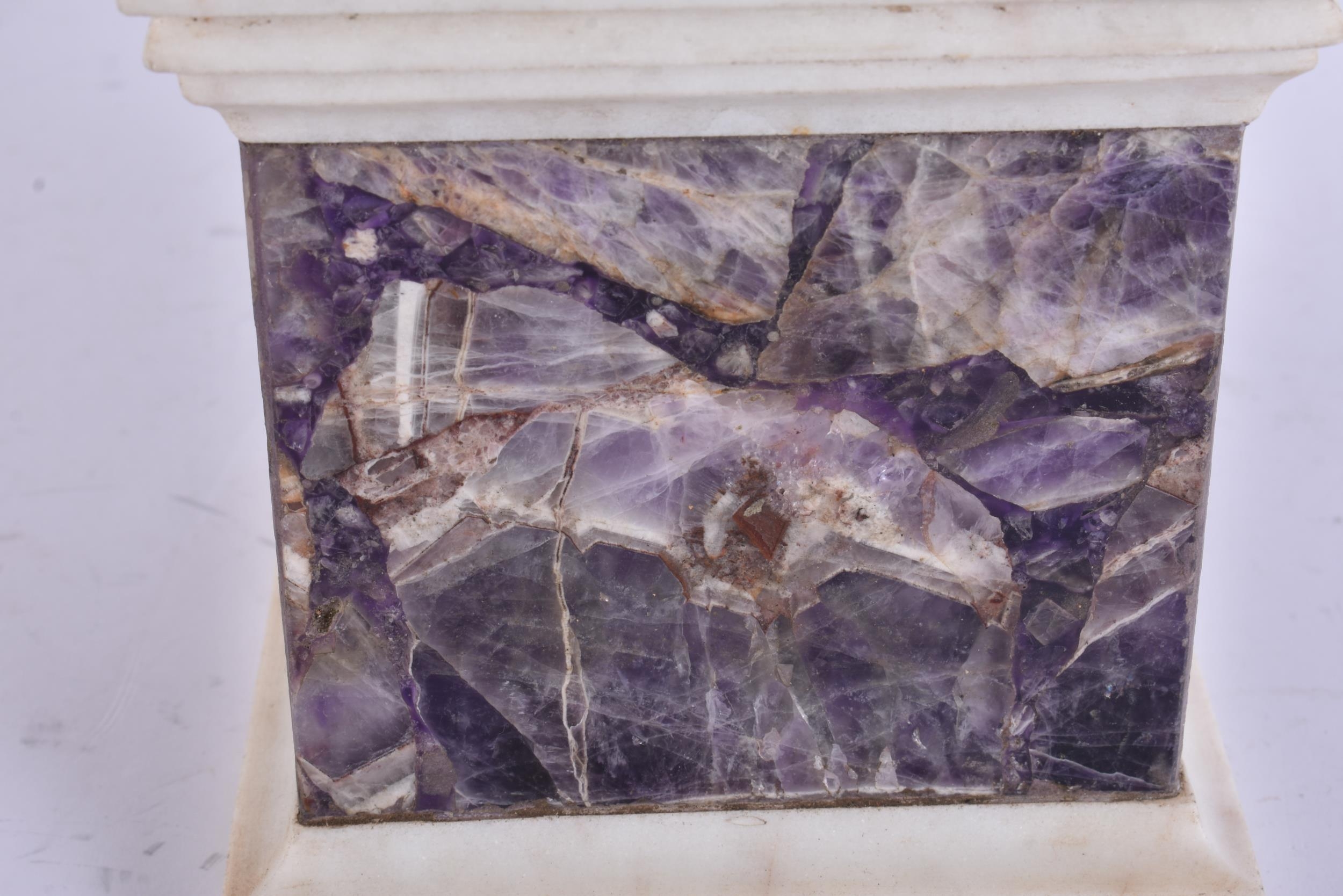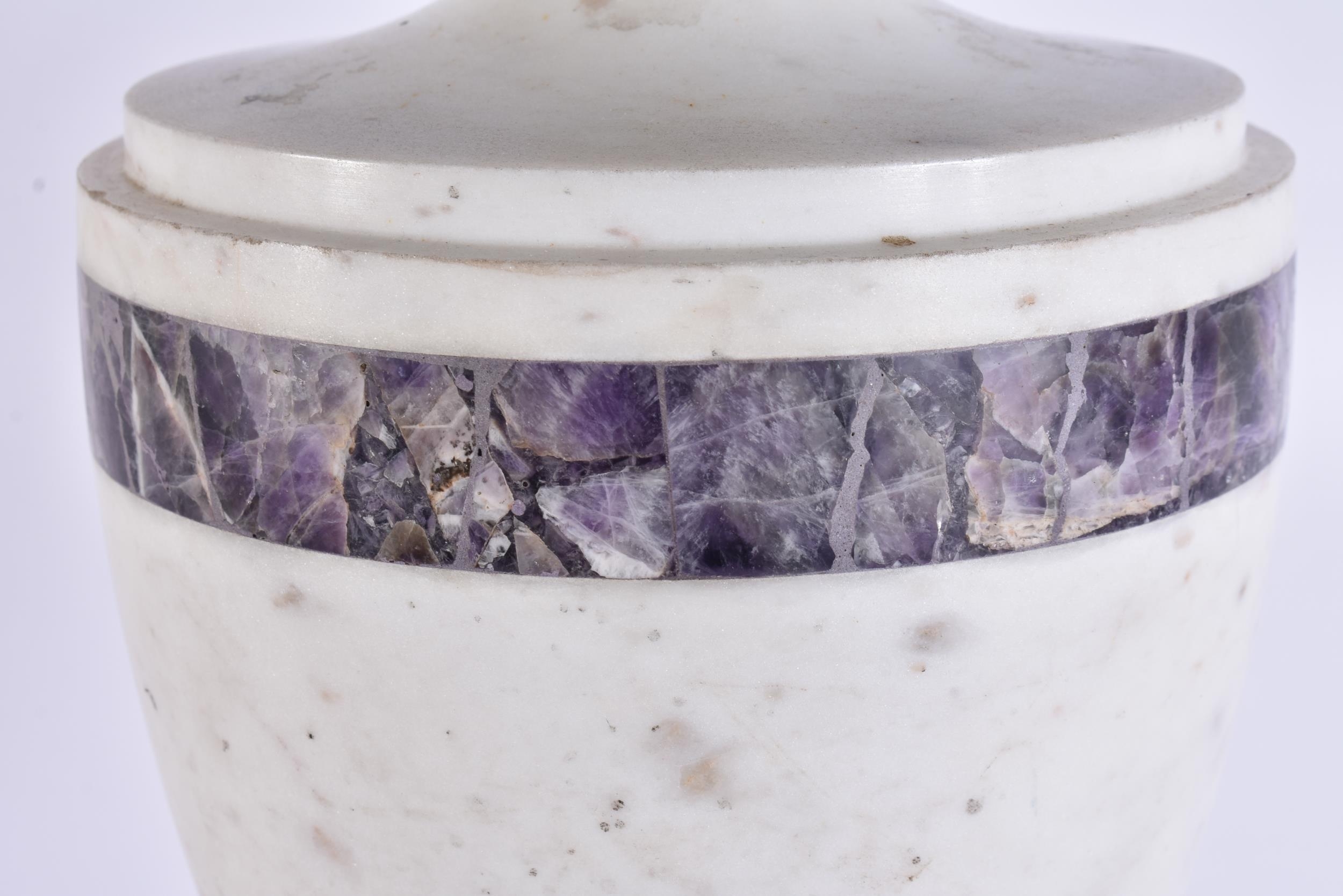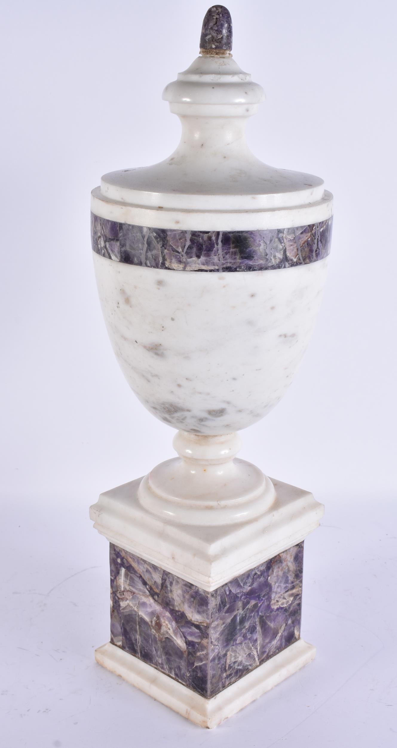 A LARGE CARVED STONE AND AMETHYST ADAMS STYLE URN. 47 cm hig...