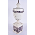 A LARGE CARVED STONE AND AMETHYST ADAMS STYLE URN. 47 cm high.