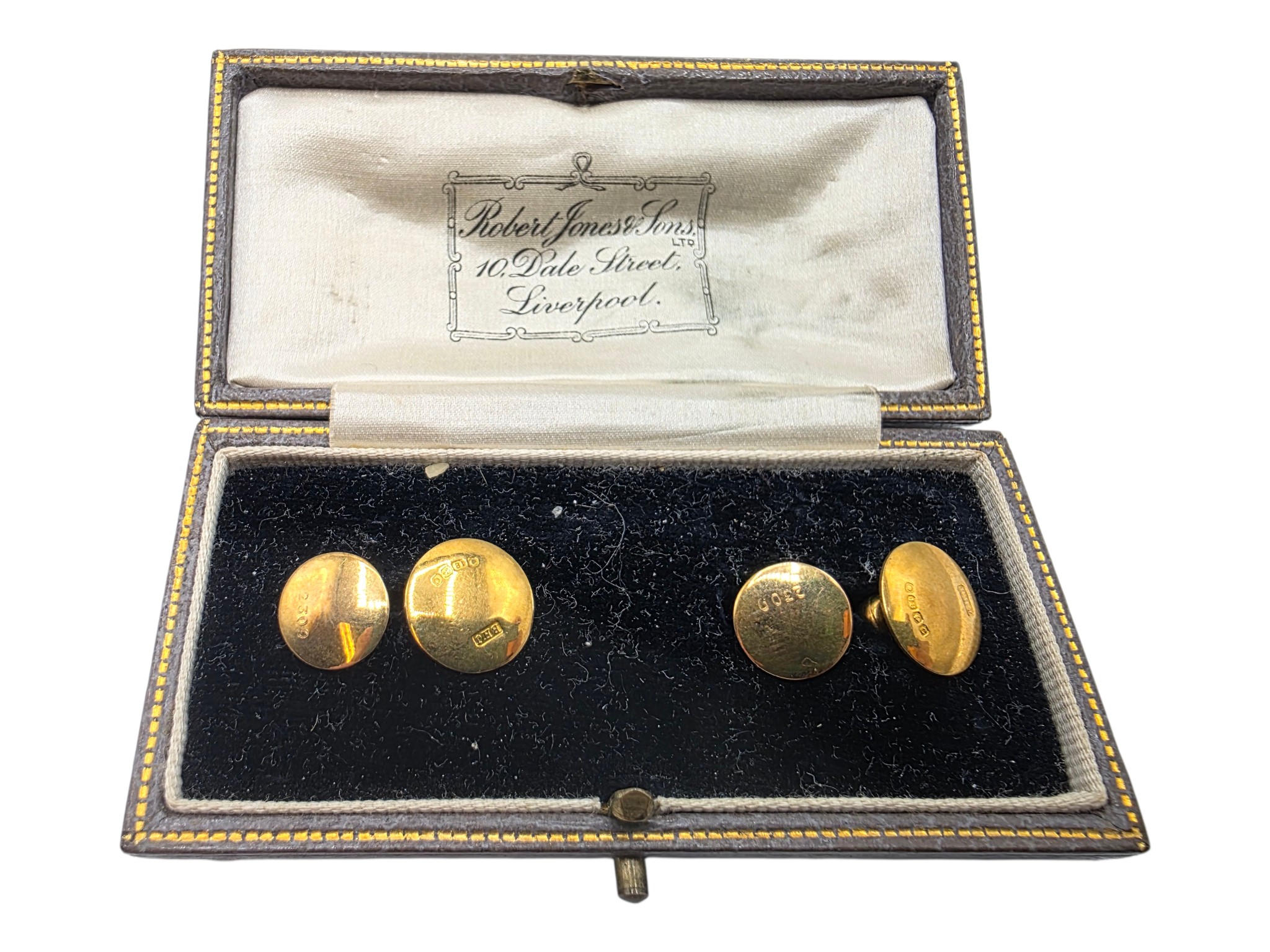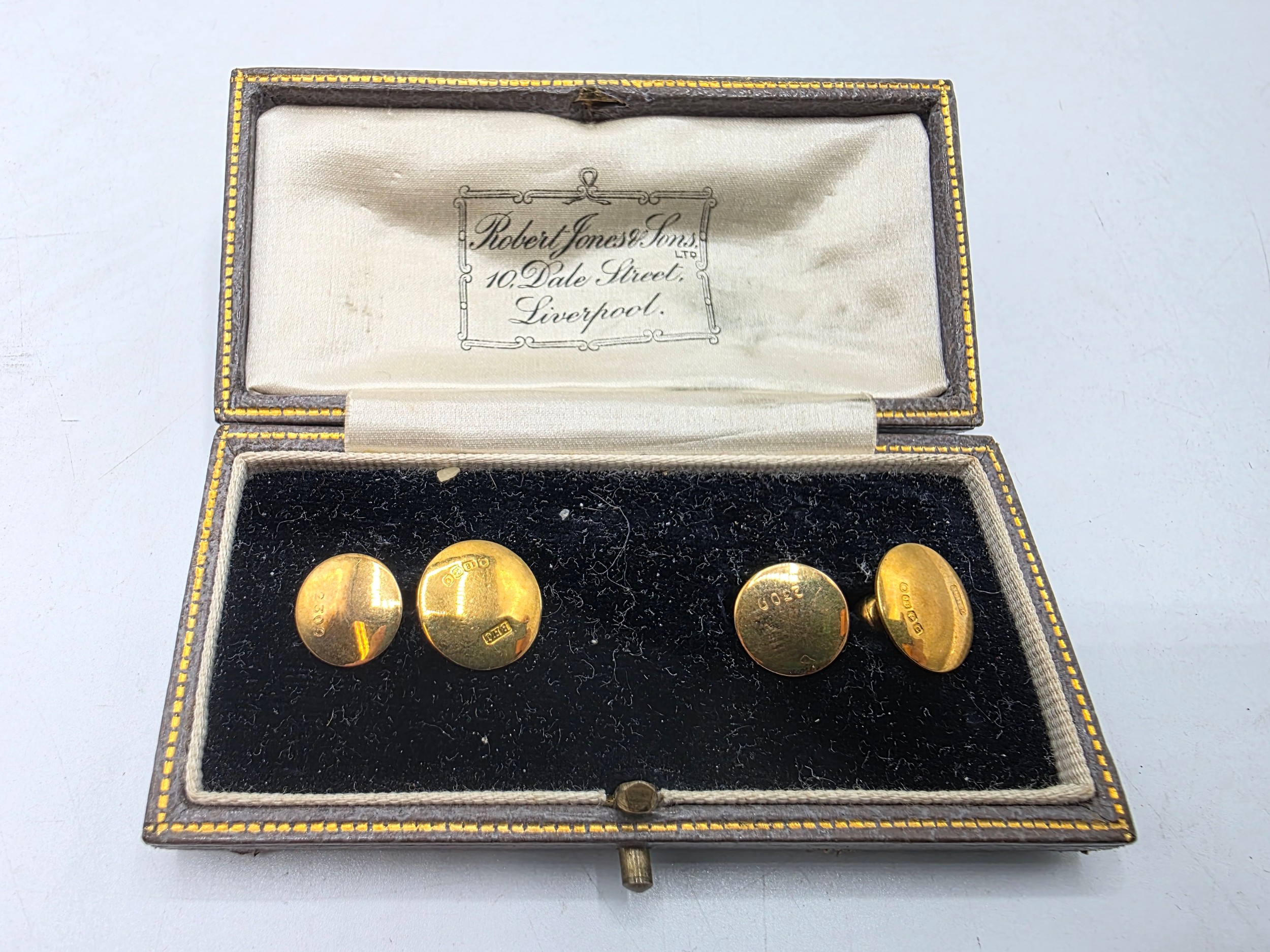 A pair of 18ct gold dress studs (2.6g)together with unmarked yellow metal studs with pearl finials
