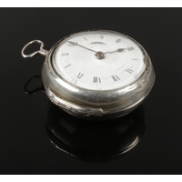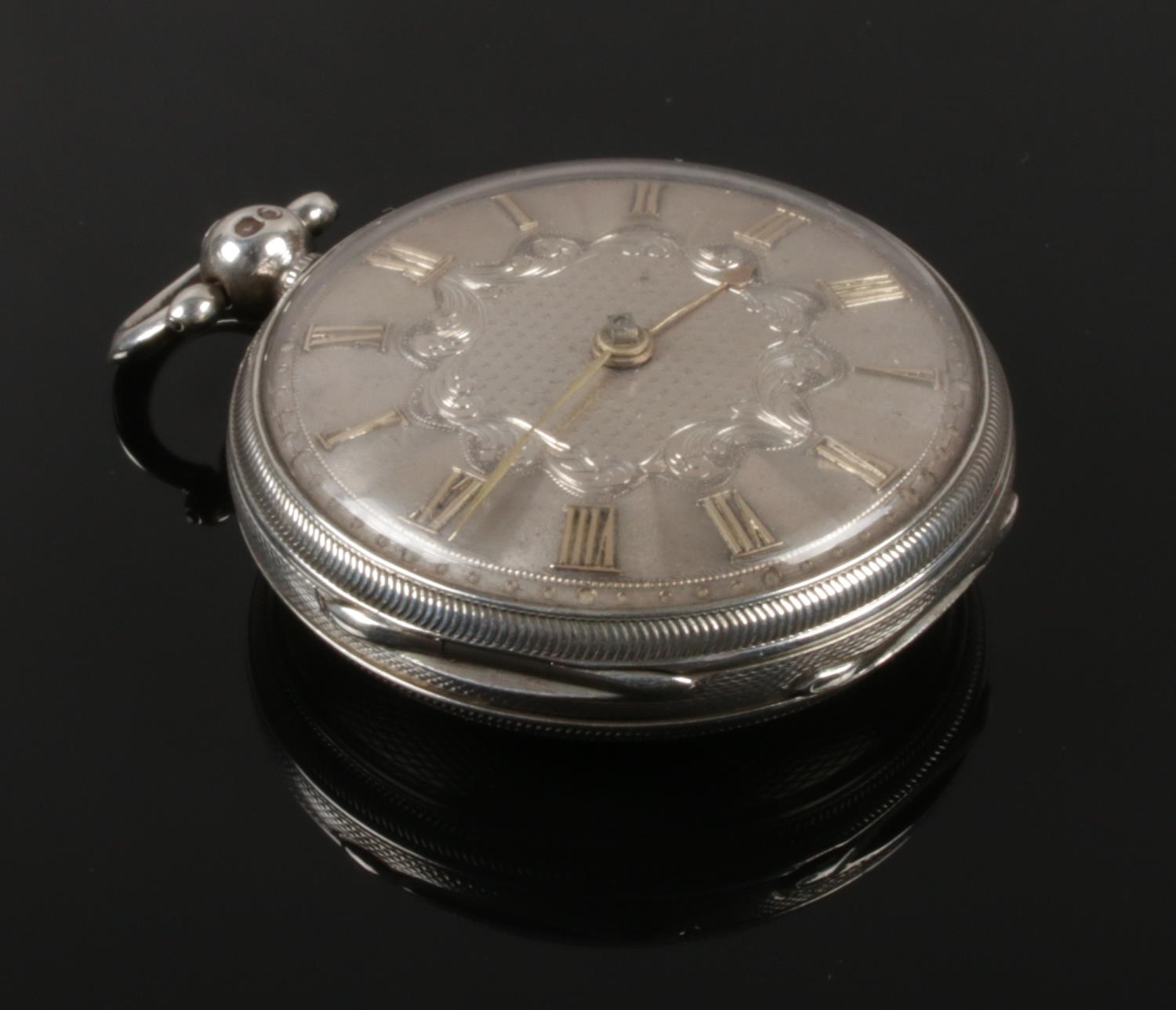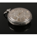 A Victorian silver pocket watch assayed London 1839. With verge escapement, silvered dial and Roman numeral markers.