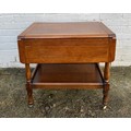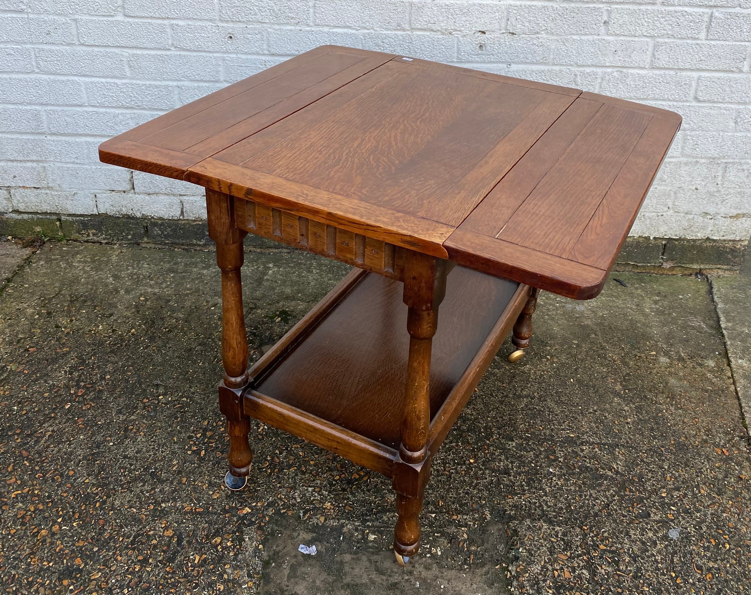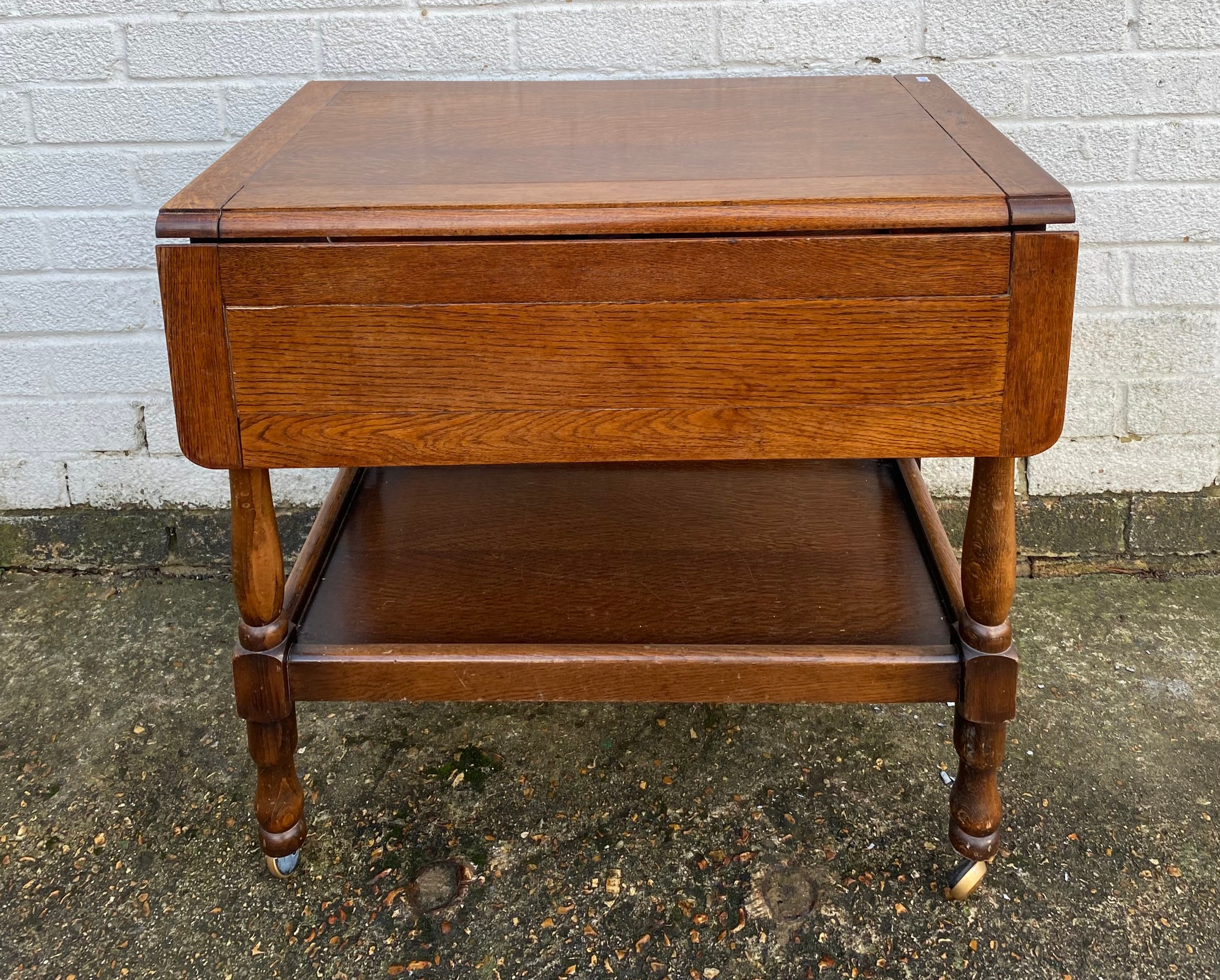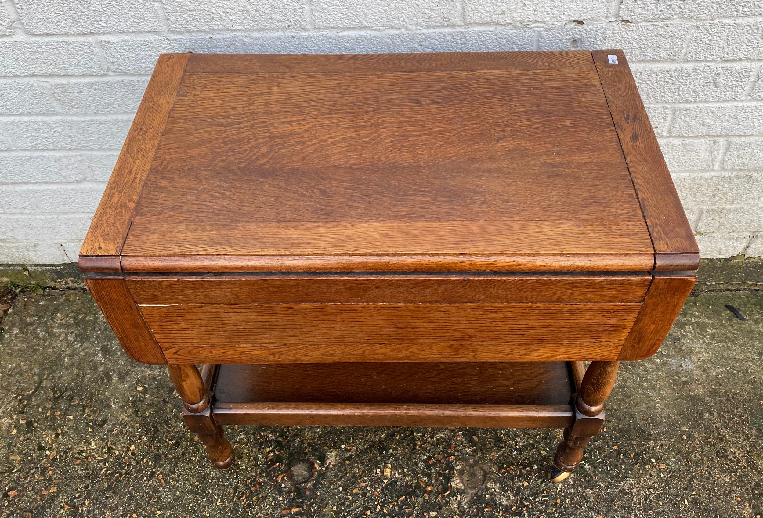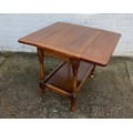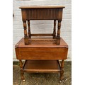 An oak drop leaf two tier tea trolley, and a small oak table -