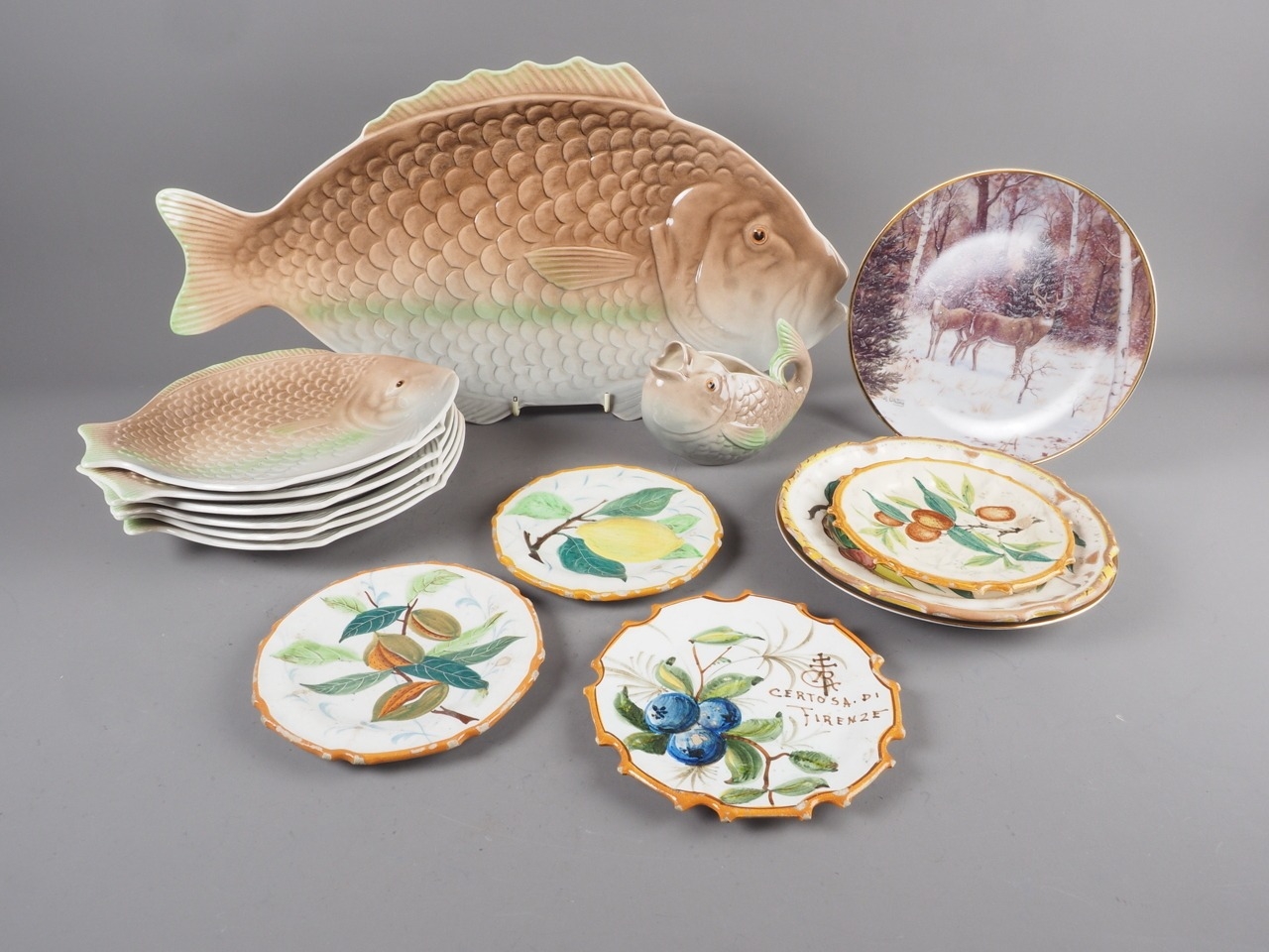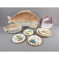 A Shorter & Son fish set, four faience shaped edge dishes and two collectors plates