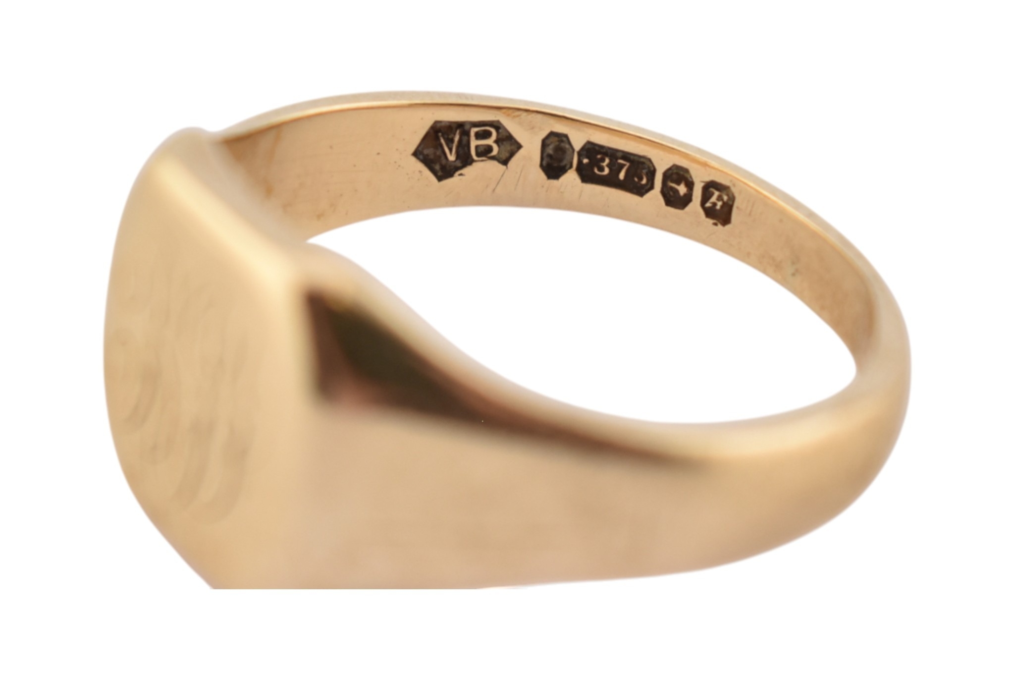 A hallmarked 9ct gold gentleman's signet ring. Hallmarked Birmingham, Sponsors mark VB. Weight 7.2g. Size U
