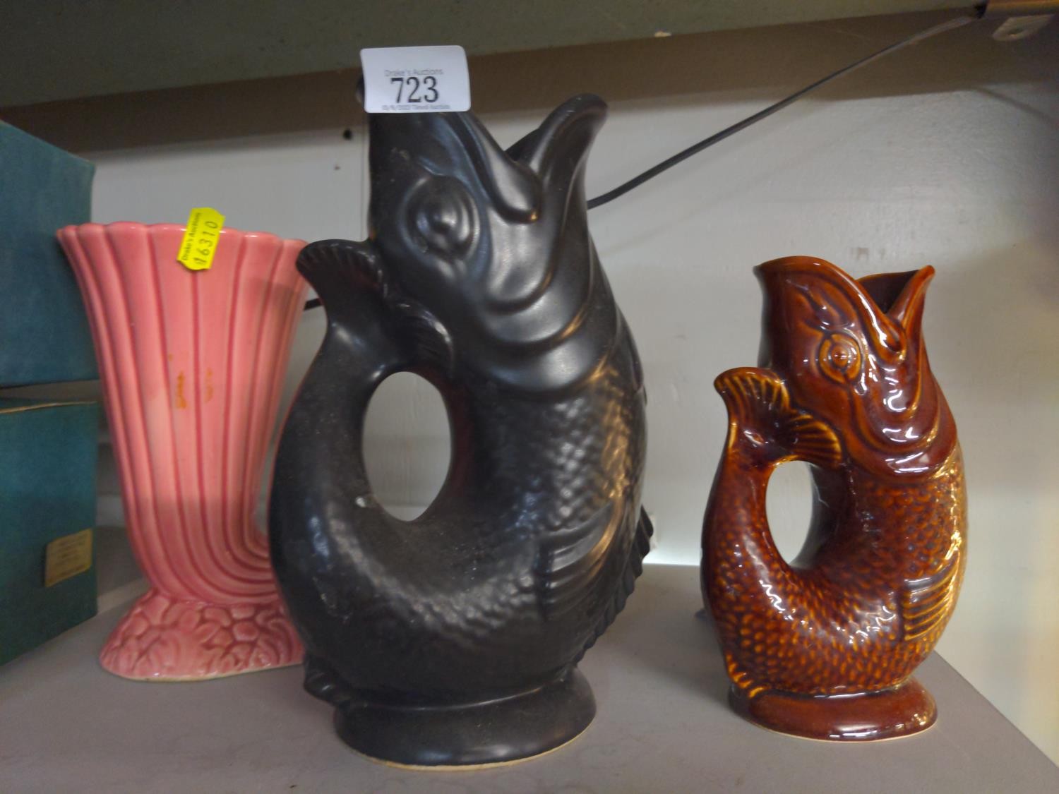 Two pieces of Dartmouth pottery and one gurgle jug (unsigned)
