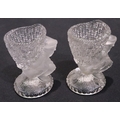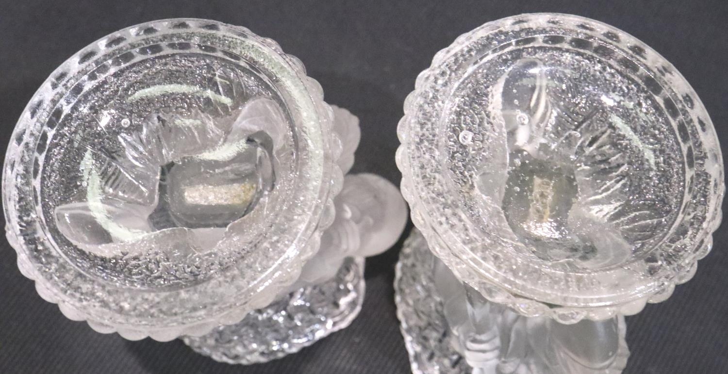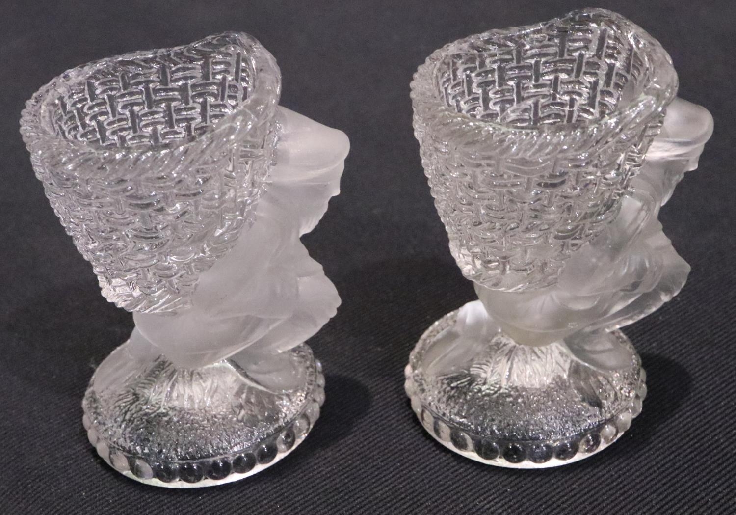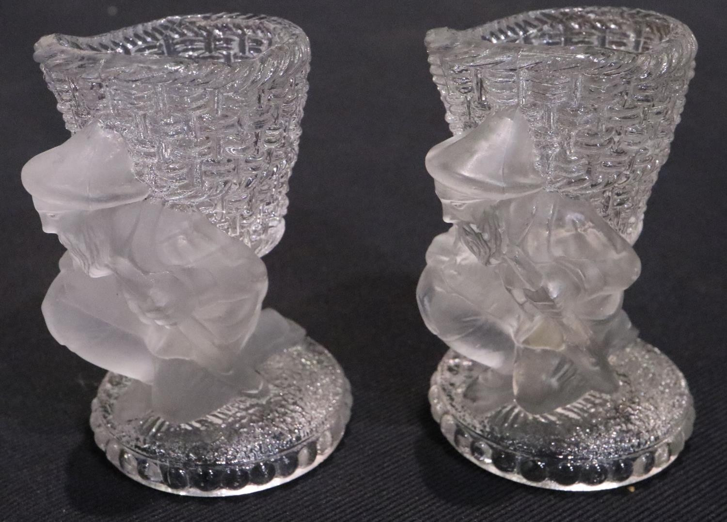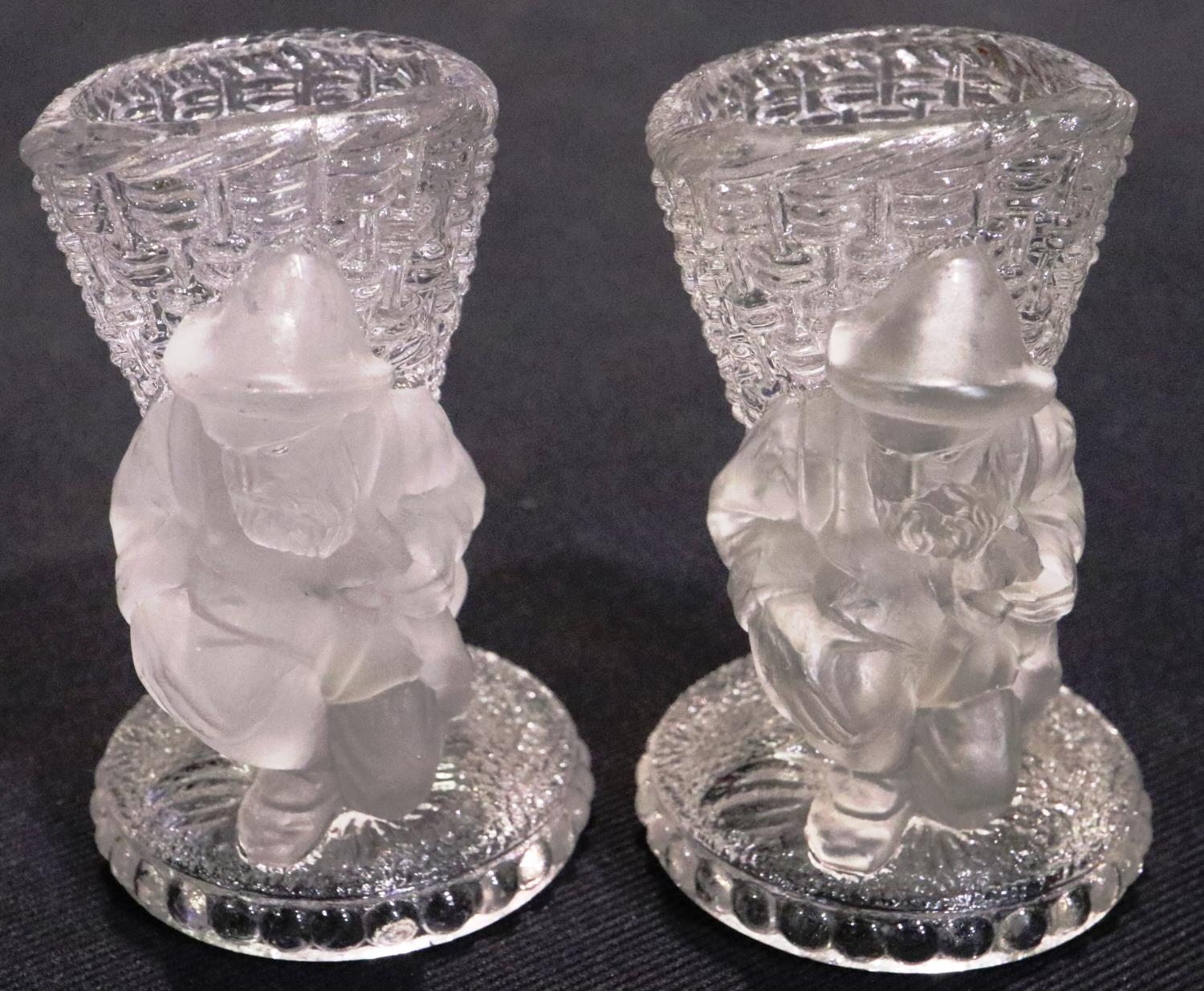 Pair of continental glass candle holders featuring kneeling shepherds, H: 80 mm, minor crack to one Shepherd. P&P Group 1 (£14+VAT for the first lot and £1+VAT for subsequent lots)