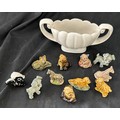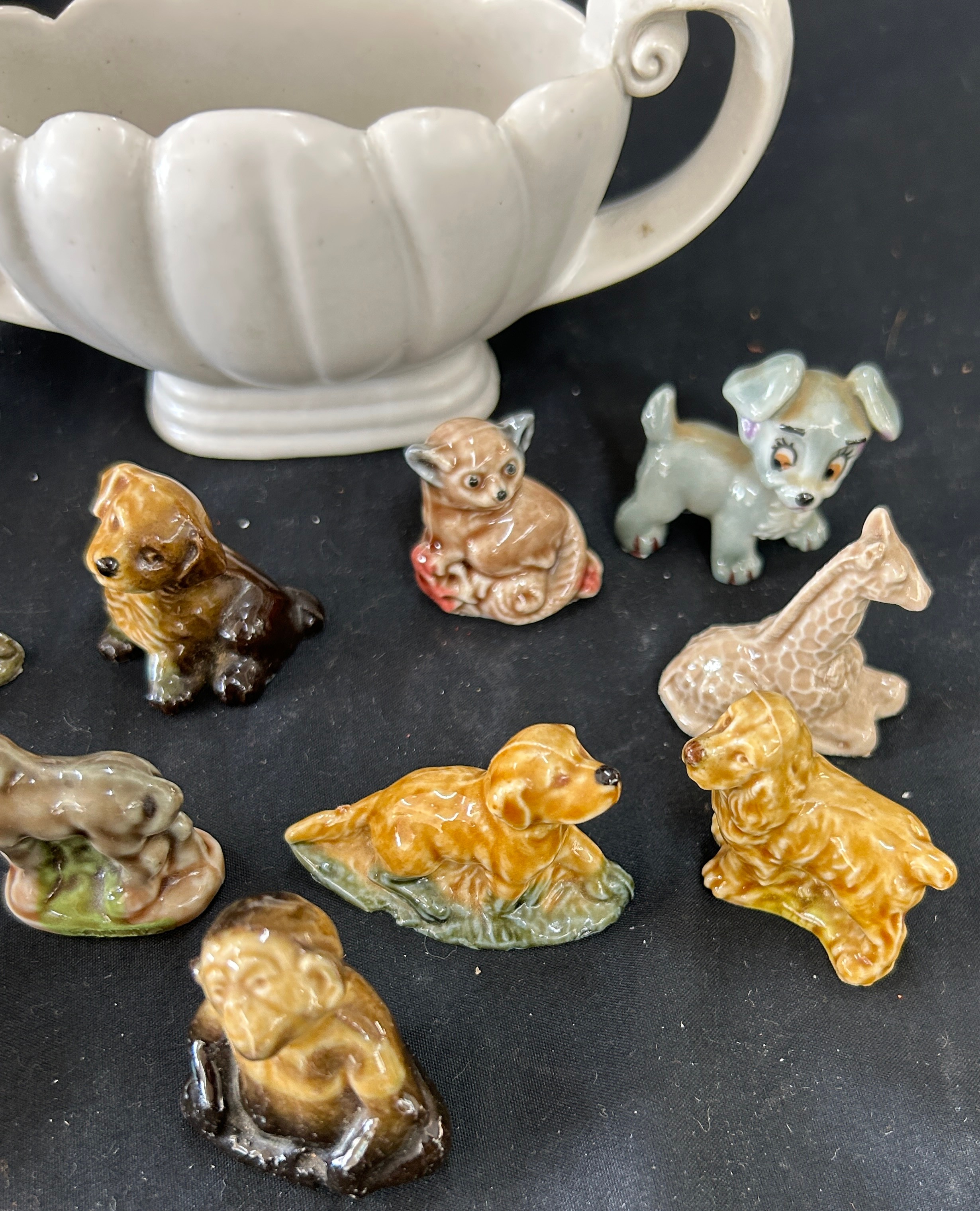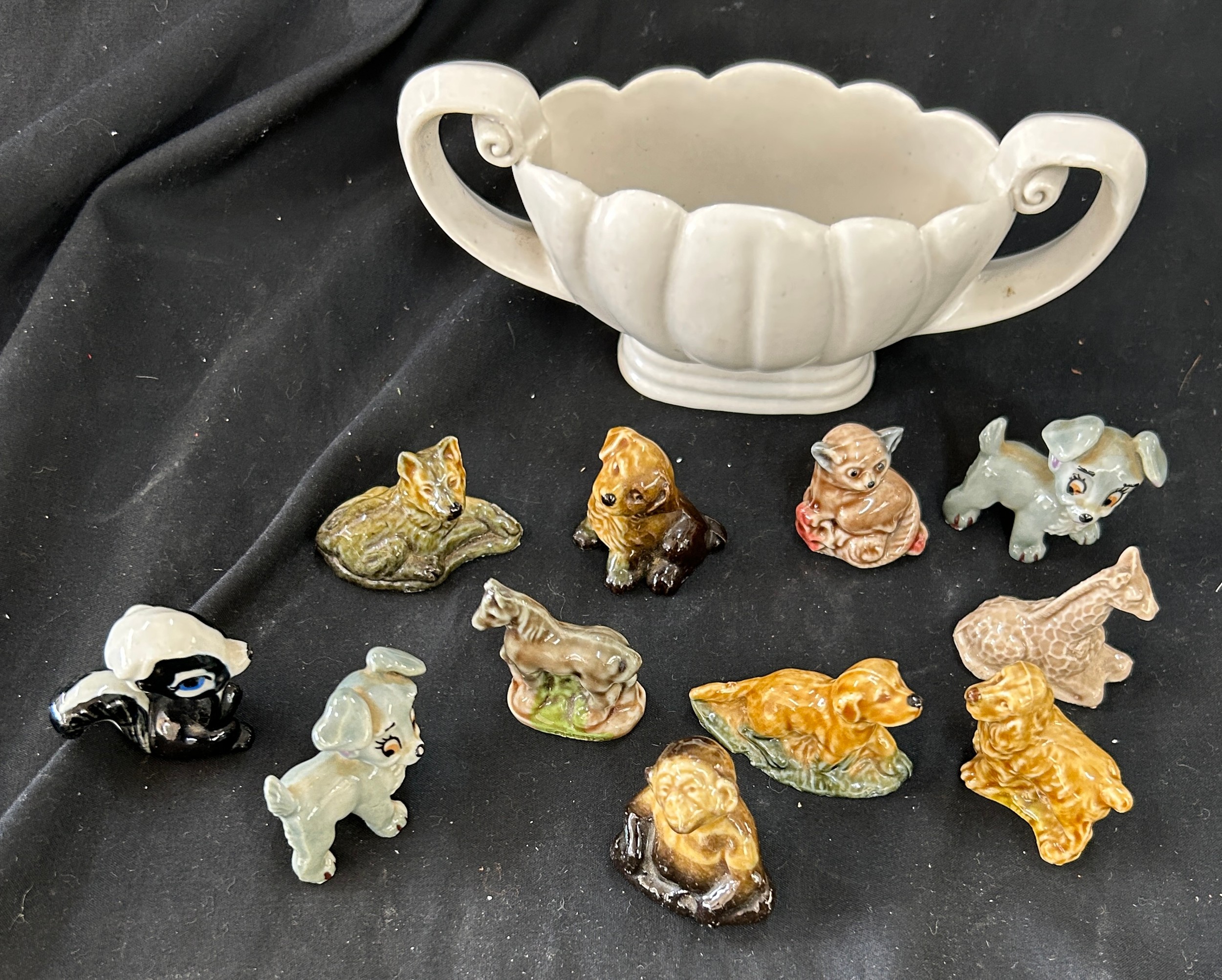 Selection of wade miniature animal ornaments and a two handled small wade vase