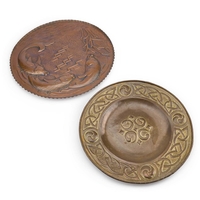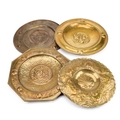 A GROUP OF FOUR ARTS AND CRAFTS BRASS CHARGERS