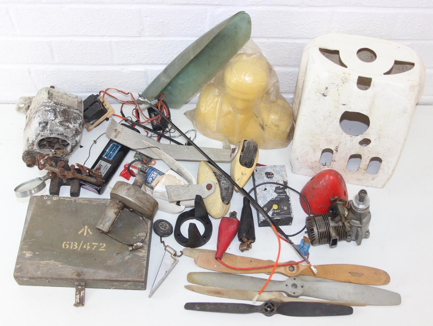 Qty of assorted model plane engines and other plane parts etc